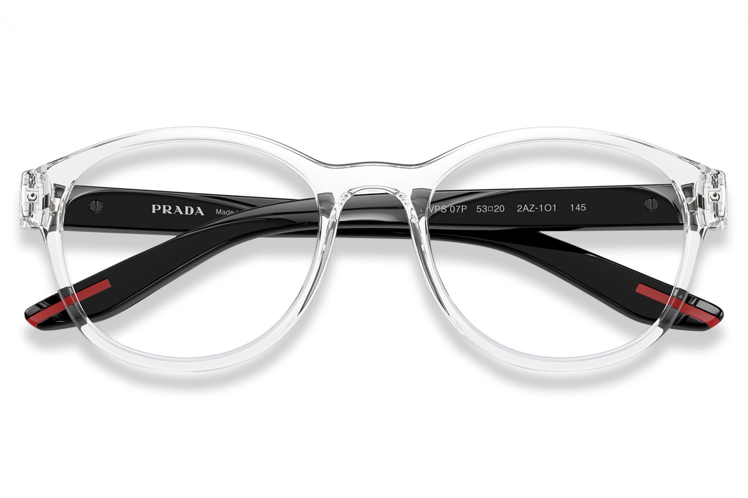 The Prada Linea Rossa - PS 07PV is designed for those who value both performance and style. This optical model showcases Prada Linea Rossa’s signature balance of innovation and aesthetics. The lightweight construction is paired with a modern phantos shape, delivering a contemporary yet wearable look. For a bolder statement, the frame is available in bi-color options featuring transparent front colors, as well as a distinctive version with green temples. Finished with the iconic Prada Linea Rossa red stripe logo on the temples, this style offers a refined, sporty edge suited for everyday wear. Comes complete with a Prada Linea Rossa box, protective case, cleaning cloth, and a 1-year manufacturer’s warranty.