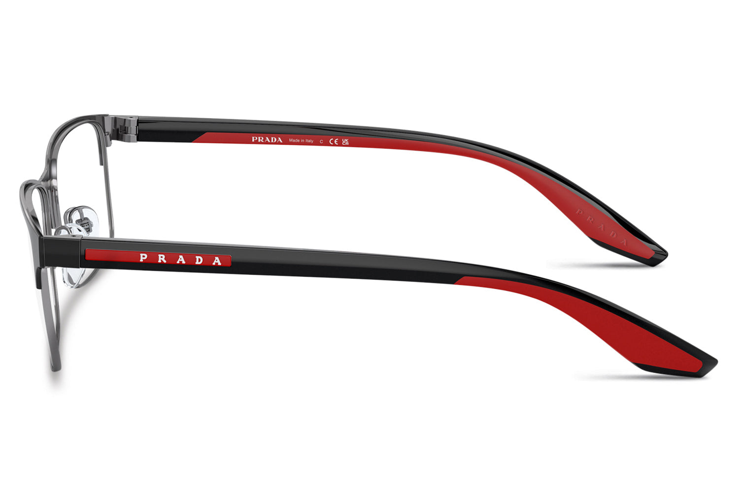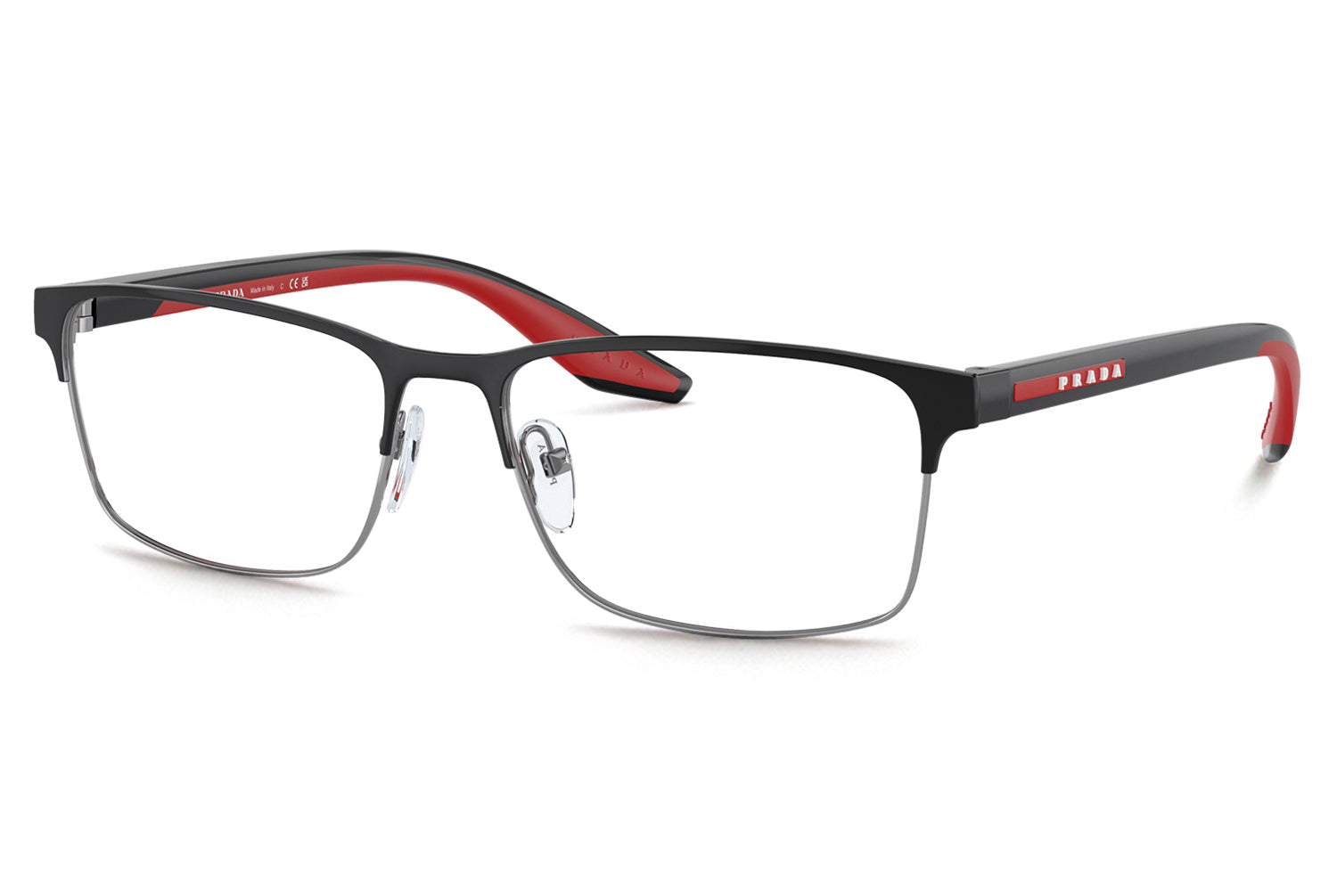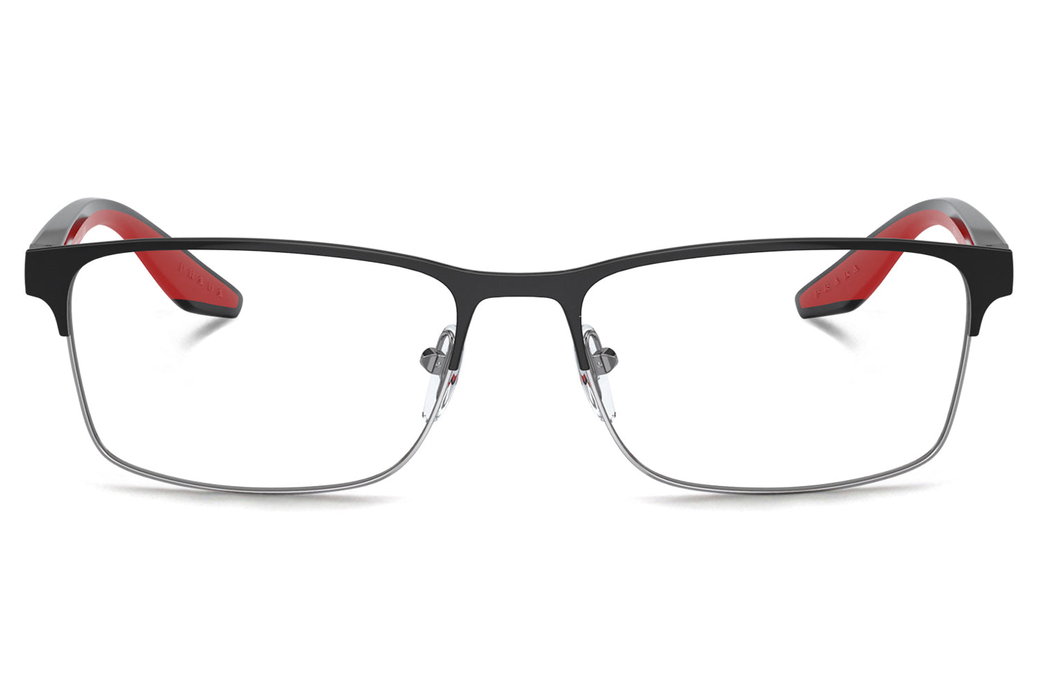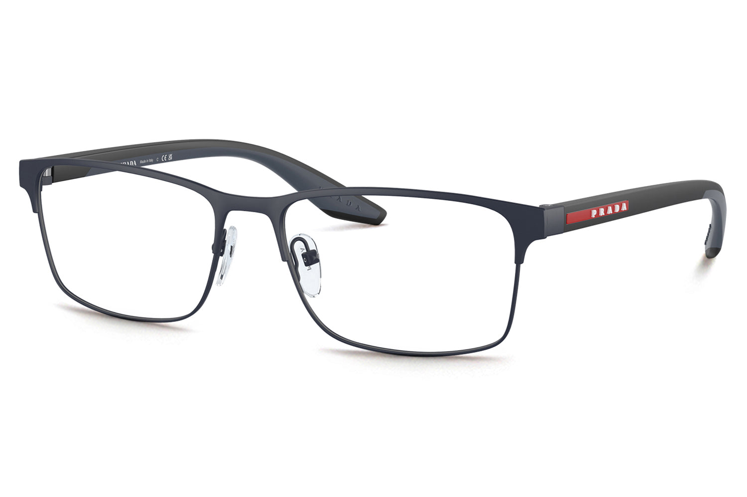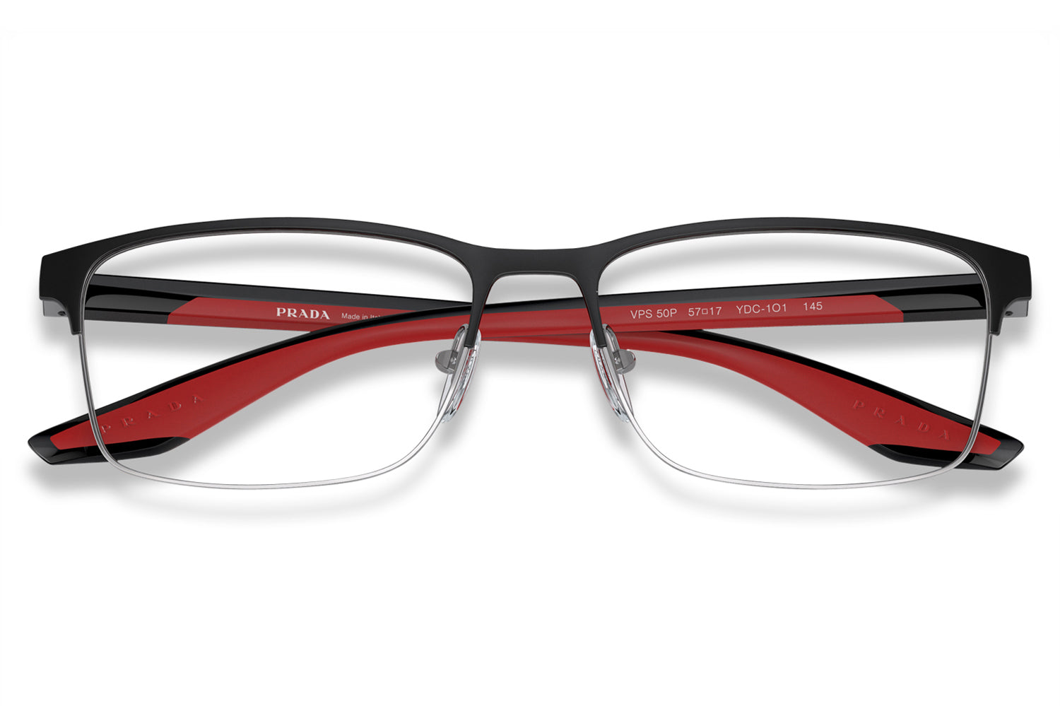 The Prada Linea Rossa - PS 50PV optical frames showcase a clean, minimalist design in a refined metal rectangular shape. Born from Prada Linea Rossa’s heritage of understated Italian performance style, this super-lightweight frame features sleek lines with subtle rubber details for modern comfort. Two-toned temple colorways, including black rubber with matte white accents, add a contemporary edge. Crafted for everyday wear, these designer optical frames deliver durability, comfort, and effortless sophistication, perfect for modern individuals seeking precision eyewear with a sporty, urban appeal. Comes complete with a Prada Linea Rossa box, protective case, cleaning cloth, and a 1-year manufacturer’s warranty.