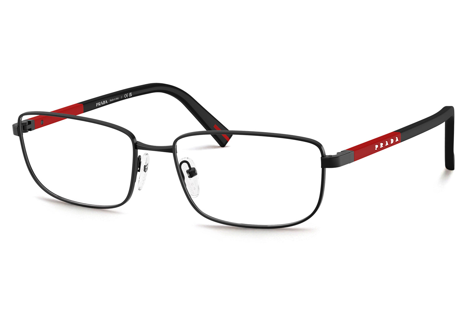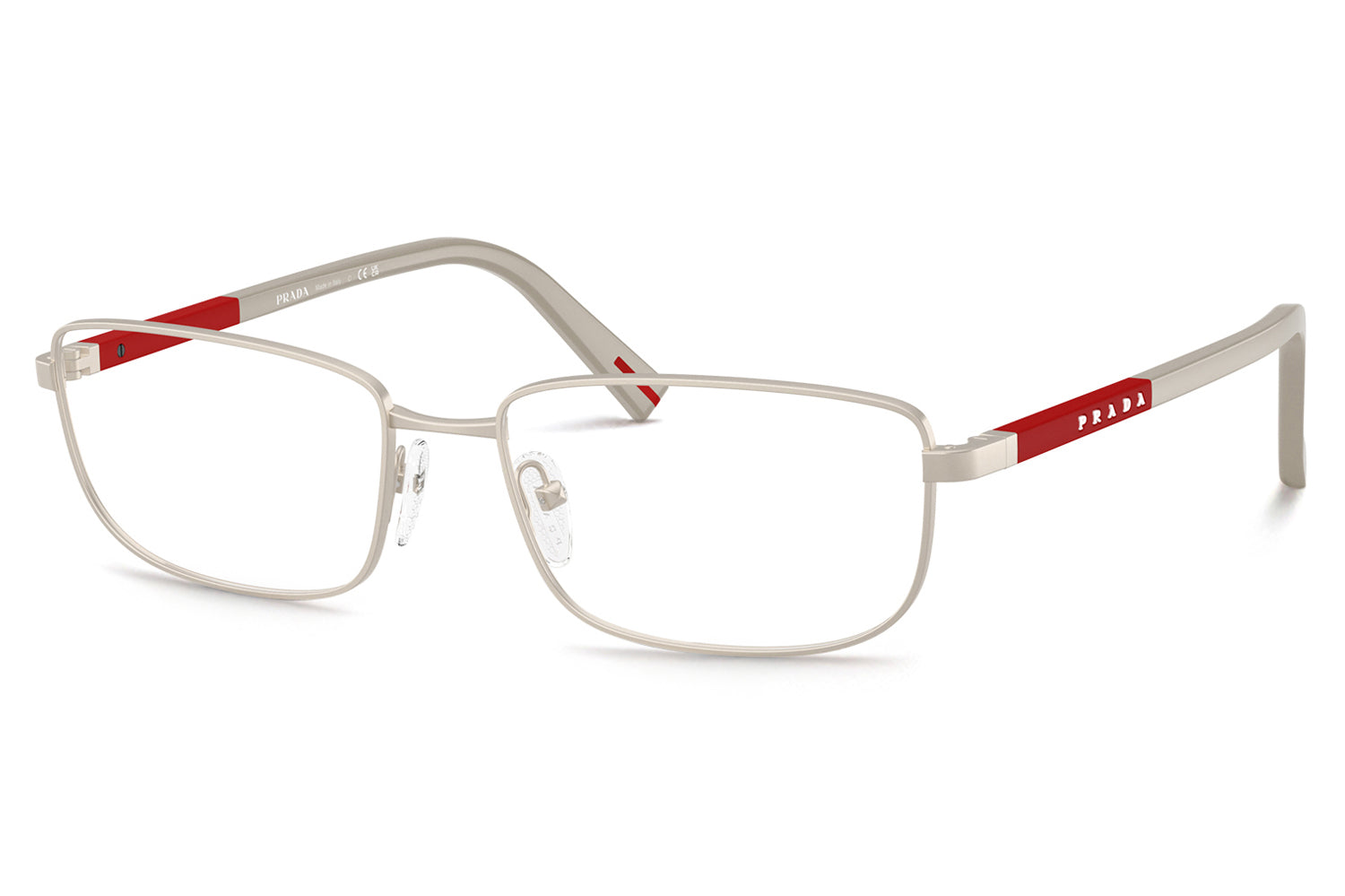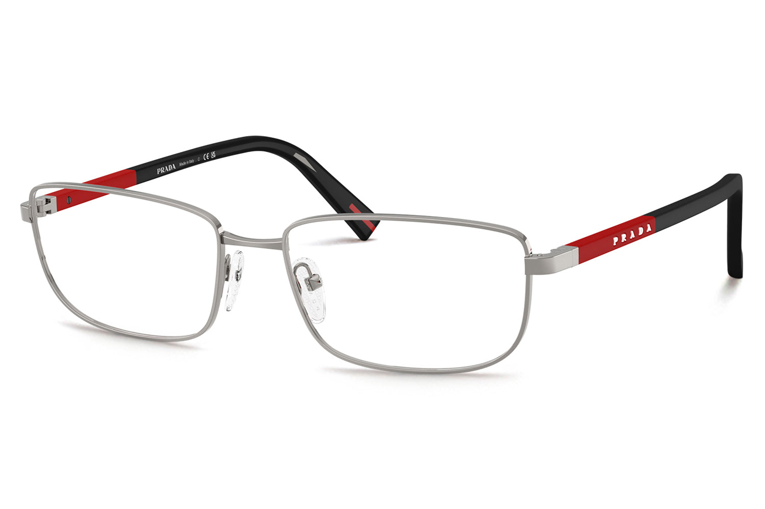 The Prada Linea Rossa - PS 50SV optical frames fuse minimalist Italian design with everyday performance. Featuring a sleek rectangular metal front paired with squared rubber temples, this style reflects Prada Linea Rossa’s modern sport-luxury DNA. Born from a performance-driven heritage, the lightweight construction and rubber temple tips ensure comfort and stability throughout the day. Finished with the iconic red stripe logo, PS 50SV is available in refined shades, including matte champagne, black, matte black, gunmetal, and matte blue. These designer optical frames are ideal for modern professionals seeking clean aesthetics, comfort, and understated sophistication. Comes complete with a Prada Linea Rossa box, protective case, cleaning cloth, and a 1-year manufacturer’s warranty.