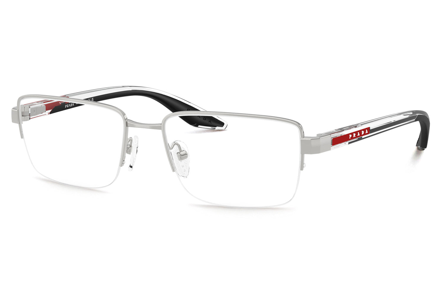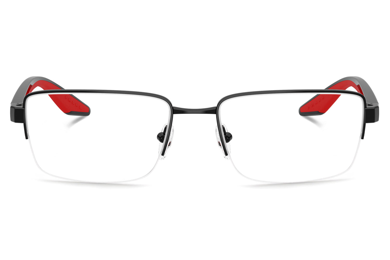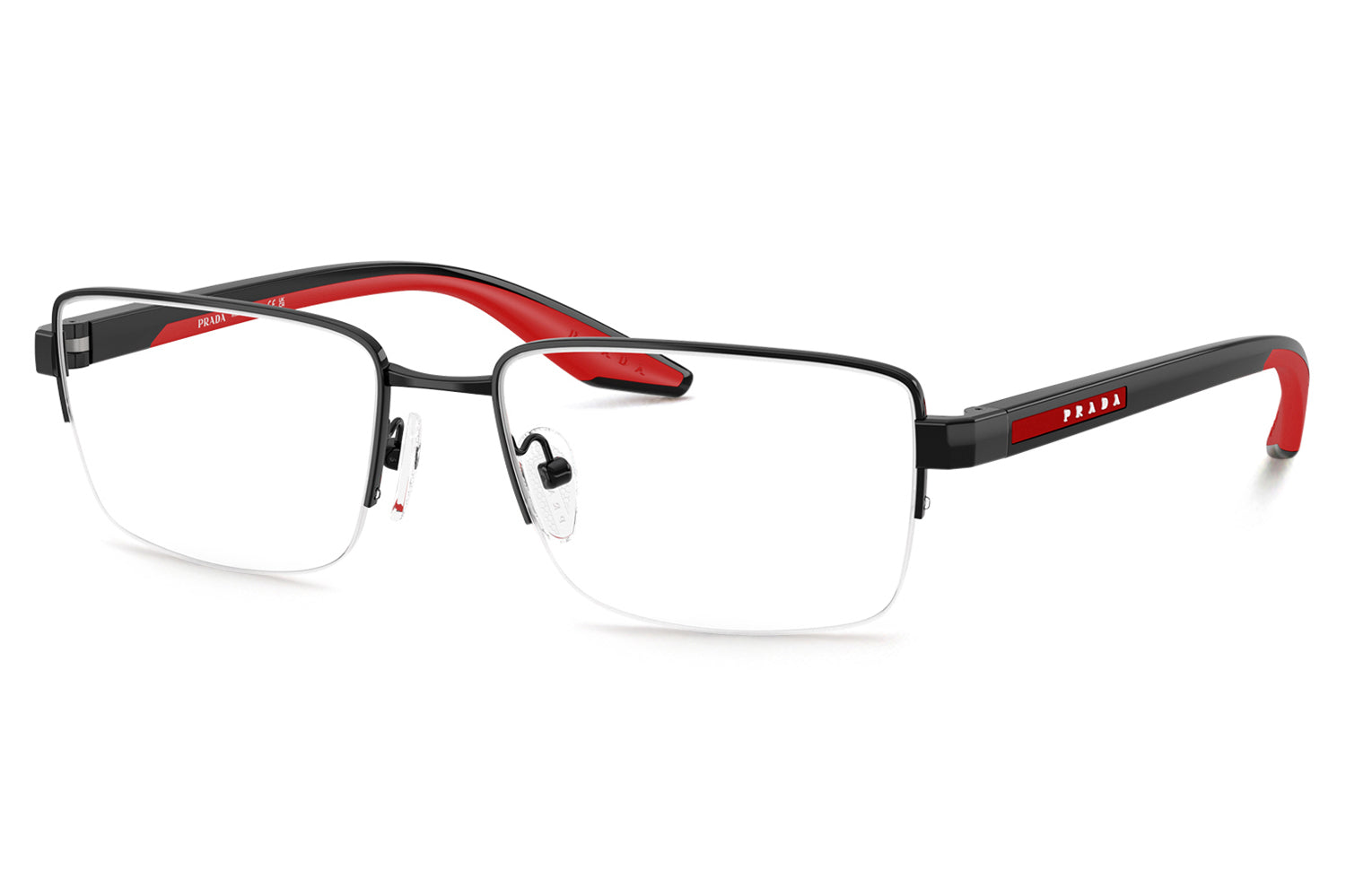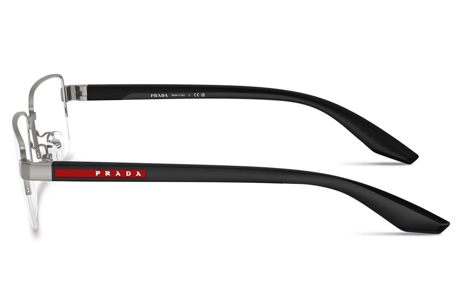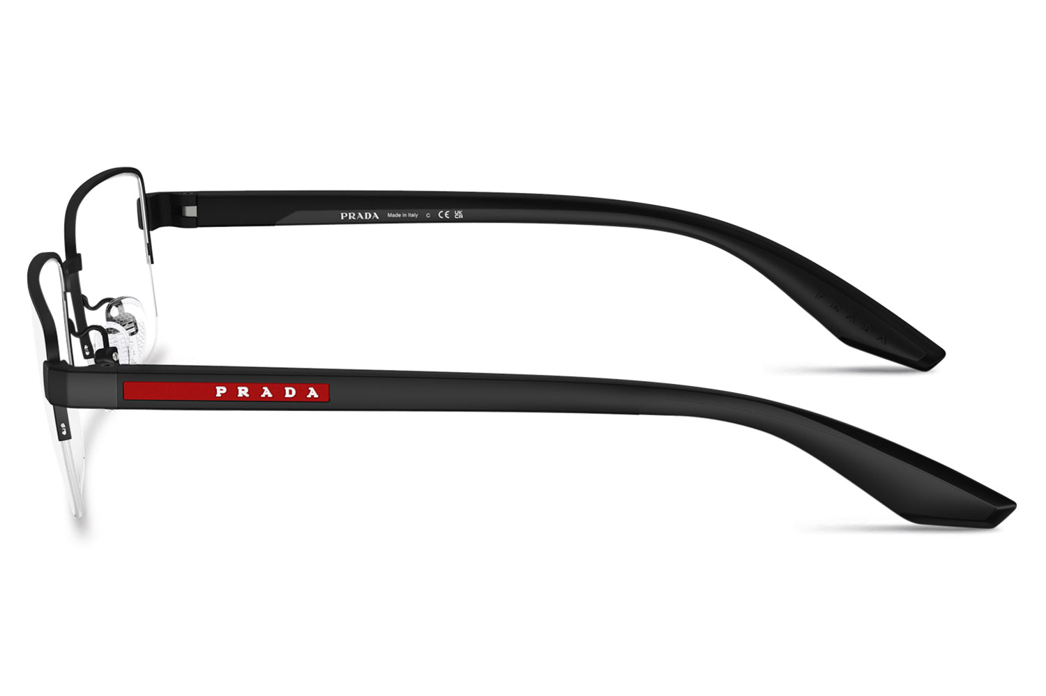 The Prada Linea Rossa - PS 51SV optical frame showcases clean lines in a refined semi-rimless rectangular design built for everyday versatility. Born from Prada Linea Rossa’s performance-driven heritage, this style pairs a lightweight metal front with injected temples for lasting comfort and durability. Rubber-injected temple tips enhance grip and wearability, while the iconic red stripe logo adds signature appeal. Available in coordinated metal colorways, including a standout shiny black option with red tips, these designer optical frames blend precision, comfort, and modern Italian style. Comes complete with a Prada Linea Rossa box, protective case, cleaning cloth, and a 1-year manufacturer’s warranty.