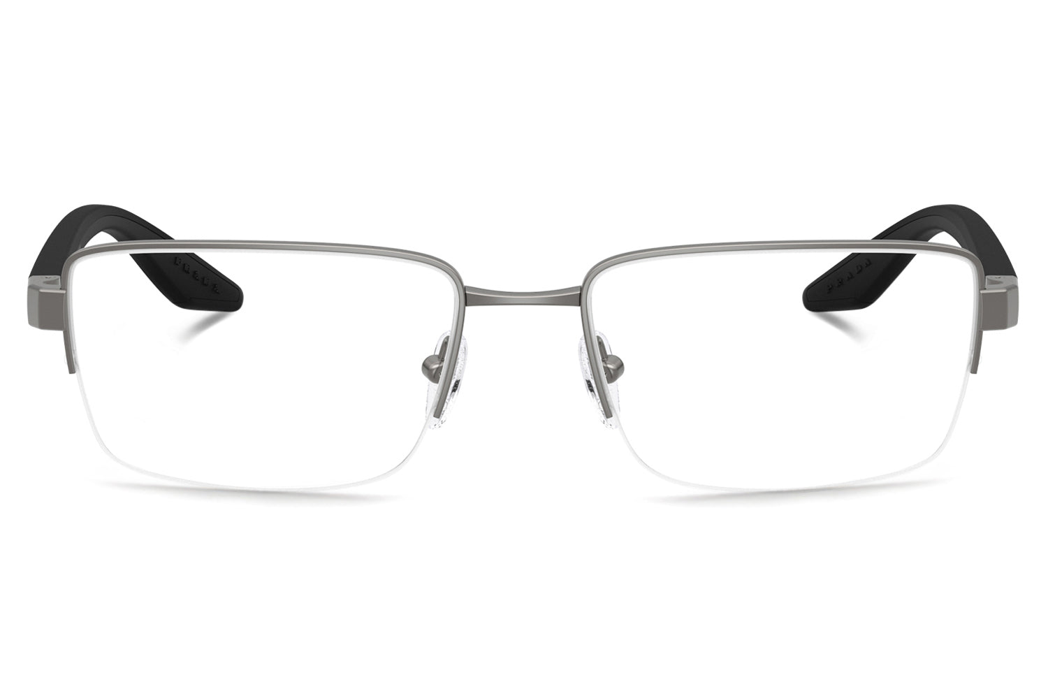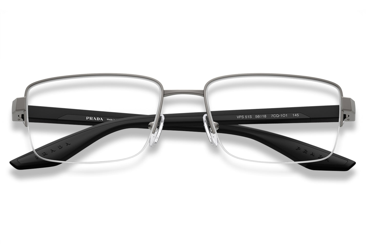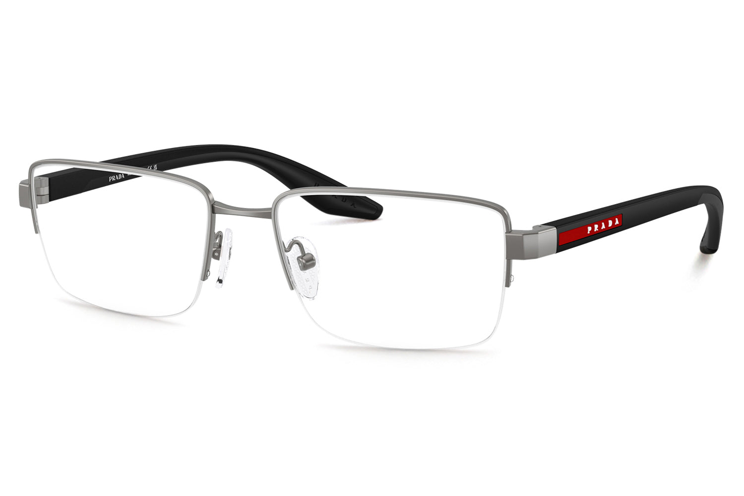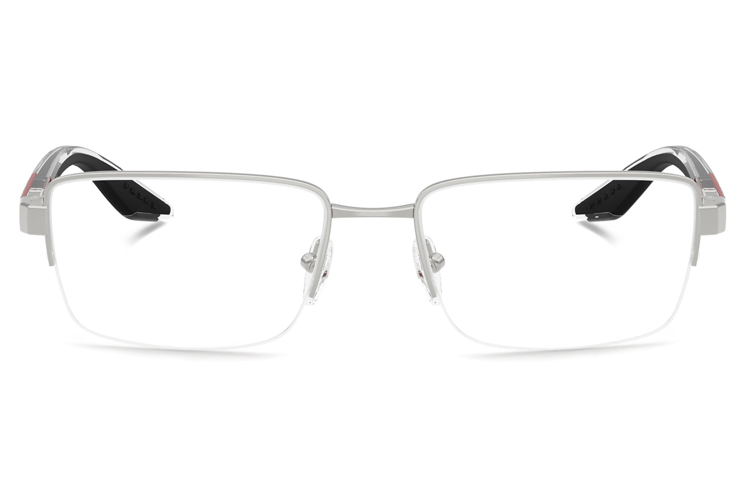 The Prada Linea Rossa - PS 51SV optical frame showcases clean lines in a refined semi-rimless rectangular design built for everyday versatility. Born from Prada Linea Rossa’s performance-driven heritage, this style pairs a lightweight metal front with injected temples for lasting comfort and durability. Rubber-injected temple tips enhance grip and wearability, while the iconic red stripe logo adds signature appeal. Available in coordinated metal colorways, including a standout shiny black option with red tips, these designer optical frames blend precision, comfort, and modern Italian style. Comes complete with a Prada Linea Rossa box, protective case, cleaning cloth, and a 1-year manufacturer’s warranty.