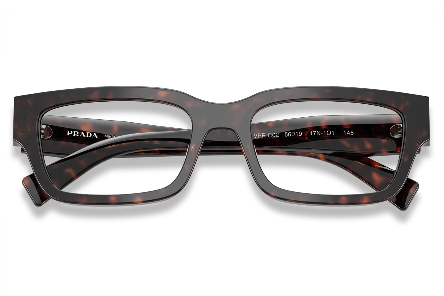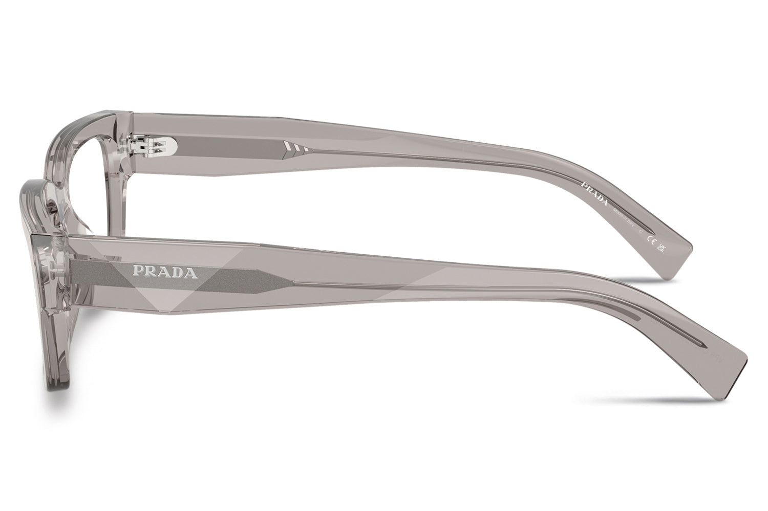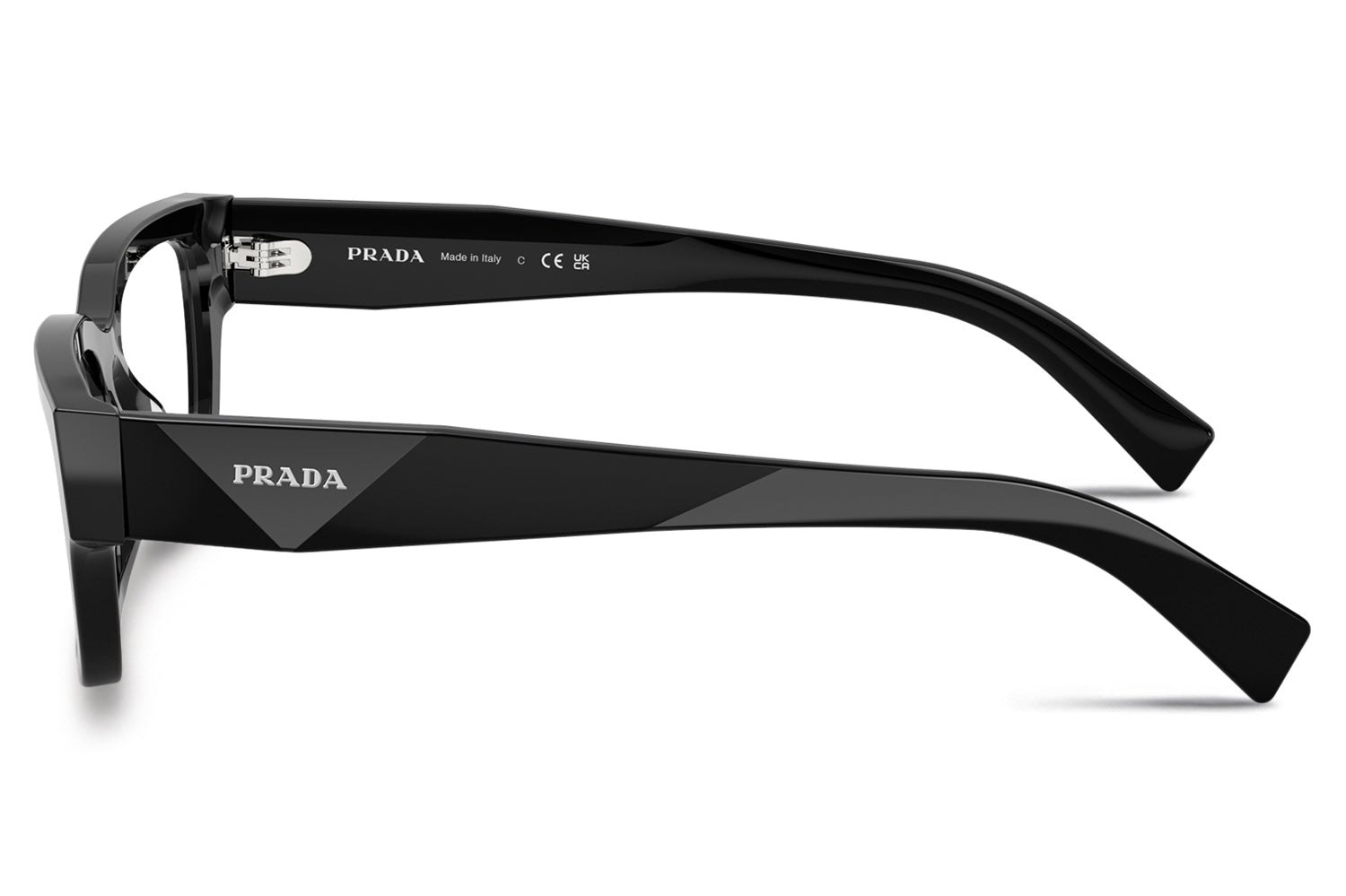 The Prada - PR C02V optical frames showcase the brand’s iconic triangular heritage through refined, faceted temple detailing. Designed in a narrow yet confident silhouette, this acetate style balances bold modern character with timeless elegance. Born from Prada’s tradition of architectural design, the faceted acetate temples subtly recreate the iconic triangle and are finished with the Prada lettering logo. Lightweight acetate construction ensures everyday comfort and durability. Available in classic black and seasonal transparent bark, these designer optical frames are perfect for those seeking sophisticated minimalism with unmistakable Prada identity. Comes complete with a Prada box, protective case, cleaning cloth, and a 1-year manufacturer’s warranty.
