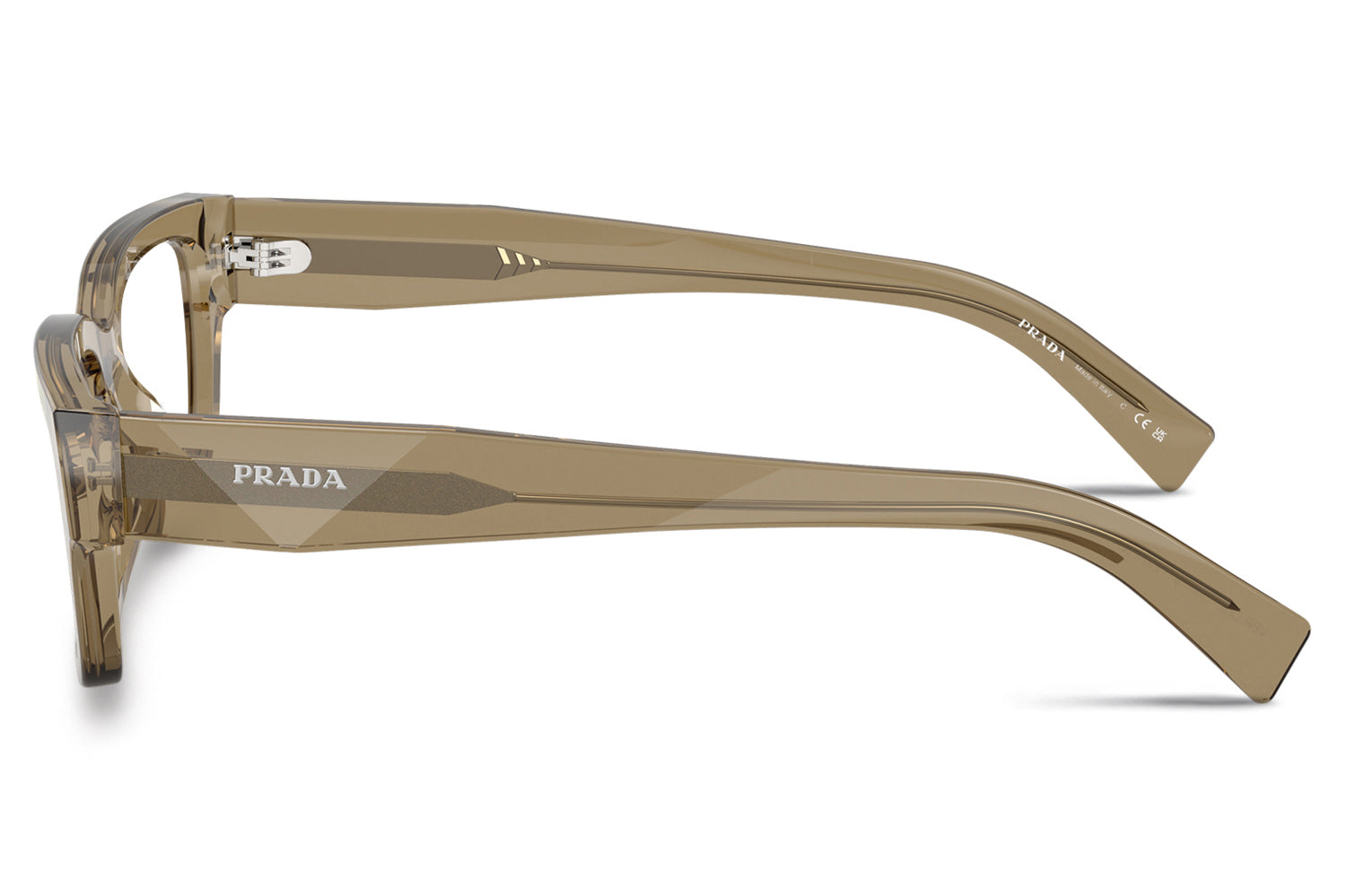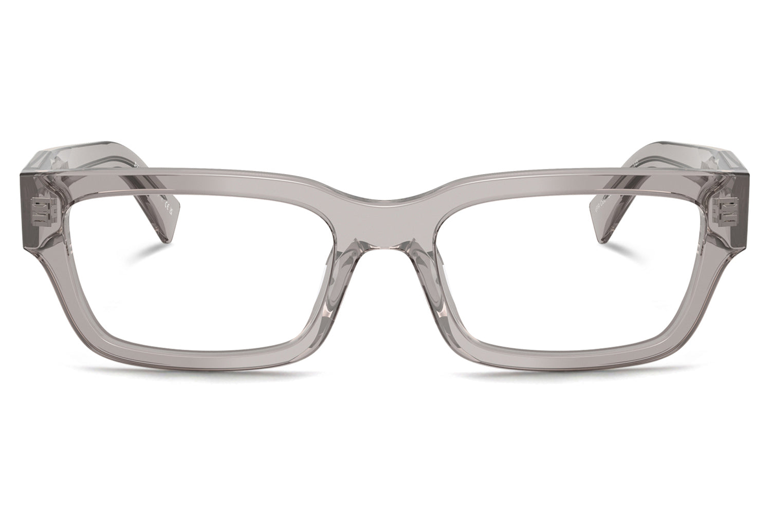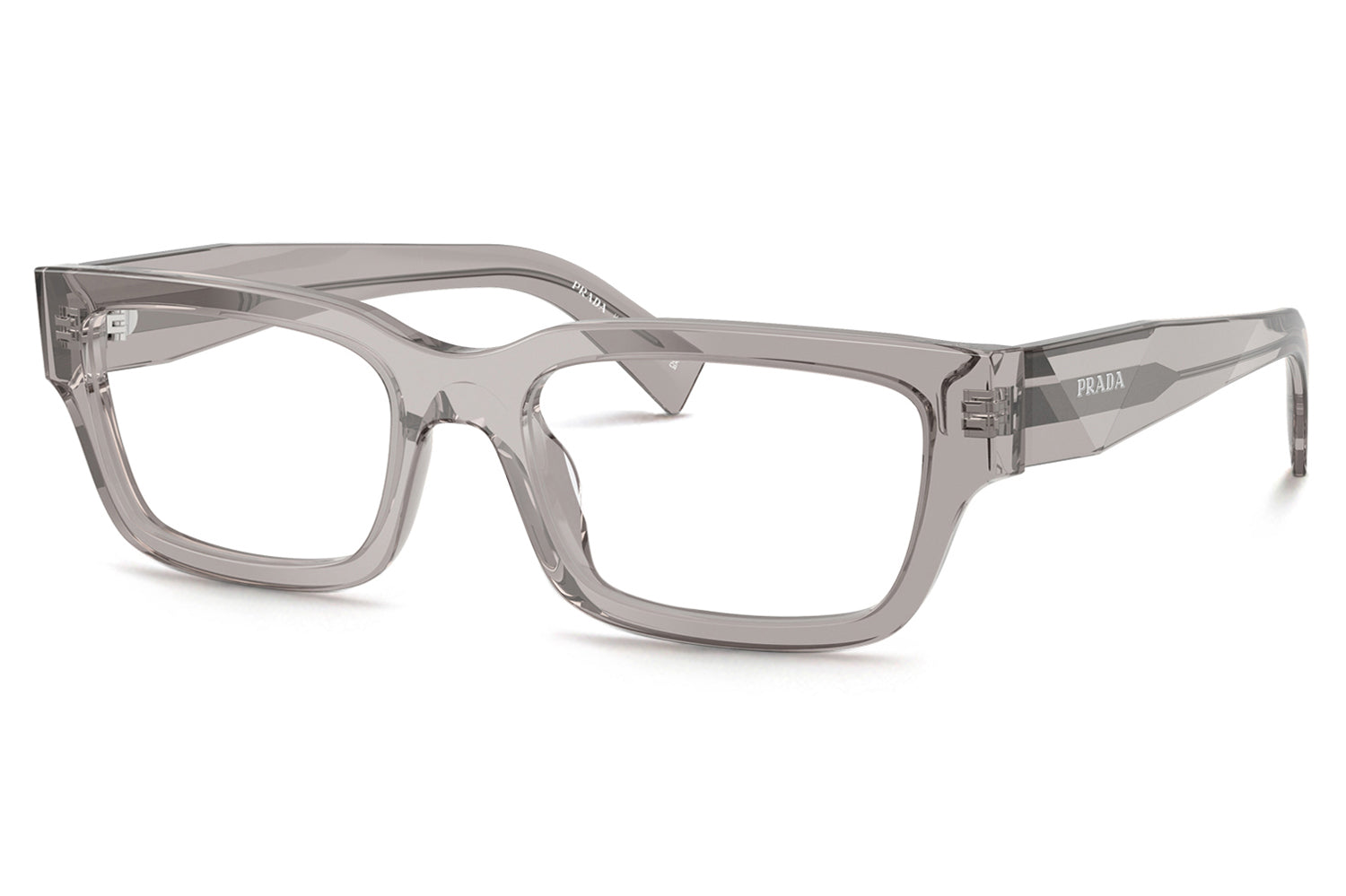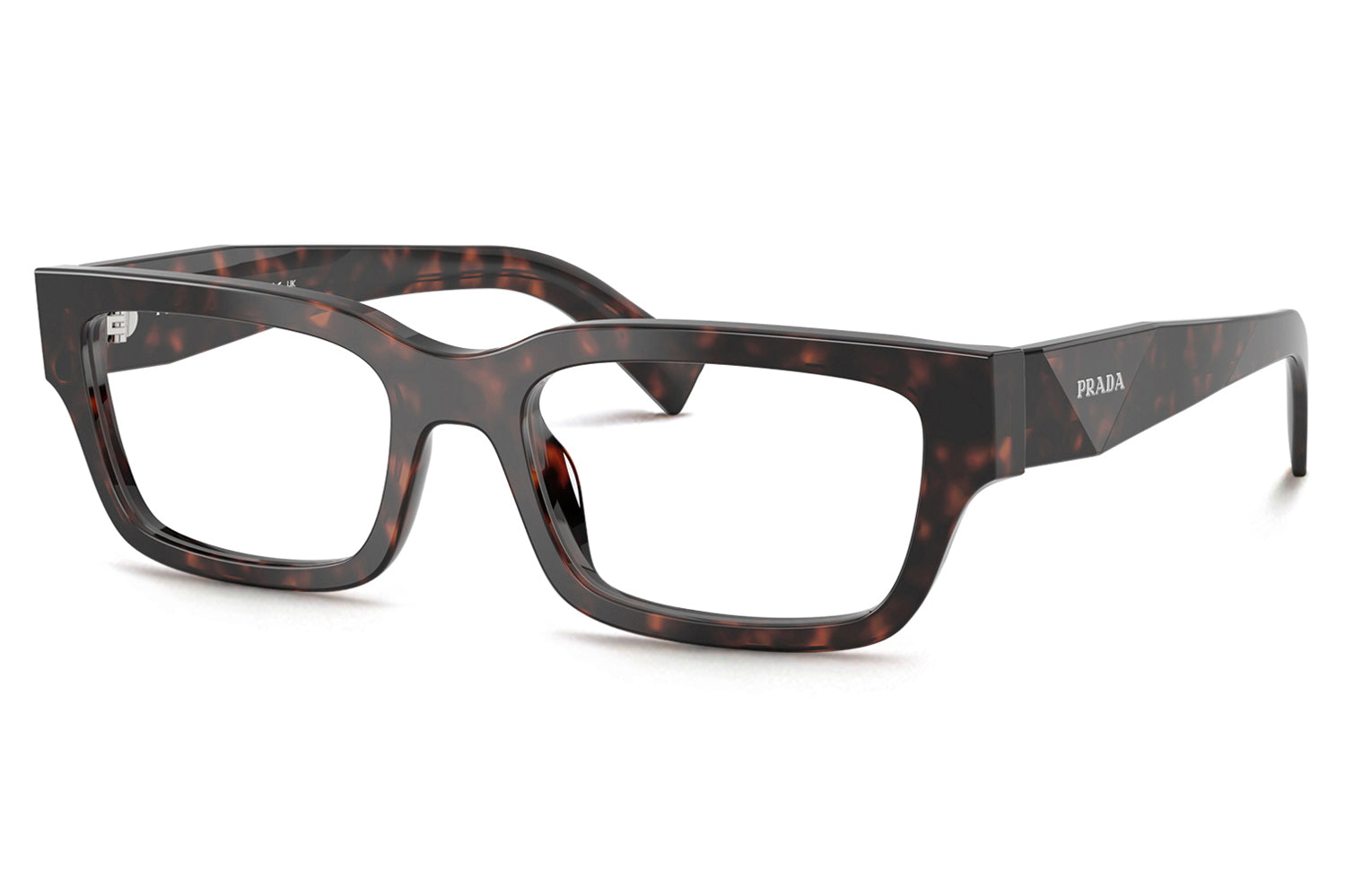 The Prada - PR C02V optical frames showcase the brand’s iconic triangular heritage through refined, faceted temple detailing. Designed in a narrow yet confident silhouette, this acetate style balances bold modern character with timeless elegance. Born from Prada’s tradition of architectural design, the faceted acetate temples subtly recreate the iconic triangle and are finished with the Prada lettering logo. Lightweight acetate construction ensures everyday comfort and durability. Available in classic black and seasonal transparent bark, these designer optical frames are perfect for those seeking sophisticated minimalism with unmistakable Prada identity. Comes complete with a Prada box, protective case, cleaning cloth, and a 1-year manufacturer’s warranty.