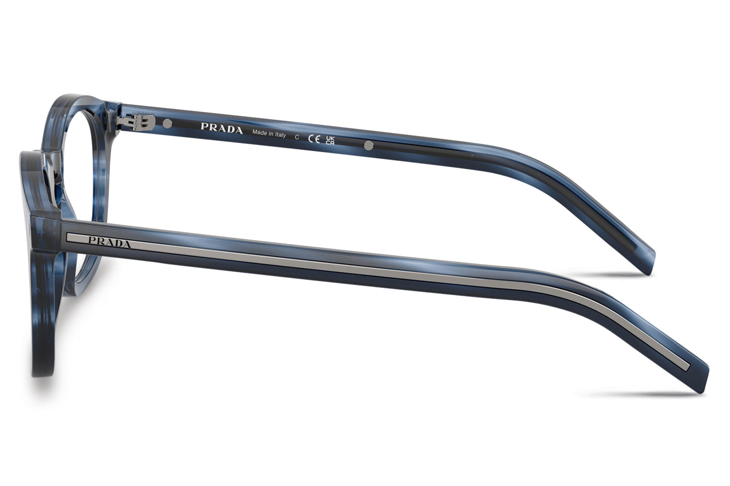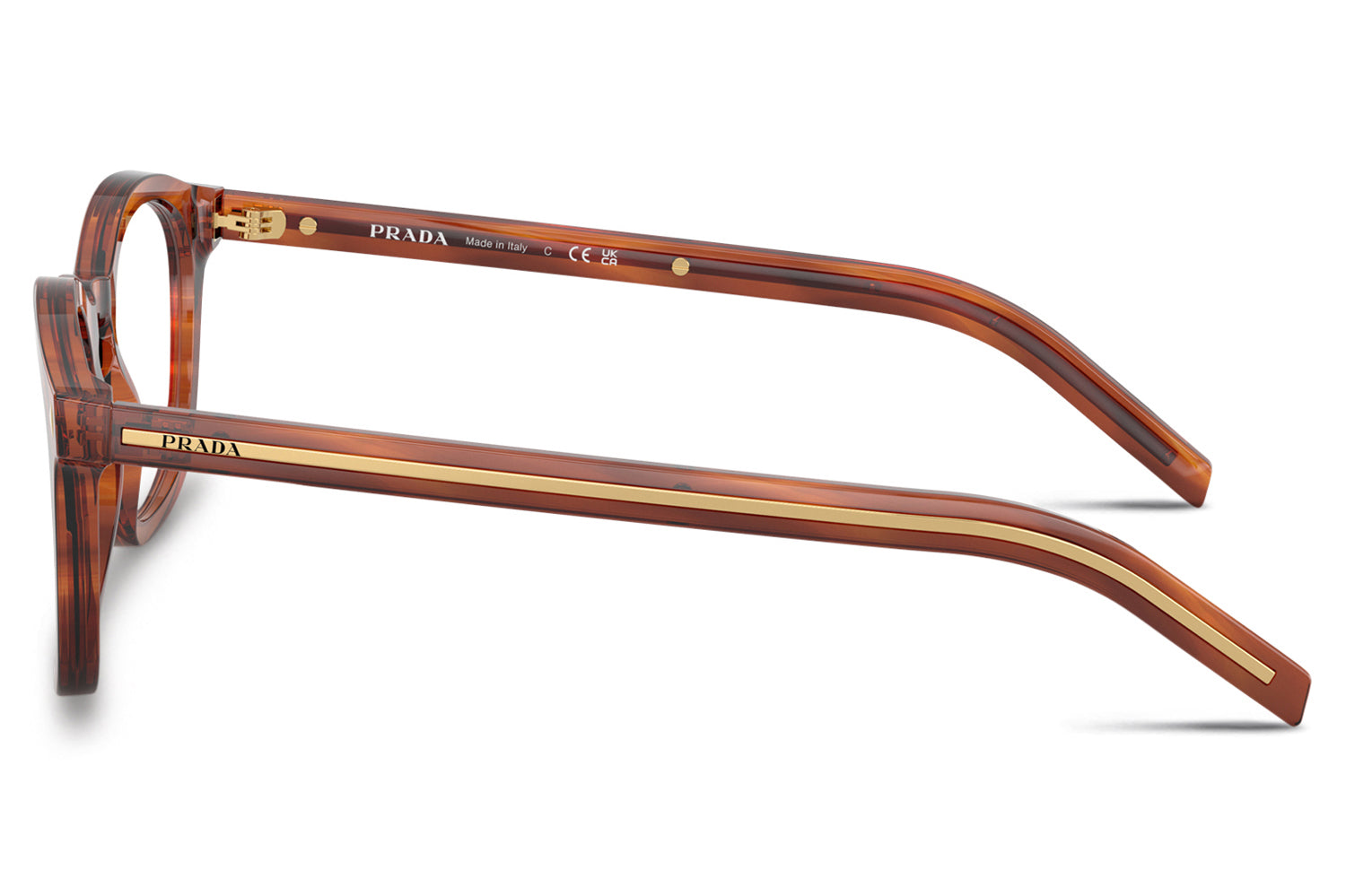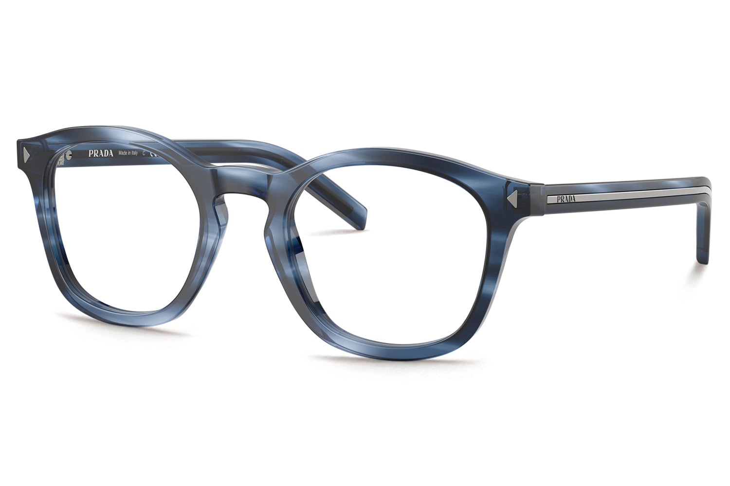 The Prada - PR C04V is rooted in Prada's heritage of understated elegance, blending timeless detailing with a refined modern silhouette. Crafted in acetate, this panthos-shaped design features a classic keyhole bridge and signature triangle pins on the front for subtle brand heritage. A distinctive elongated metal plaque runs the full length of the temples, offering unmistakable Prada recognition with a sleek finish. Available in black, root tortoise, transparent terra, striped blue, and striped cognac, these optical glasses are ideal for those seeking elevated everyday style with iconic Italian sophistication. Comes complete with a Prada box, protective case, cleaning cloth, and a 1-year manufacturer’s warranty.