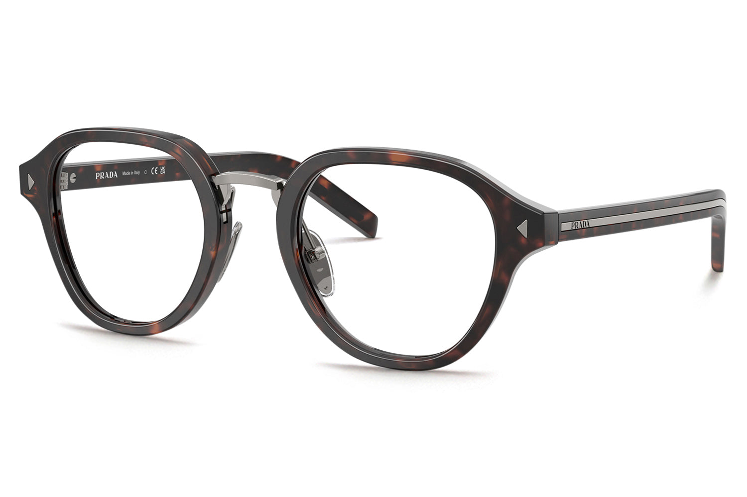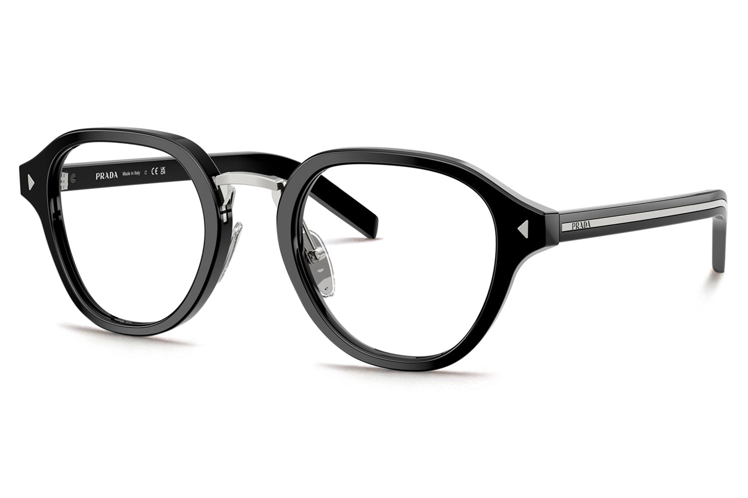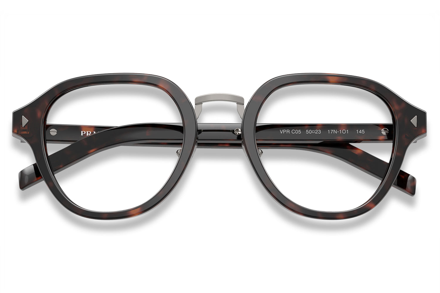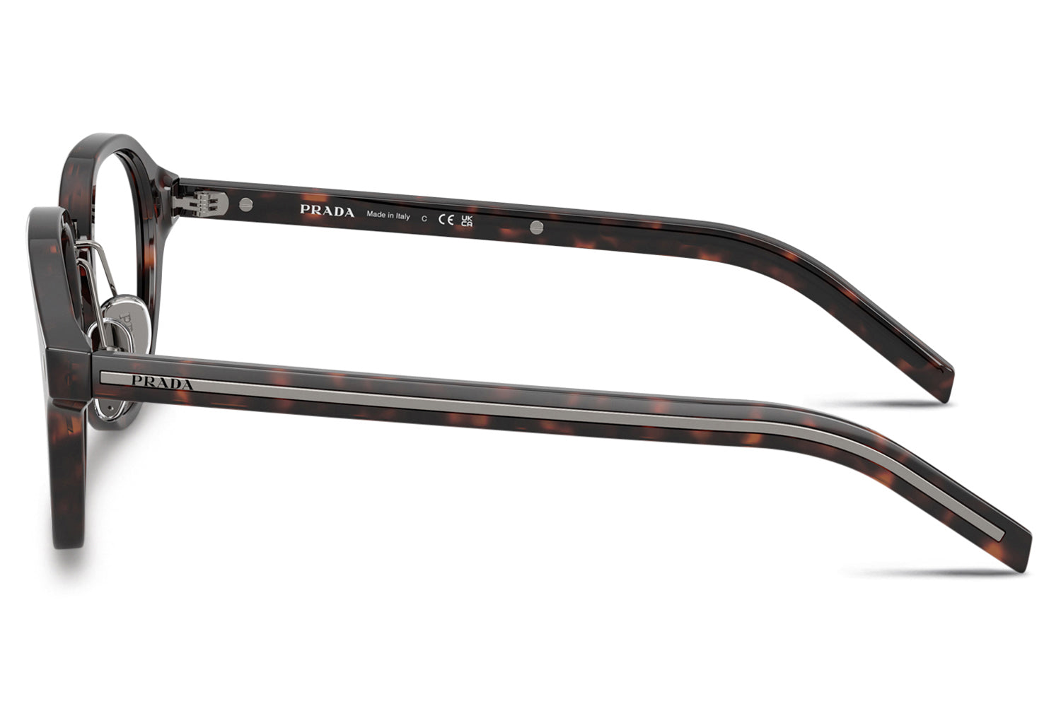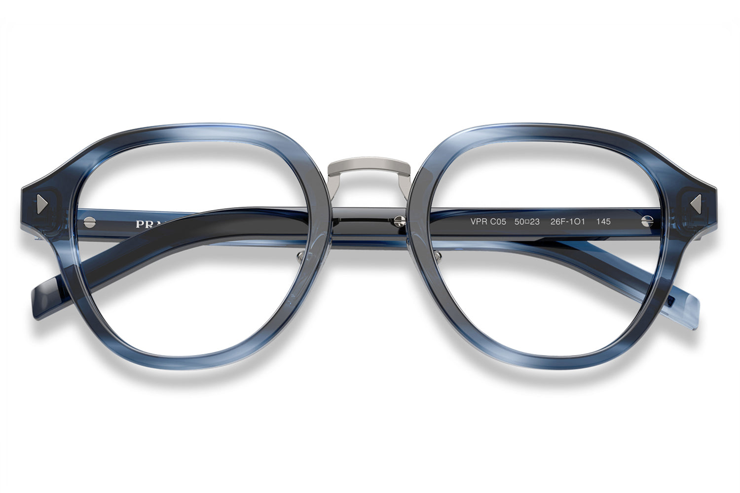The Prada - PR C05V optical frames showcase timeless elegance in a refined panthos acetate shape. A sleek metal bridge and adjustable nose pads ensure a comfortable, tailored fit, while subtle triangular pins enhance the front with architectural detail. The iconic elongated metal plaque runs continuously along the temples, delivering unmistakable Prada branding. Crafted in rich acetate tones, these glasses are paired with metal accents in silver, gold, or gunmetal, offering a luxurious, modern look ideal for those seeking style, comfort, and statement optical design. Comes complete with a Prada box, protective case, cleaning cloth, and a 1-year manufacturer’s warranty.