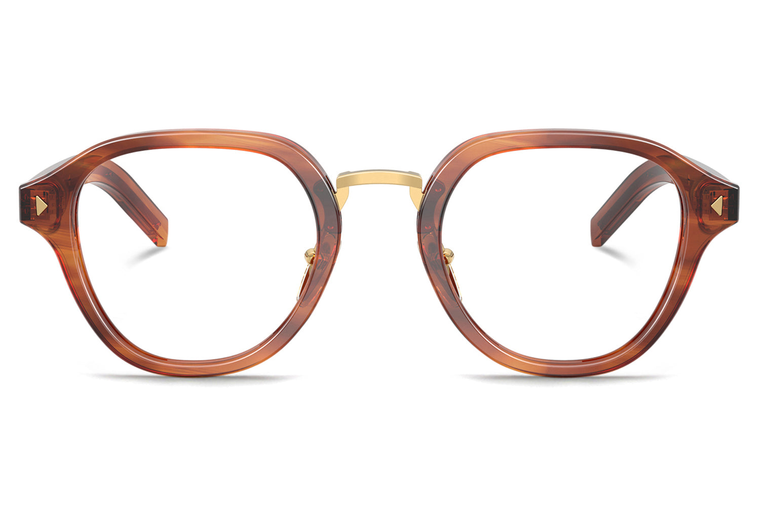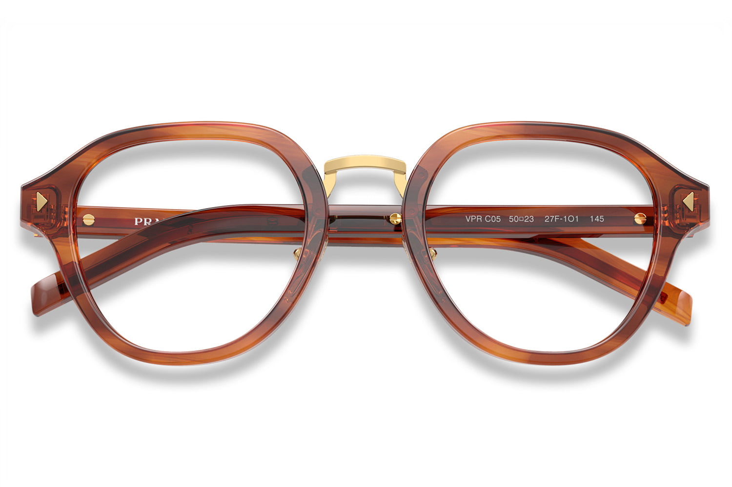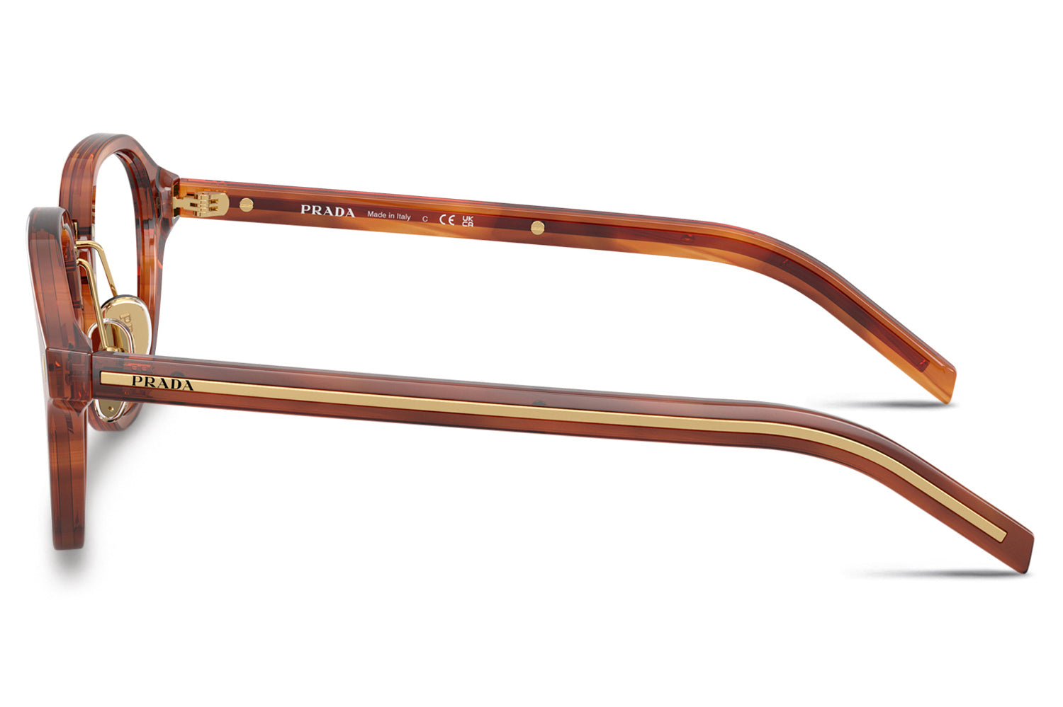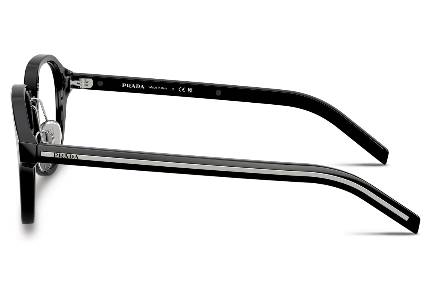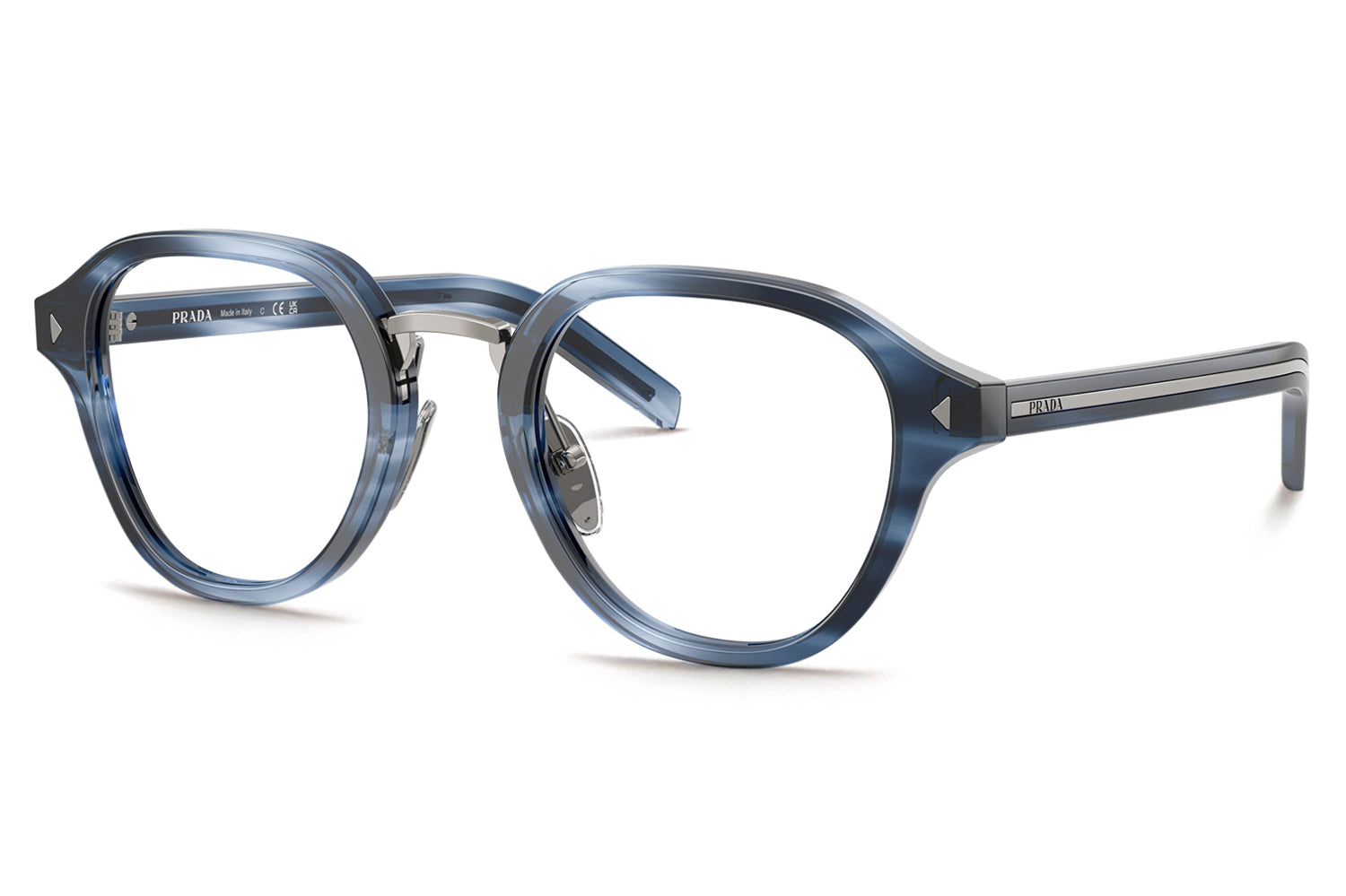 The Prada - PR C05V optical frames showcase timeless elegance in a refined panthos acetate shape. A sleek metal bridge and adjustable nose pads ensure a comfortable, tailored fit, while subtle triangular pins enhance the front with architectural detail. The iconic elongated metal plaque runs continuously along the temples, delivering unmistakable Prada branding. Crafted in rich acetate tones, these glasses are paired with metal accents in silver, gold, or gunmetal, offering a luxurious, modern look ideal for those seeking style, comfort, and statement optical design. Comes complete with a Prada box, protective case, cleaning cloth, and a 1-year manufacturer’s warranty.