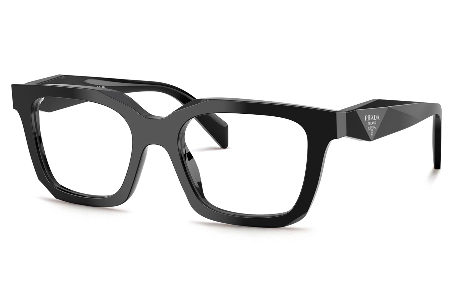 The Prada - PR C08VF (Low Bridge Fit) redefines timeless elegance with enhanced comfort and tailored wearability. Designed specifically for low bridge profiles, this classic square acetate frame offers a secure, balanced fit that helps prevent slipping and pressure on the nose. Rooted in Prada’s heritage dating back to 1913, the faceted temples reinterpret the iconic triangle motif, housing the signature Prada logo. Available in refined dark acetates such as black and transparent flint, these optical glasses are ideal for those seeking iconic style with improved fit, comfort, and everyday confidence. Comes complete with a Prada box, protective case, cleaning cloth, and a 1-year manufacturer’s warranty.