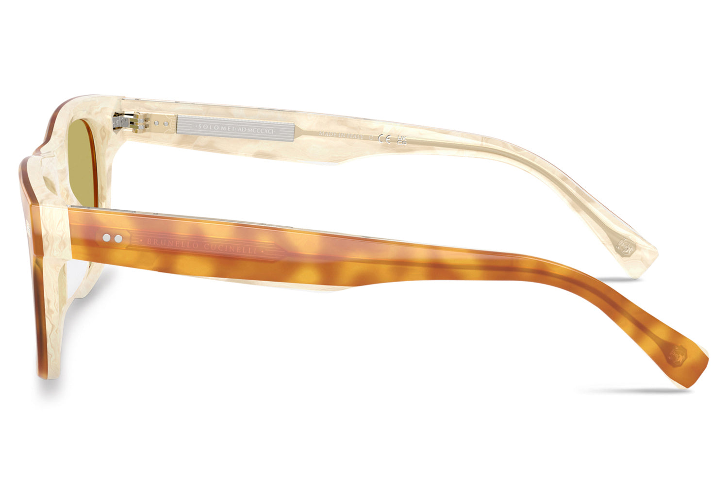 The Mr. Brunello (BC4002S) sunglasses elevate timeless acetate design with impeccable handcrafted techniques and refined nuances. Masterful craftsmanship reveals itself in subtle yet sophisticated details, including double galvanic pins inspired by the geometry of the heraldic coat of arms. The temples feature micro-details such as lasered logos on the metal core, flush-mounted pins, and personalized hinges. Part of the “Iconic Meridian” line, the Mr. Brunello reinterprets Brunello Cucinelli’s iconic heraldic logo, blending light and geometry into sculptural elements reminiscent of a sundial’s graceful precision. Handmade in Japan. Includes Brunello Cucinelli box, hard case, soft case, cleaning cloth, and 1-year manufacturer warranty.