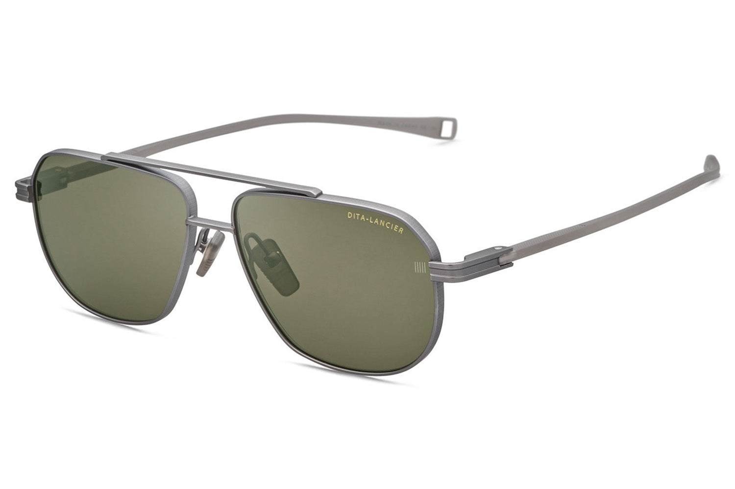 The Dita Lancier - LSA-424 occupies the space between the aviator and the navigator with rare confidence. A full-rim titanium chassis with coin-pressed lens rim detail frames generous, gently squared lenses, the silhouette broad and assured without sacrificing elegance. Ultra-lightweight TR90 nylon temples with a custom anti-walk hinge pin provide a fit that holds with precision through any condition. Adjustable double-injected soft-touch nose pads complete the comfort. Proprietary lenses deliver ultra-high-definition clarity with hydrophobic, anti-reflective coatings. These DITA-Lancier sunglasses, made in Japan, are available with luxury high-definition prescription lenses. Presented with the Dita Lancier box, case, and cleaning cloth.