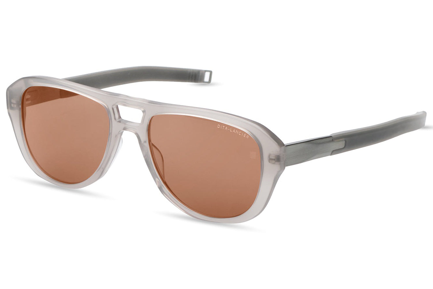 The Dita Lancier - LSA-430 reimagines the acetate aviator with a detail that sets it apart entirely. A substantial Japanese acetate front features an open keyhole bridge, a sculptural cutout that adds visual intrigue and lightens the frame's presence without diminishing its boldness. Titanium temples provide a precise engineering counterpoint to the acetate's organic depth. Adjustable soft-touch anti-slip temple tips with integrated end-tip deliver a secure, comfortable fit. Proprietary lenses offer ultra-high-definition clarity with hydrophobic, anti-reflective coatings. These DITA-Lancier sunglasses, made in Japan, are available with luxury high-definition prescription lenses. Presented with the Dita Lancier box, case, and cleaning cloth.