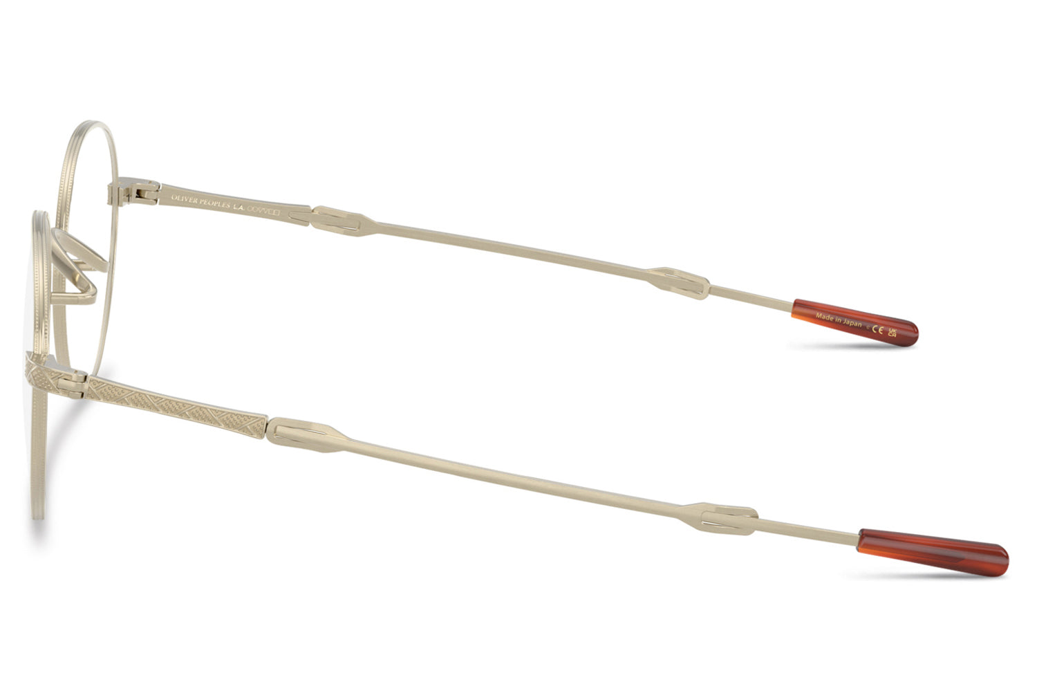 The Oliver Peoples // Kinston (OV1368T) is crafted from lightweight titanium. This refined optical frame features a saddle bridge and a unique sliding temple design that allows for a compact fit, embodying an intellectual aesthetic inspired by archival Oliver Peoples styling. Handmade in Japan. Includes Oliver Peoples box, case, cleaning cloth, and 1-year manufacturer warranty.