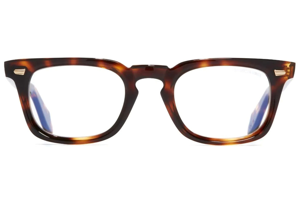 The Cutler and Gross // 1406 optical presents an understated alternative to their classic chunky framework. It's handcrafted from a single sheet of acetate that's milled with winged lugs and fender tips. Cutler and Gross signatures – Oyster and Compass Star pins – add subtle detail. Includes Cutler & Gross case, cleaning cloth, and 1-year manufacturer warranty.