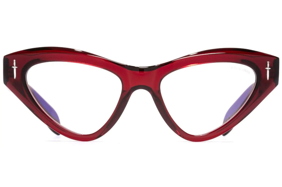 The Cutler and Gross // The Great Frog Mini collaboration combines over 100 years of heritage craftsmanship, and this optical is a case in point. It's sculpted by hand to an eccentric cat-eye silhouette with Dagger frontal pins cast from Sterling Silver. Lock Down chain core wire structures the 50s-inspired shape, pinned by Big Eye rivets. Includes Cutler & Gross case, cleaning cloth, and 1-year manufacturer warranty.