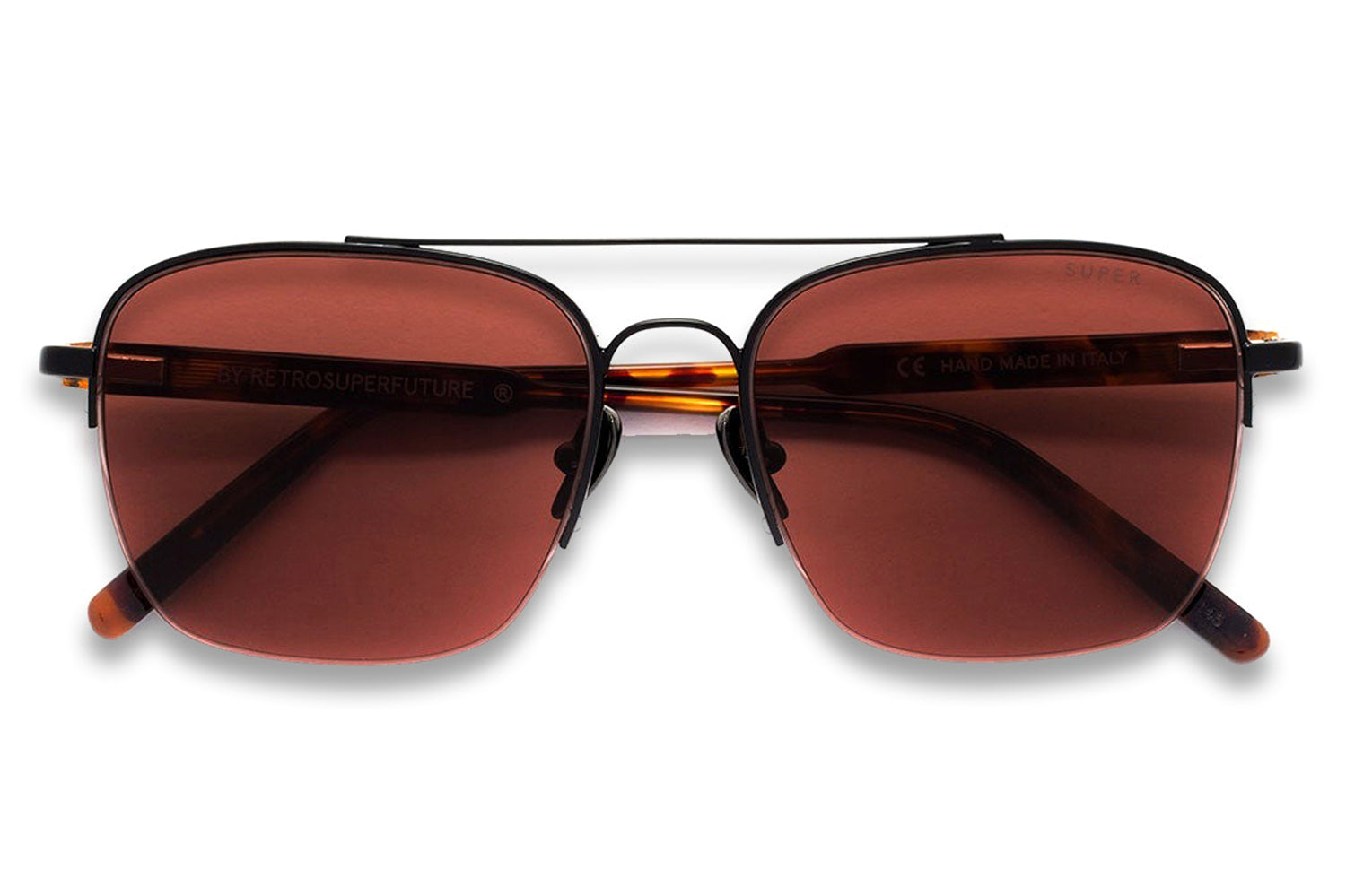 The Retro Super Future // Adamo is a sharp silhouette inspired by classic aviator-style frames interpreted with an angular, geometric design. Characterized by a low profile, with wide lenses and a double nose-bridge with flat acetate arms, Adamo captures the cool 1990s aesthetics. Lenses are made by ZEISS. Includes RSF box case and cleaning cloth.