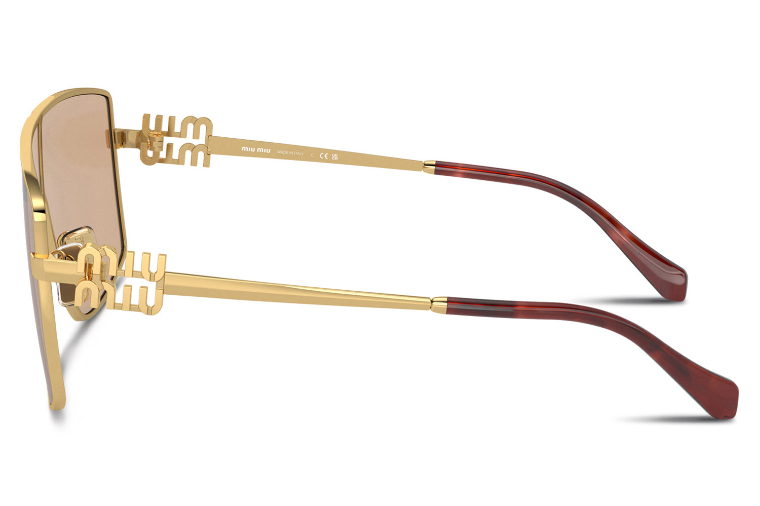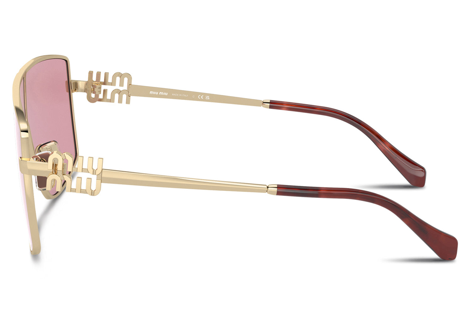 The Miu Miu – MU 51ZS sunglasses deliver a contemporary statement with a strong, feminine silhouette and refined metal detailing. Born from Miu Miu’s bold Italian fashion heritage, this sun style features a sleek metal frame with the iconic vertical logo integrated into the hinge. Lightweight metal construction ensures comfort and durability. Available in gold, pale gold, or black with black or havana temple tips, these designer sunglasses blend modern elegance with a confident attitude, perfect for fashion-forward wearers seeking standout everyday glamour. Comes complete with a Miu Miu box, protective case, cleaning cloth, and a 1-year manufacturer’s warranty.
