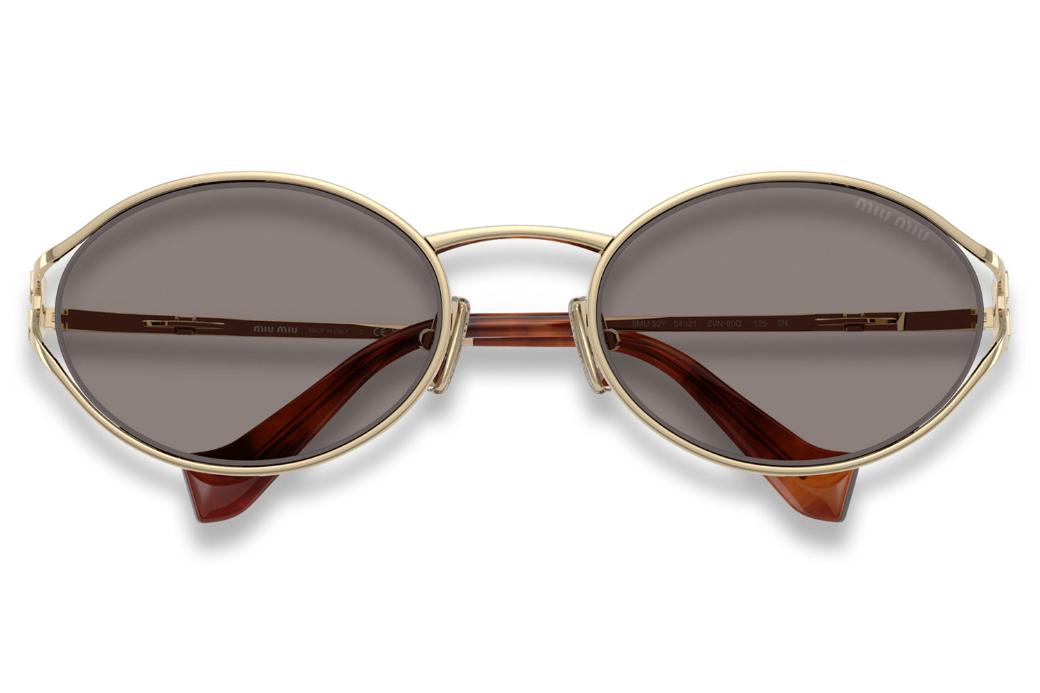 The Miu Miu – MU 52YS sunglasses redefine bold design with a fresh oval silhouette. Unique metal rims curve away from the lenses, creating a striking, deconstructed effect before joining the vertical logo hinge. This unexpected detail adds edge to a sleek profile. A perfect example of Miu Miu’s daring aesthetic, blending avant-garde fashion with refined Italian craftsmanship and luxury appeal. Comes complete with a Miu Miu box, protective case, cleaning cloth, and a 1-year manufacturer’s warranty.