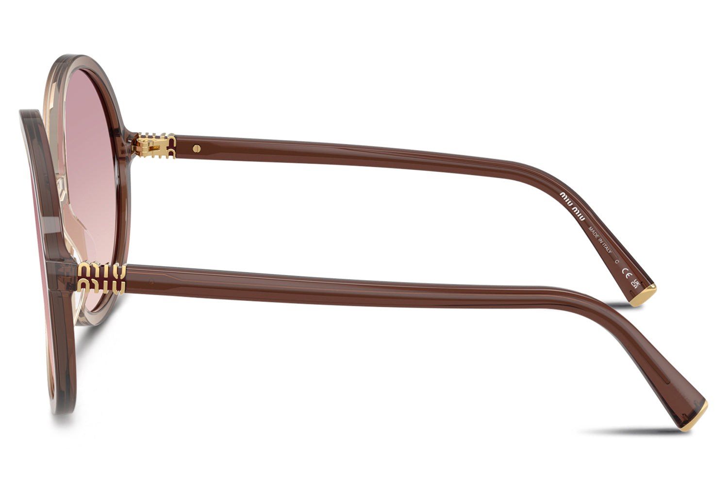 The Miu Miu – MU B02S sunglasses showcase the brand’s playful mischief through an oversized round acetate silhouette. Born from Miu Miu’s bold Italian fashion heritage, this sun style features voluminous frames paired with delicately thin temples and sheer, uniquely tinted lenses. A subtle gold vertical logo adorns the sleek temples for refined contrast. Available in distinctive colorways, these designer sunglasses blend expressive volume with lightweight elegance, perfect for fashion-forward wearers seeking statement style with a soft, artistic edge. Comes complete with a Miu Miu box, protective case, cleaning cloth, and a 1-year manufacturer’s warranty.