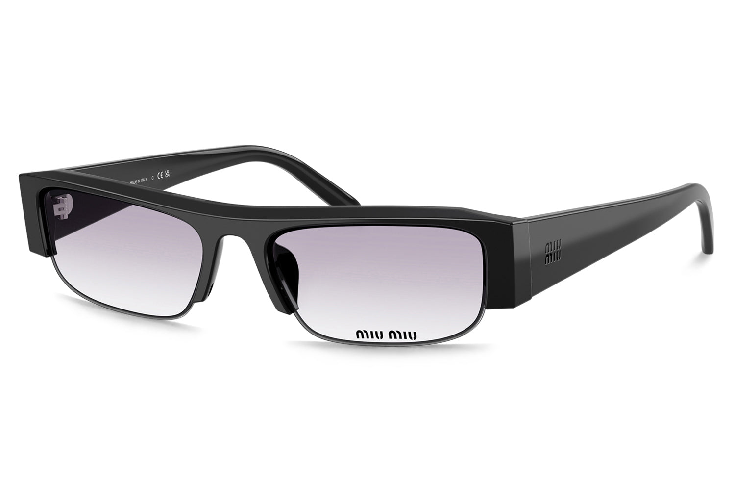 The Miu Miu – MU B07SF (Low Bridge Fit) sunglasses feature a sleek rectangular semi-rimless acetate design with a low bridge fit, delivering modern edge and high-impact style. Designed to benefit wearers with lower nose bridges or higher cheekbones, this fit offers improved comfort, better balance, and reduced slippage. Lightweight acetate construction ensures effortless all-day wear, while bold lens color options create a confident statement. Rooted in Miu Miu’s Italian fashion heritage, these designer sunglasses are perfect for style-forward wearers seeking contemporary sophistication with a secure, comfortable fit. Comes complete with a Miu Miu box, protective case, cleaning cloth, and a 1-year manufacturer’s warranty.