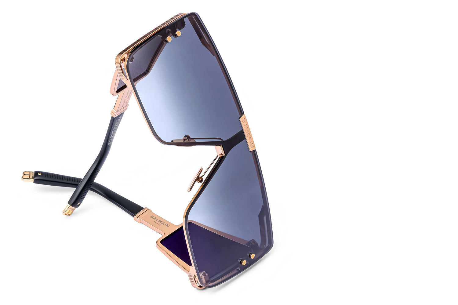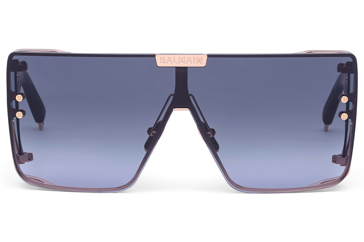 The Balmain – Wonder Boy is an iconic, futuristic, unmistakably Balmain. Celebrating 80 years of the House’s revolutionary legacy, the Wonder Boy sunglass style returns in a new limited edition of only 500 numbered pieces. First introduced in Spring/Summer 2020, the statement shield frame in Japanese titanium redefines avant-garde luxury with high-impact volumes, architectural mastery, and couture heritage. Born from the visionary mind of Olivier Rousteing, nicknamed “Wonder Boy” for his extraordinary rise, the oversized silhouette channels couture drama, while the sculpted profiles recall the sweeping lines of a Parisian monument. Every detail tells a story: the B rivets screwed onto the lens nod to the military-inspired gilded buttons that once adorned Pierre Balmain’s post-war designs; the intricately engraved side spoilers feature the legendary PB labyrinth pattern, one of the Maison’s most recurring motifs, echoing the timeless complexity of Renaissance gardens, the temple trimmings, enamel finish, ornamental rings, and cut-out B monogram on the tips, fuse the Maison’s rebellious spirit with the precision of a jeweler’s hand. The new iteration reinterprets Balmain’s iconic black-and-gold palette with a contemporary twist: rose gold and black, a luxurious contrast that exudes refinement with an edge, making it a coveted masterpiece for collectors and fashion connoisseurs alike. Custom champagne mirror lenses complete the luminous look, radiating the glow and glimmer of Balmain’s signature gold embellishments. Handmade in Japan. Includes Balmain box, hard case, soft case, cleaning cloth, and 1-year manufacturer warranty.