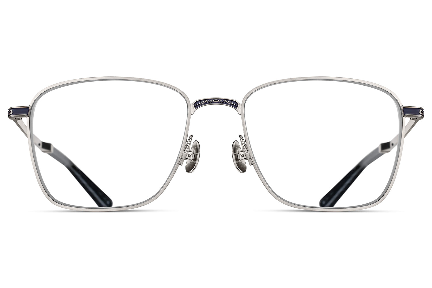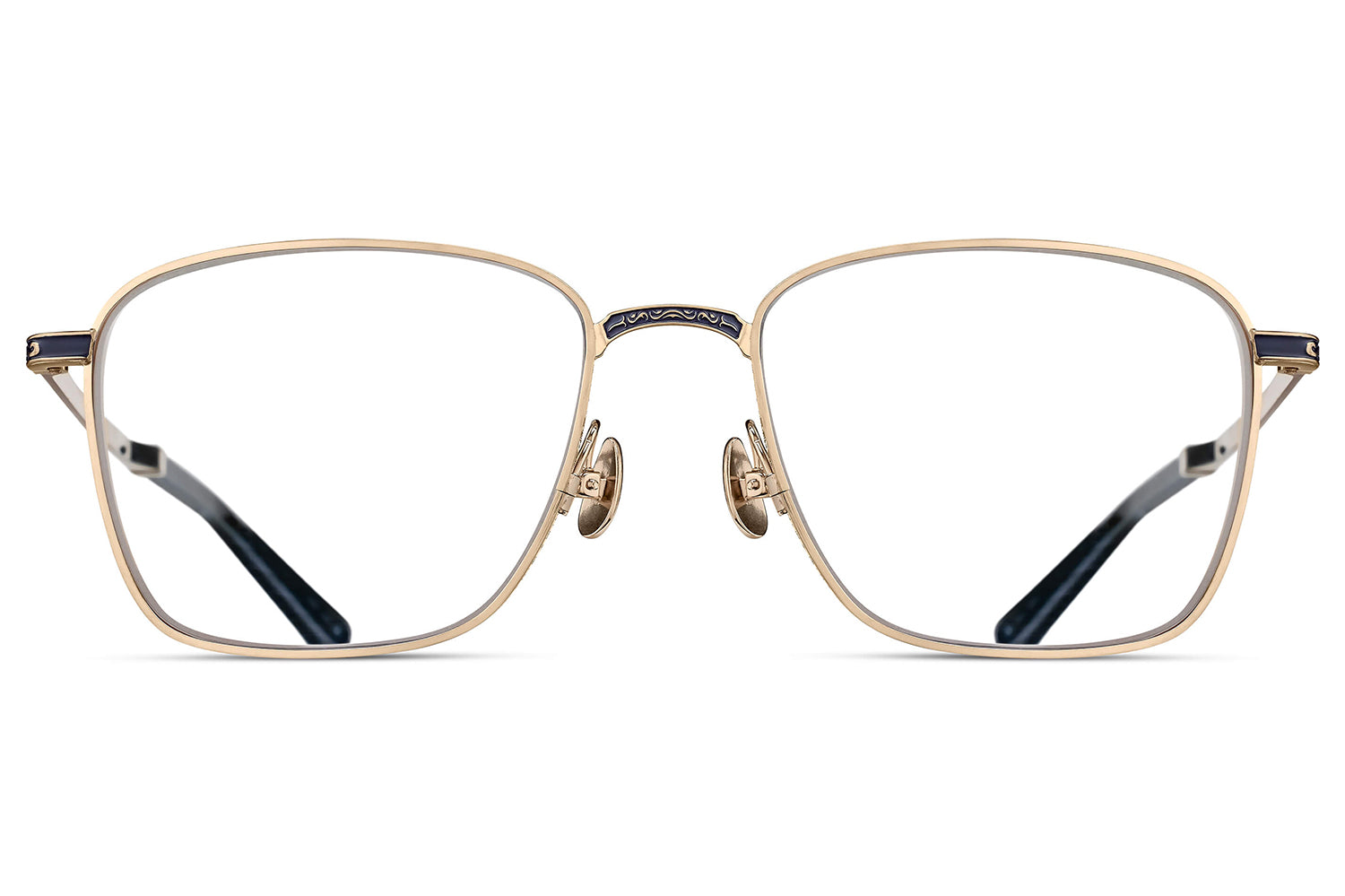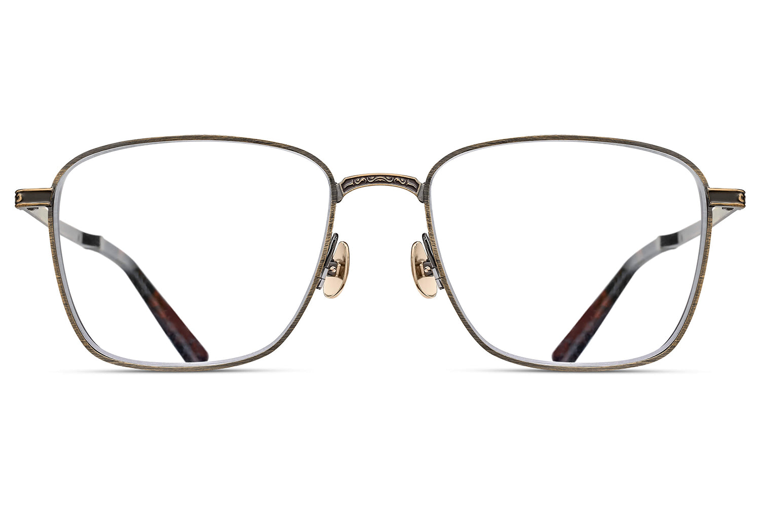 The Matsuda Eyewear // M3160 is a generously proportioned rectangular frame in high-grade titanium, distinguished by engraved temples and sculptural side shields that echo 1930s art deco geometry. Precious metal plating enhances the titanium construction, while hand-lacquered accents add depth and refinement. Each pair is handcrafted through over 200 meticulous steps, embodying Matsuda's fusion of architectural inspiration and Japanese artisanship. Includes Matsuda box, case, and cleaning cloth.