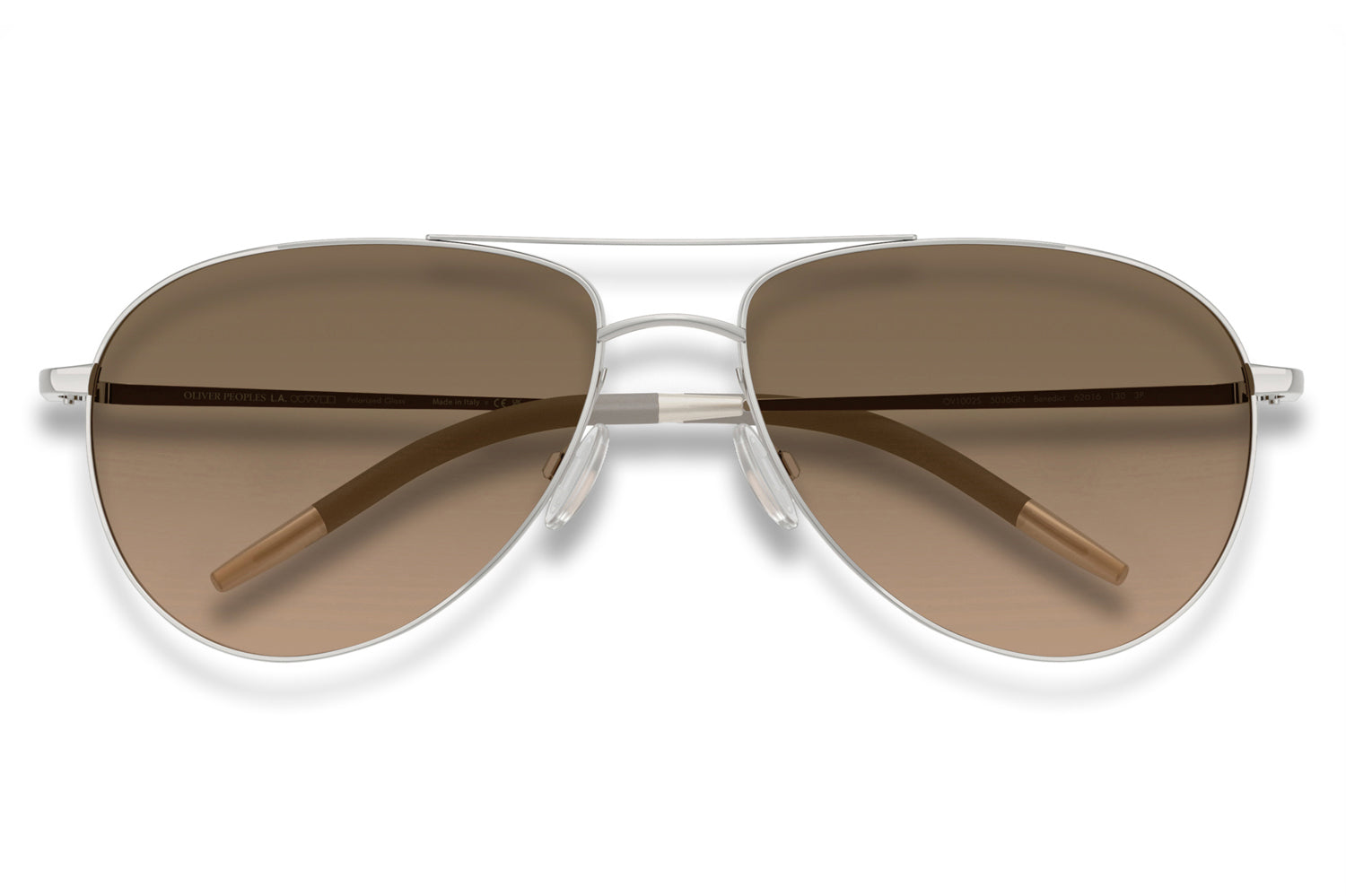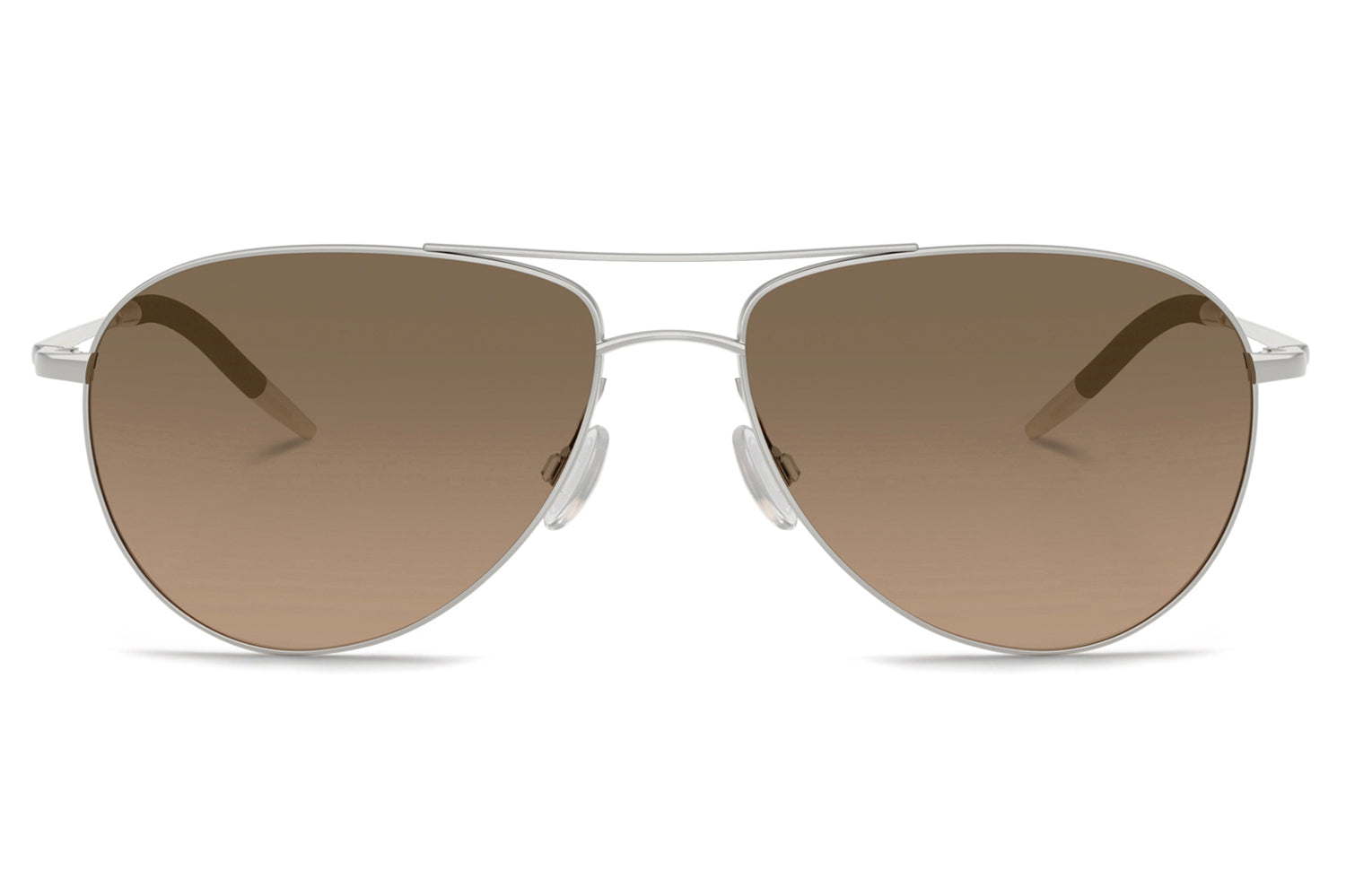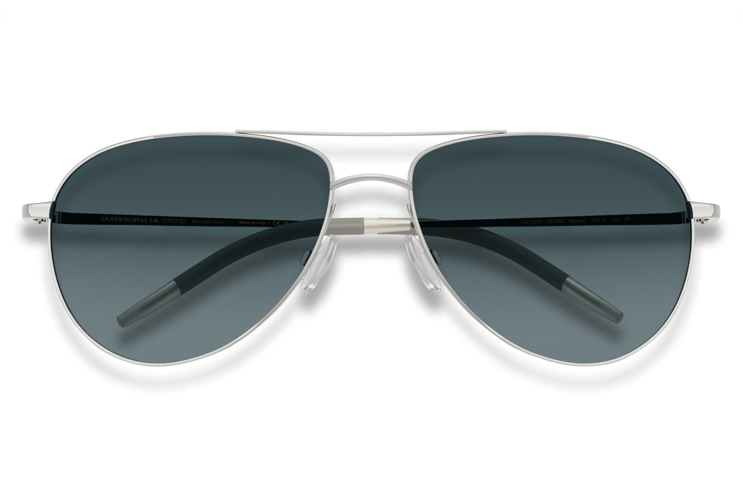 The Oliver Peoples // Benedict (OV1002S) is a classic aviator icon with a sophisticated double-bridge. Other details include 3-barrel hinges for added durability and silicone nose pads and temple tips for grip. Optional Photochromic VFX lenses darken when exposed to direct sunlight. Handmade in Italy. Includes Oliver Peoples box, case, cleaning cloth, and 1-year manufacturer warranty.