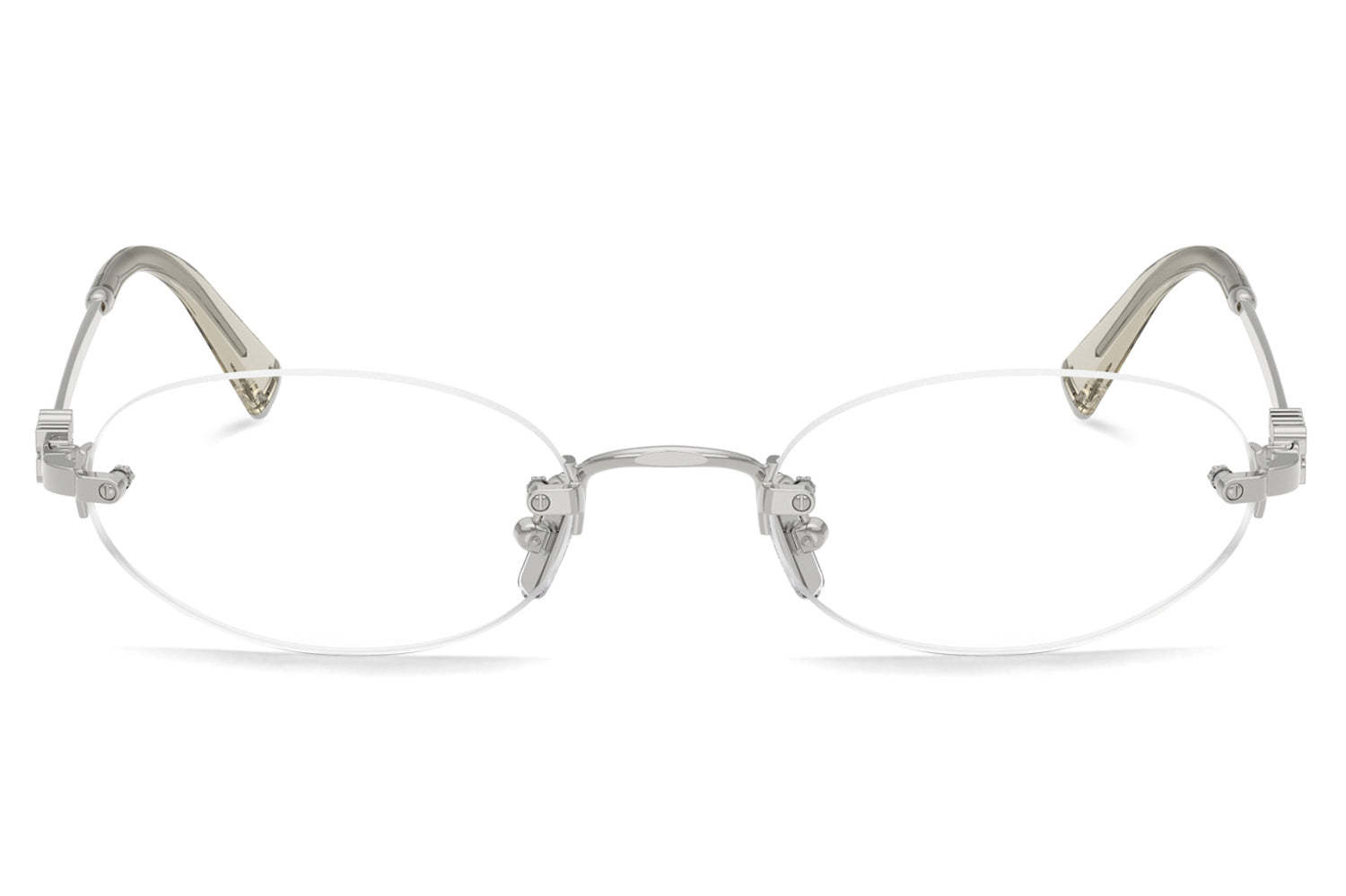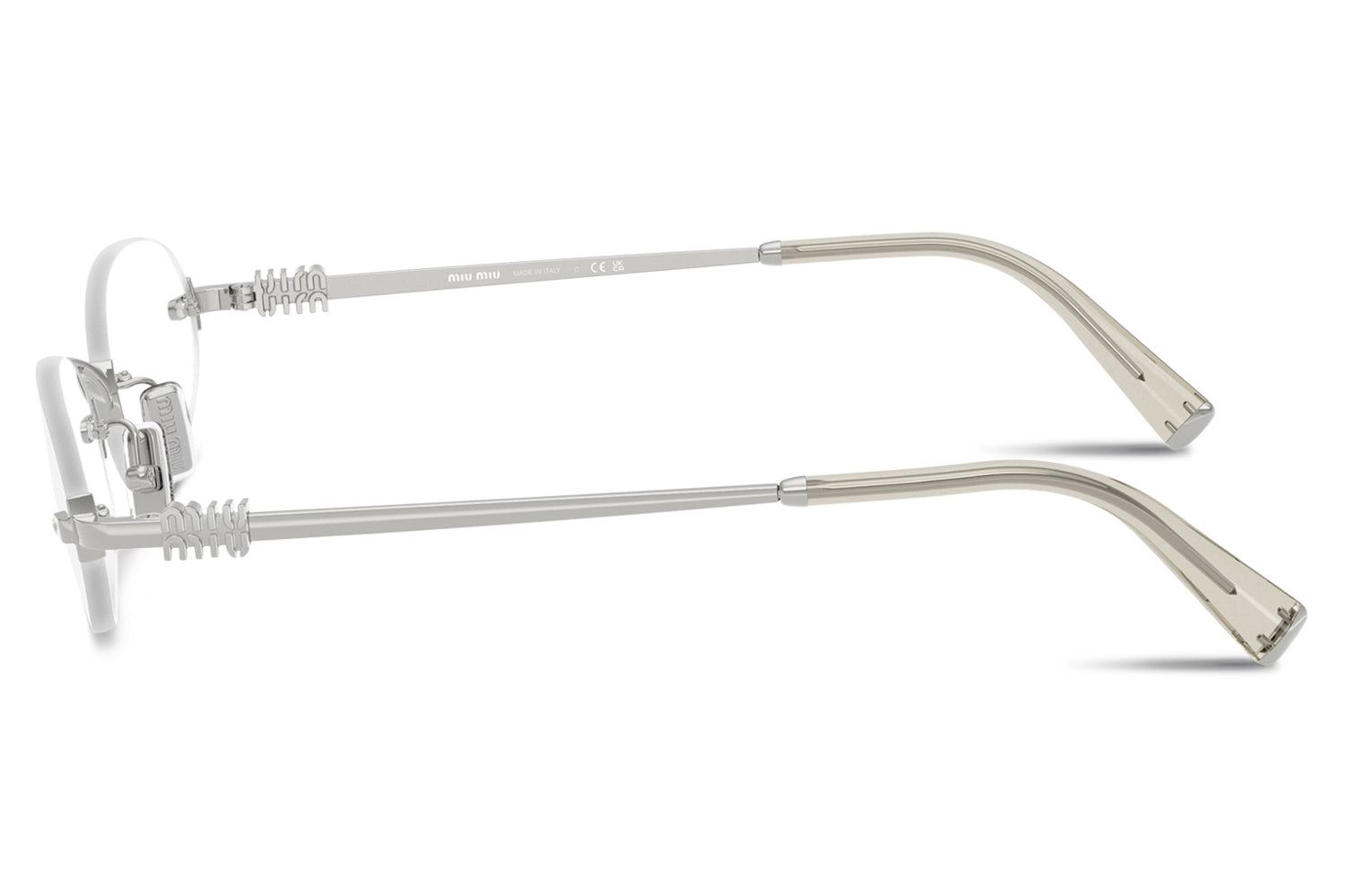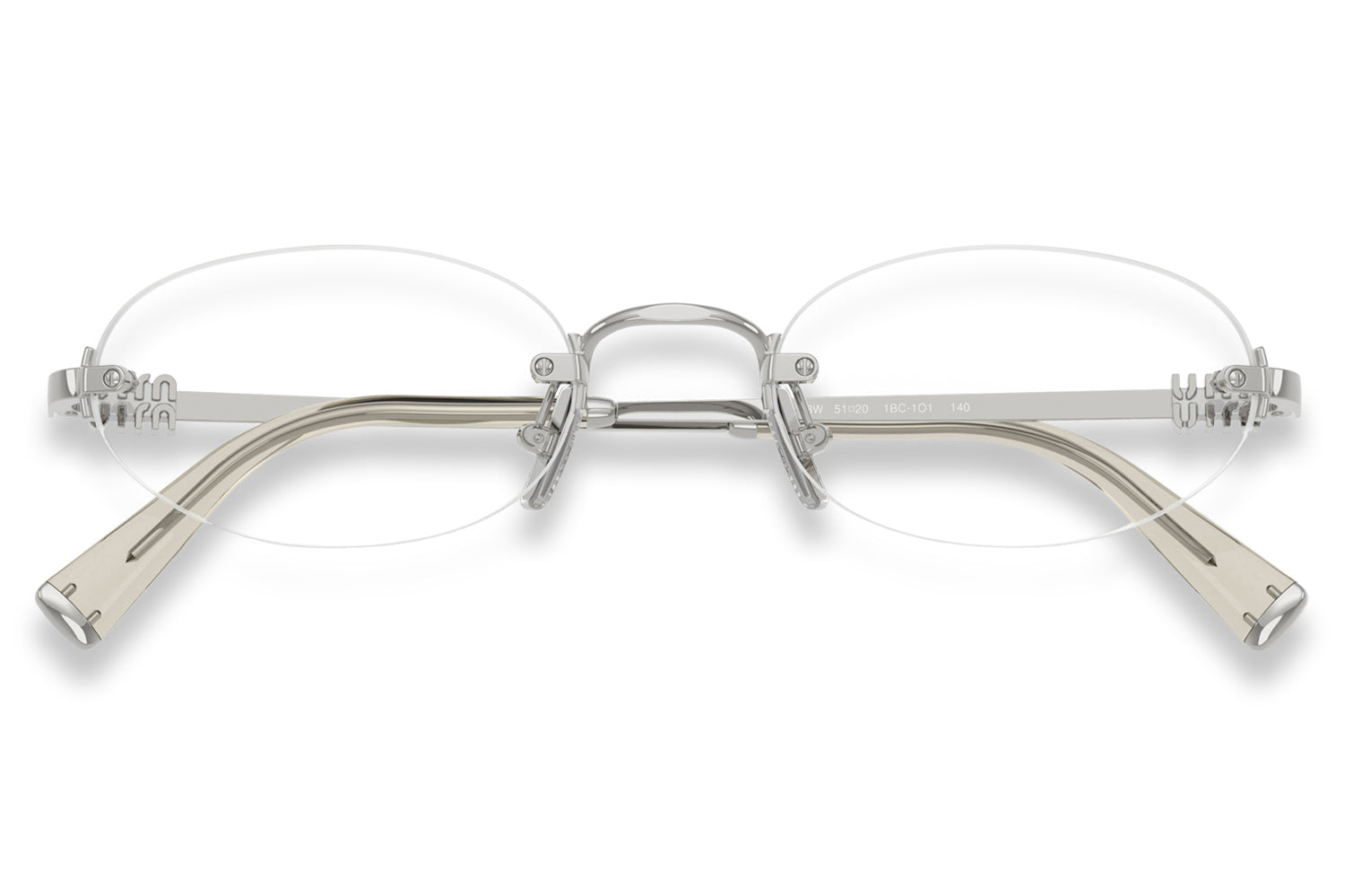The Miu Miu – MU 53WV optical frames embody refined minimalism with a sleek rimless design and softly contoured oval lenses. Born from Miu Miu’s modern Italian fashion heritage, this lightweight style features thin metal temples accented by subtle vertical logo detailing, polished metal end caps, and colorful acetate tips. Available with elegant color accents on the bridge and temples, these designer optical frames blend delicacy with sophistication, perfect for wearers seeking understated luxury and effortless everyday elegance. Comes complete with a Miu Miu box, protective case, cleaning cloth, and a 1-year manufacturer’s warranty.