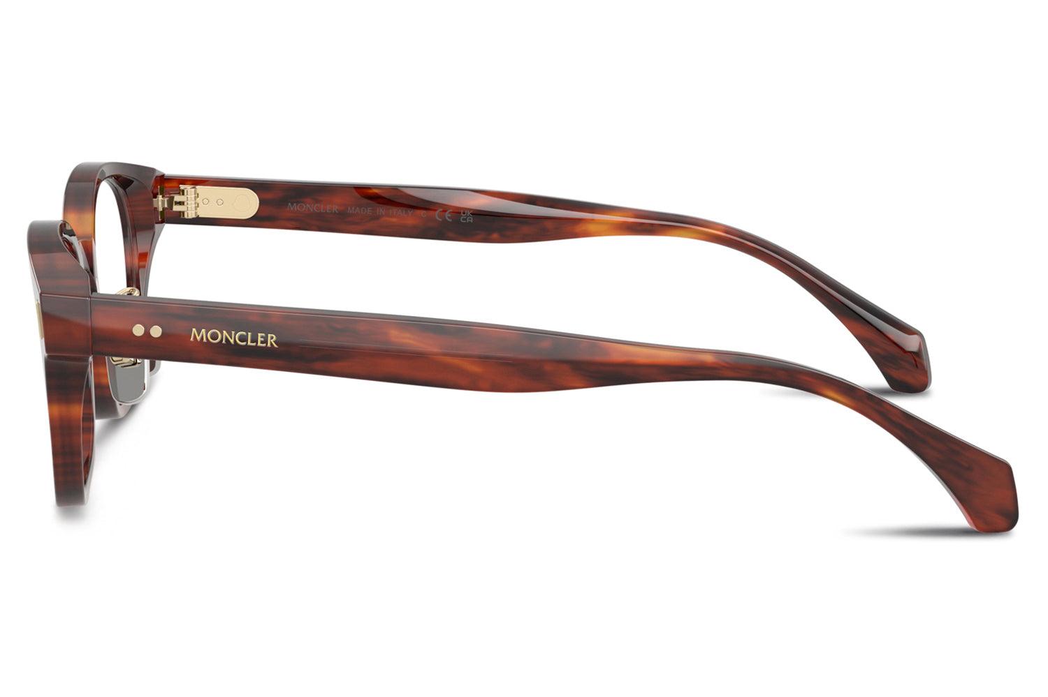 The Moncler - ME2021D merges alpine precision with metropolitan elegance in a panthos acetate frame featuring low bridge fit and adjustable titanium gooseneck nose pads for personalized comfort. Born from Moncler's technical heritage, translucent colorways reveal a sleek metal core—a subtle nod to the brand's engineering prowess and meticulous attention to detail. Custom-designed hinges featuring Moncler's distinctive logo shape impart quiet sophistication and refined craftsmanship. These designer optical frames deliver all-day wearability across diverse face shapes with adjustable fit technology. Perfect for those seeking versatile eyewear that blends functional innovation with understated elegance. Includes Moncler pouch, cleaning cloth, and 1-year manufacturer warranty.