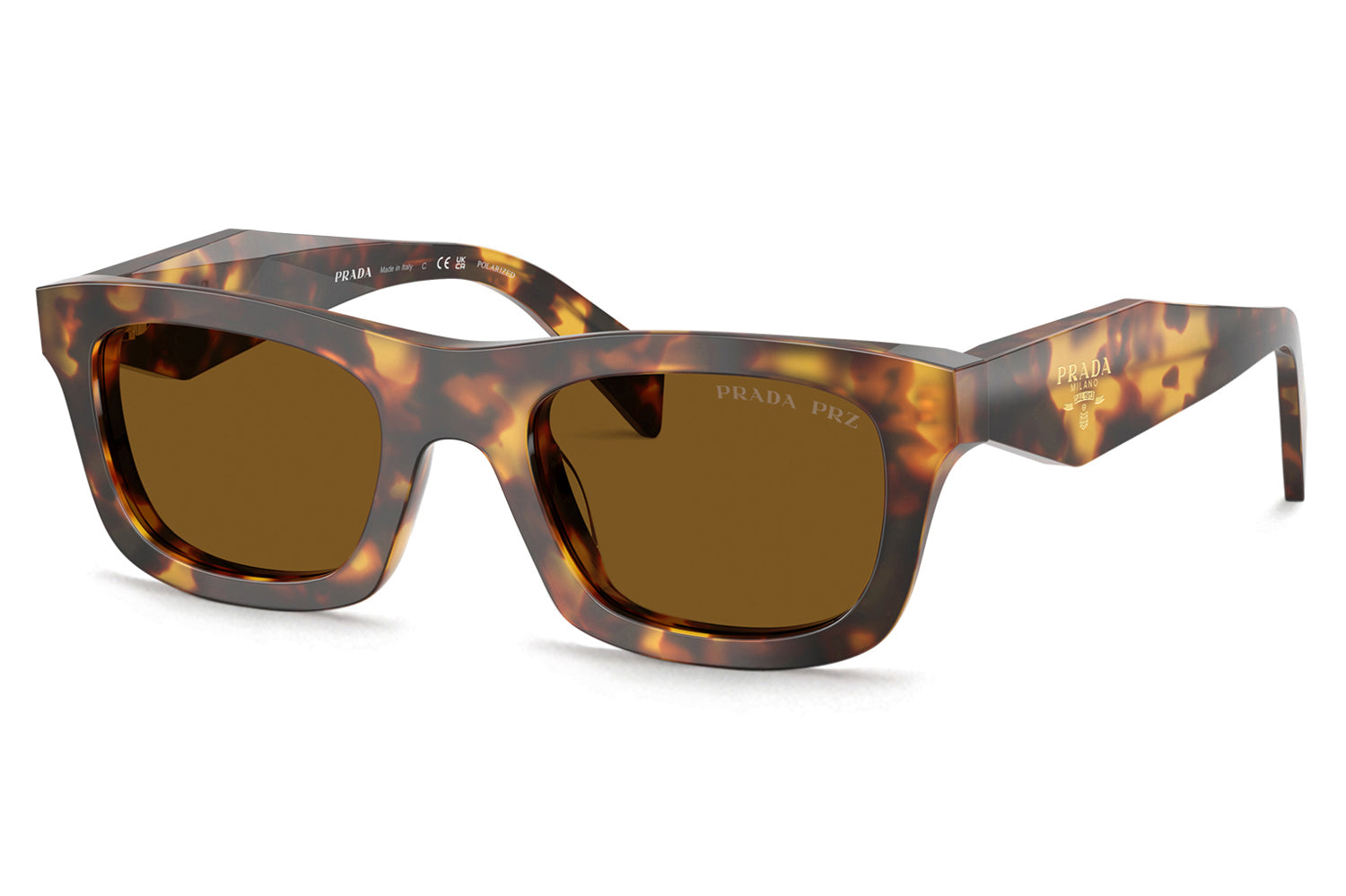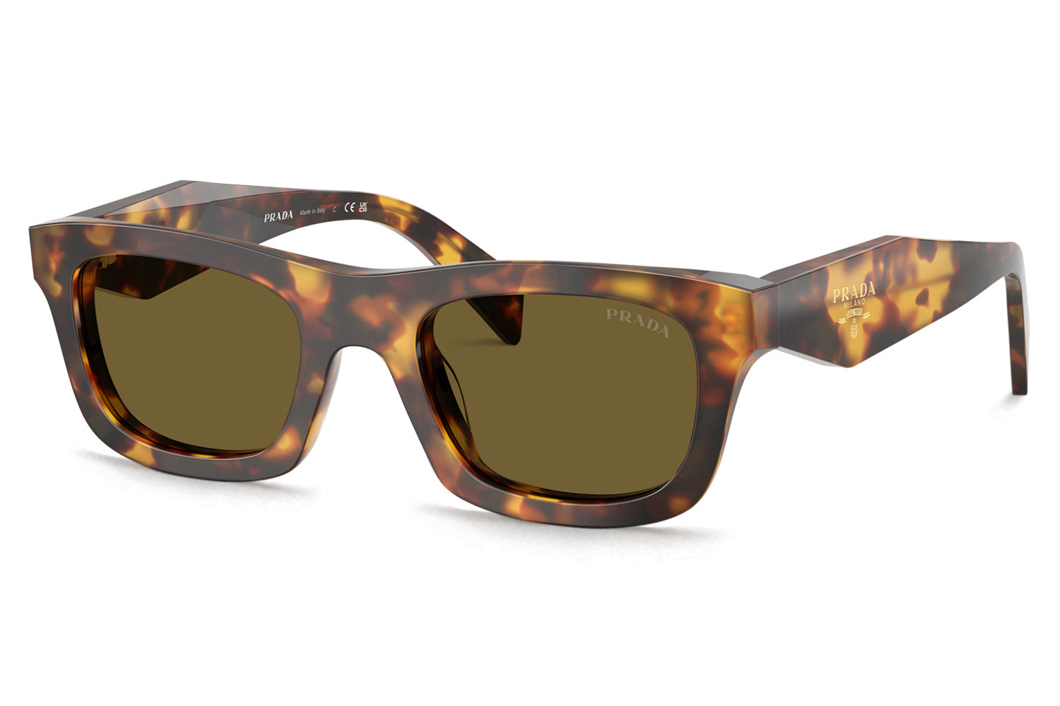 The Prada - PR C06SF (Low Bridge Fit) sunglasses are in a clean, refined rectangular silhouette with a modern, structured profile and a flatter nose bridge for improved stability. Born from Prada’s refined yet forward-thinking aesthetic, the design features a new temple construction with faceted inner surfaces contrasting a smooth, flat exterior, accented by a laser-etched, enamel-filled Prada logo. Crafted from premium acetate, the frame ensures comfortable all-day wear, especially for those who struggle with slipping or gaps at the nose. Available in classic gray and brown lenses, including a polarized brown option with honey tortoise. These designer sunglasses blend timeless elegance with contemporary detailing and a tailored fit. Perfect for individuals with low or flatter nose bridges seeking a polished, secure, and effortless luxury look. Comes complete with a Prada box, protective case, cleaning cloth, and a 1-year manufacturer’s warranty.