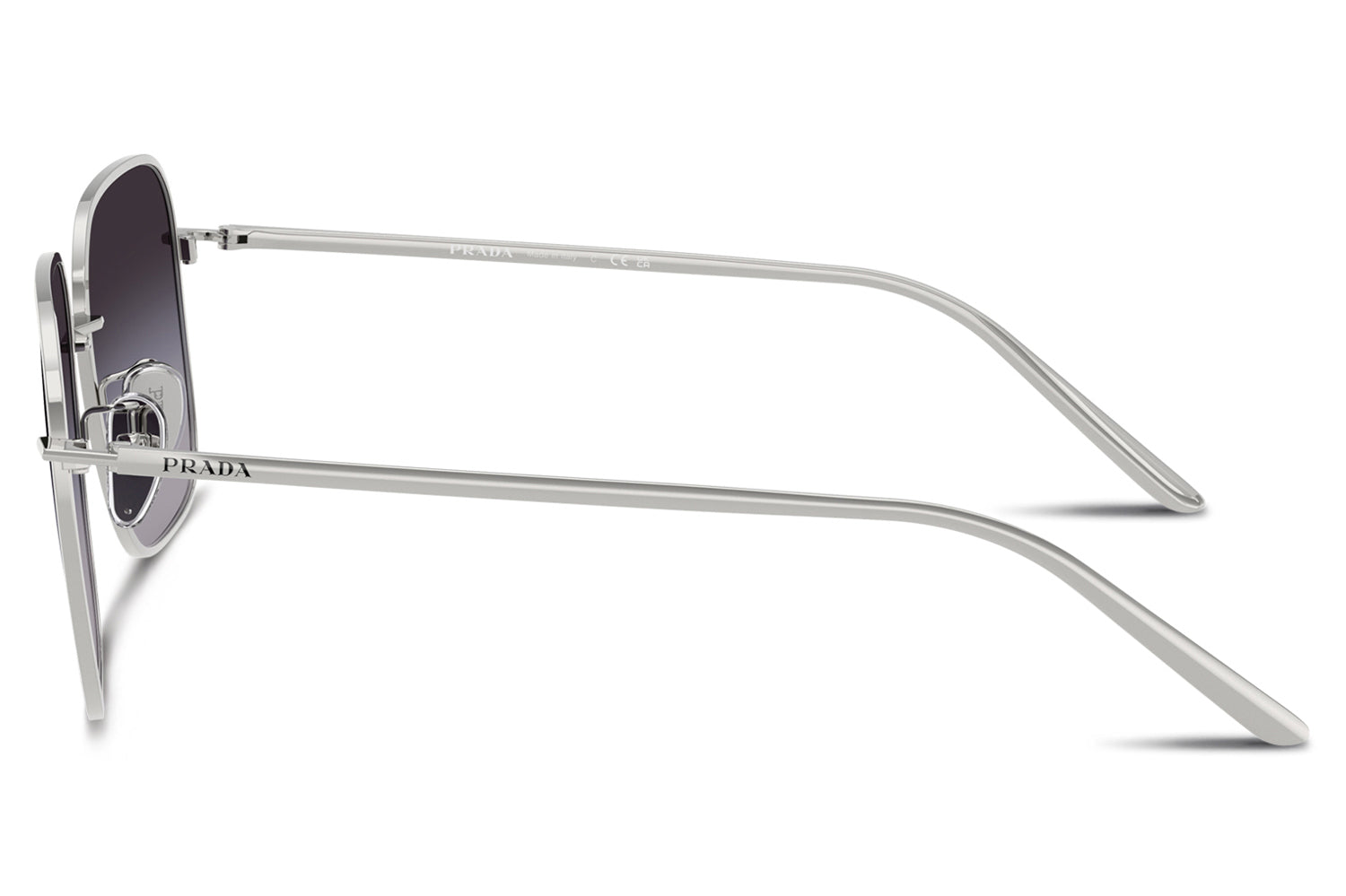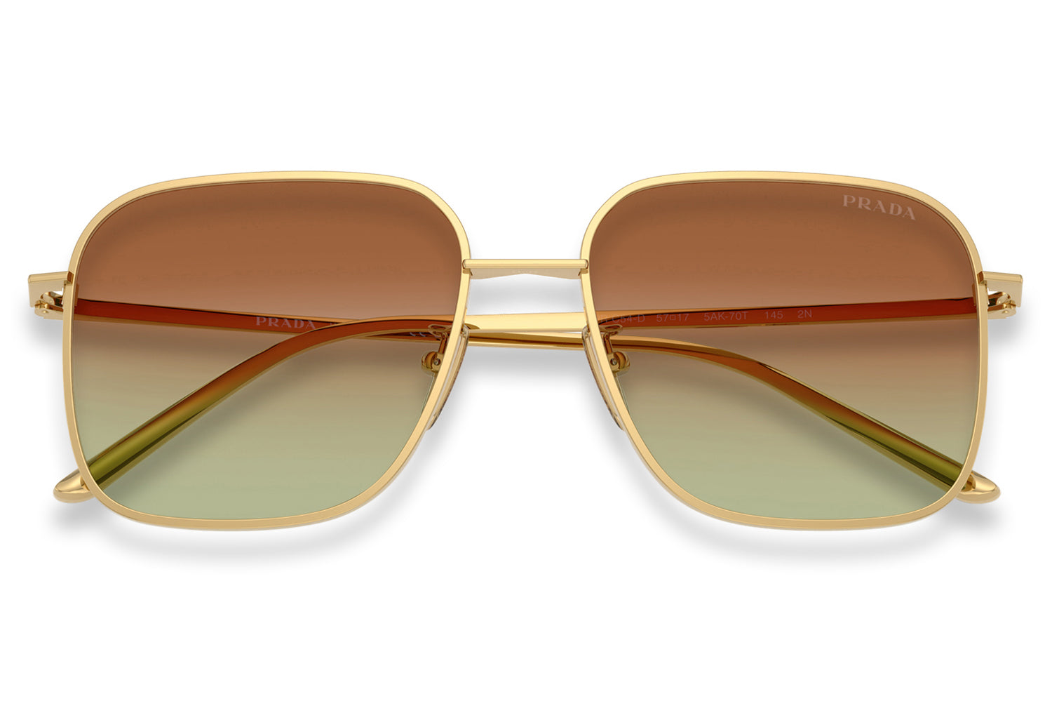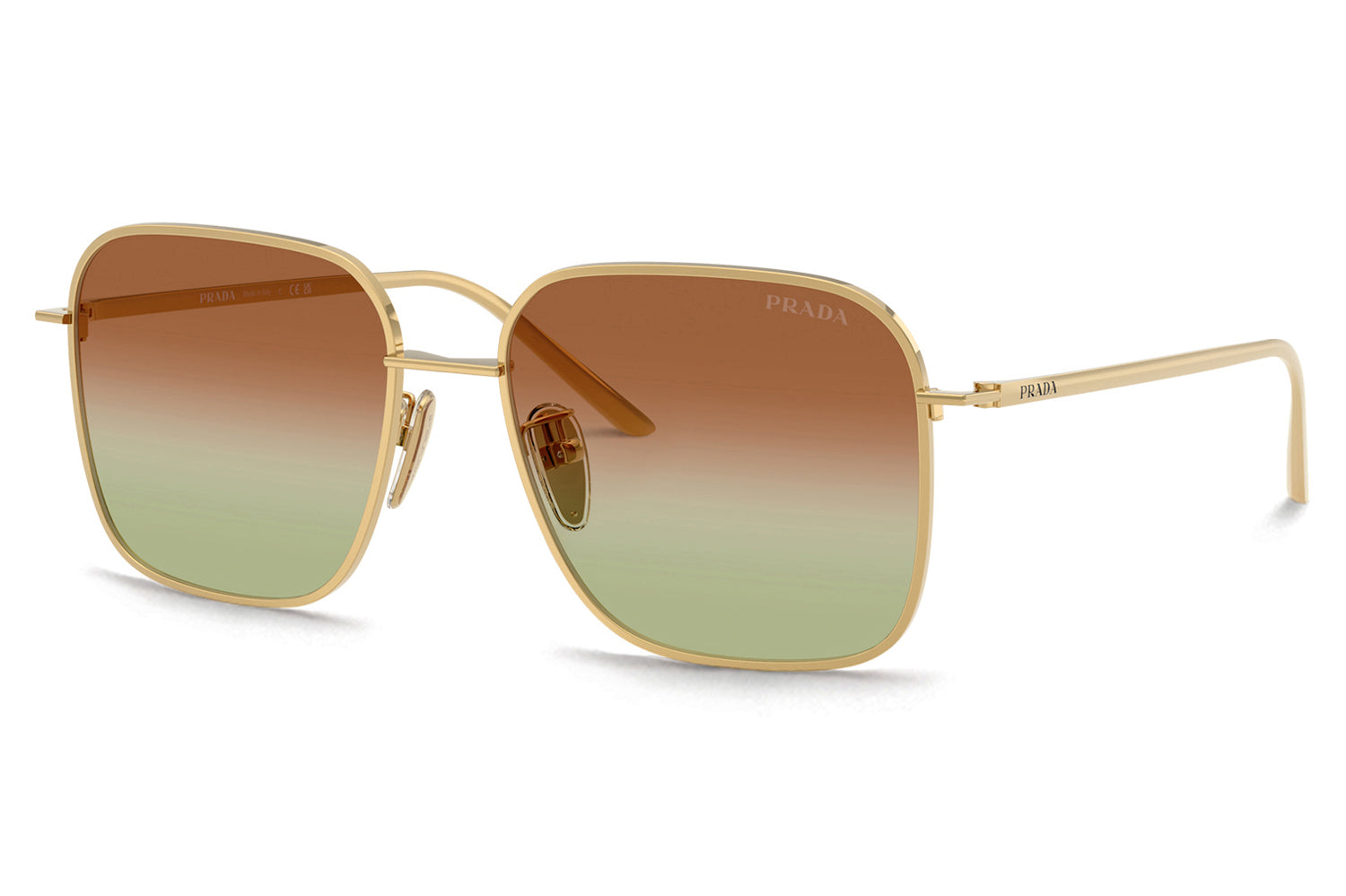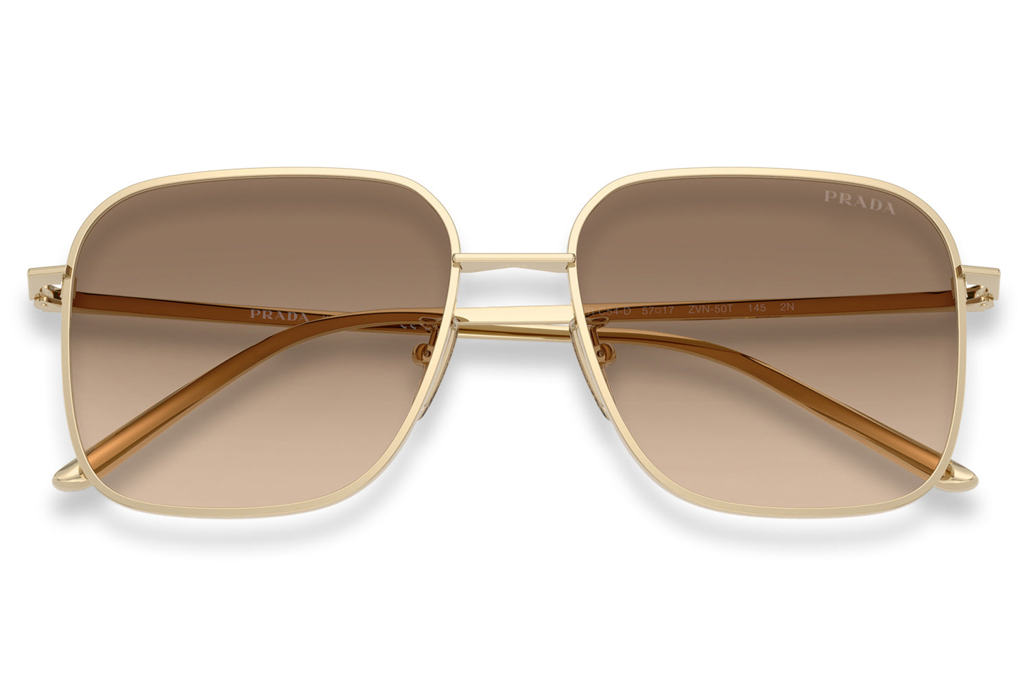 The Prada - PR C54SD is an oversized square metal pair of sunglasses that are defined by bold volumes and clean architectural lines with a flatter bridge designed for improved comfort and stability. Born from Prada’s modern design language, the frame features a straight bridge, sleek temples, a minimal hinge, and a lasered Prada logo for refined precision. Crafted from lightweight metal, it ensures balanced wear and confident structure. Available in silver, gold, and pale gold frames paired with sophisticated solid and gradient lenses. These designer sunglasses blend strong visual impact with tailored comfort. Comes complete with a Prada box, protective case, cleaning cloth, and a 1-year manufacturer’s warranty.