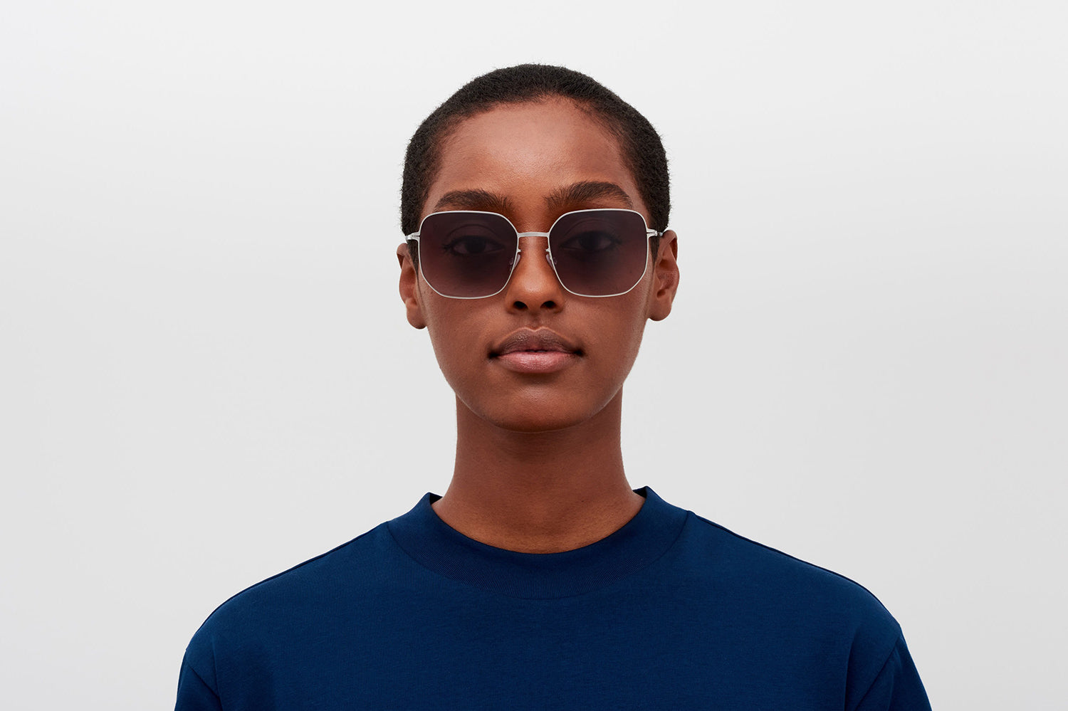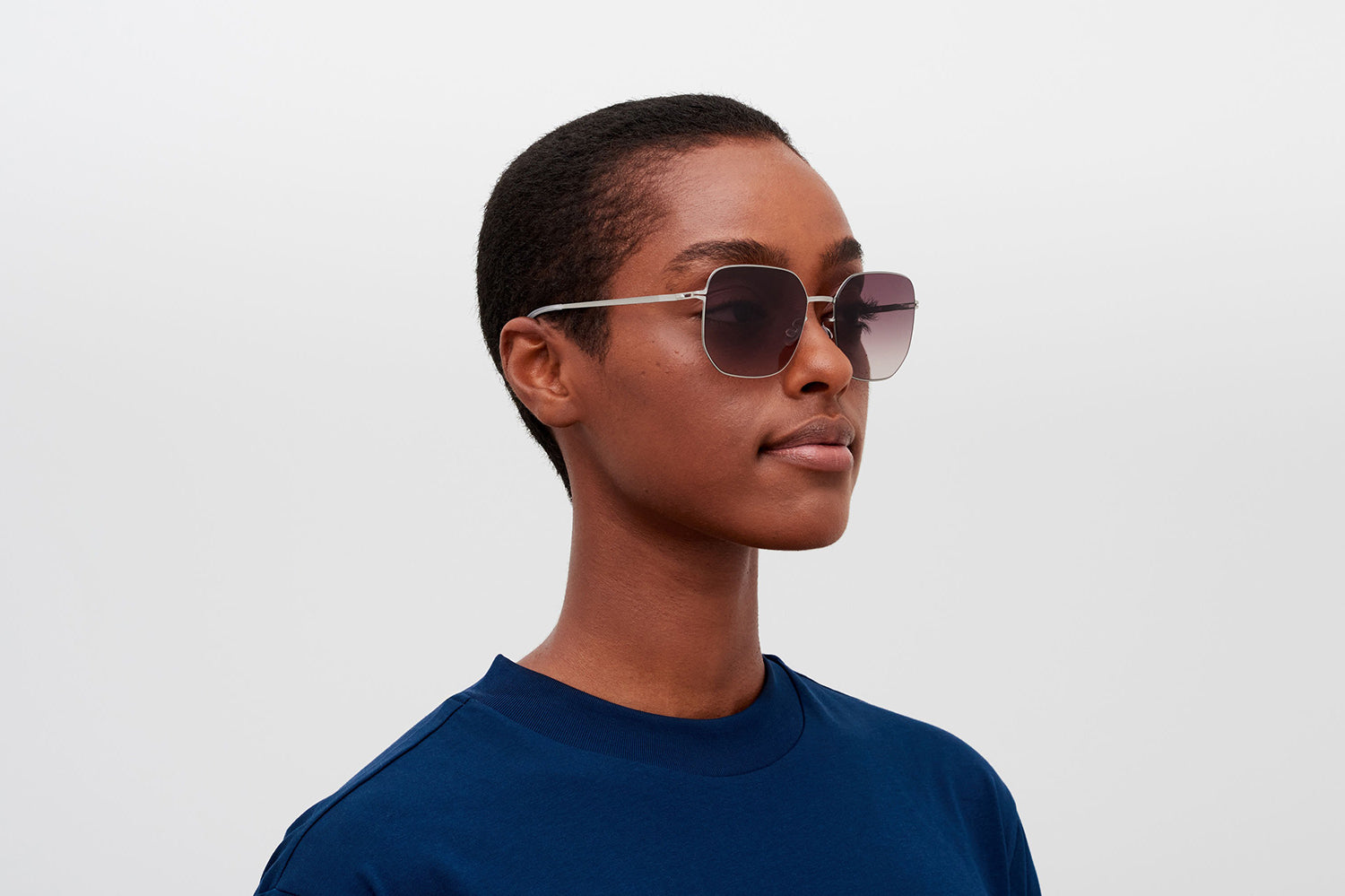The MYKITA // Indira sunglasses from the iconic LITE collection present an oversized square silhouette with graceful proportions, expertly crafted from circular stainless steel. MYKITA's patented spiral hinge, individually adjustable silicone temple tips, and precision nose pads deliver exceptional comfort and a personalized fit. Tinted lenses provide complete UVA/UVB protection with anti-reflective inner coating. The MYKITA LITE collection pioneered ultra-thin metal construction, achieving delicate visual lightness with enduring structural integrity from Berlin's independent manufacture. Includes MYKITA cleaning cloth, case, and 1-year manufacturer warranty.