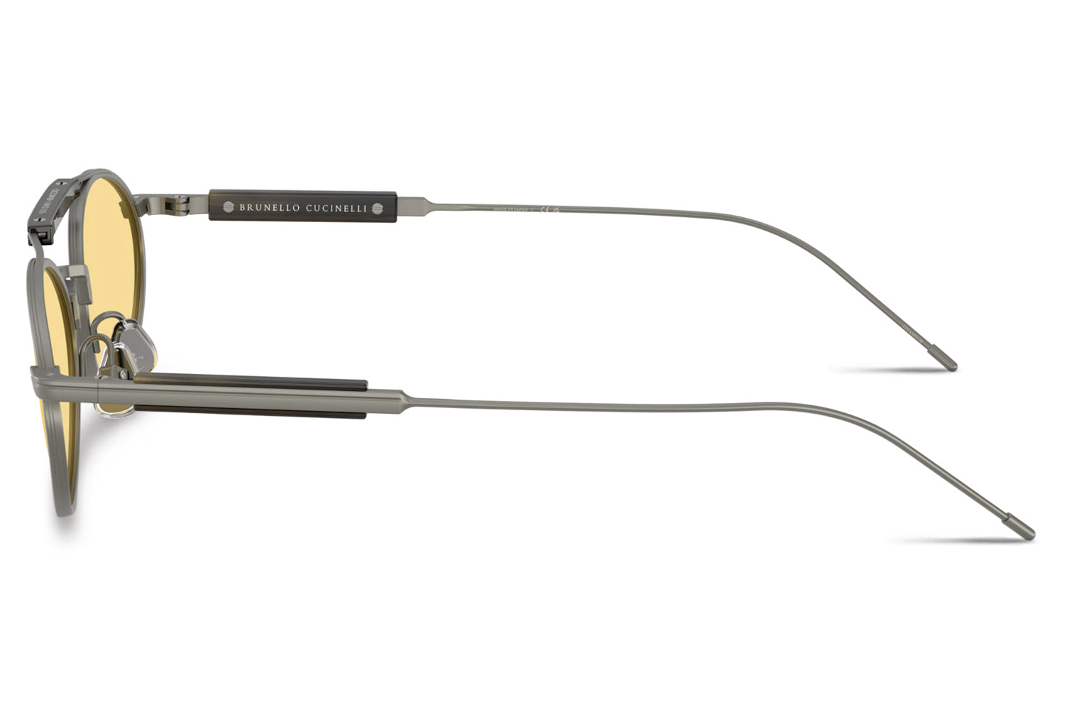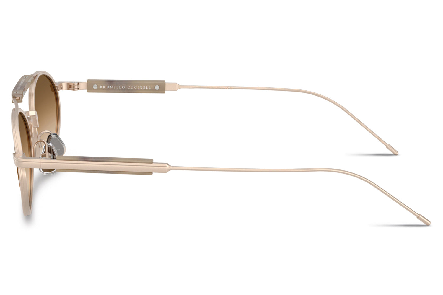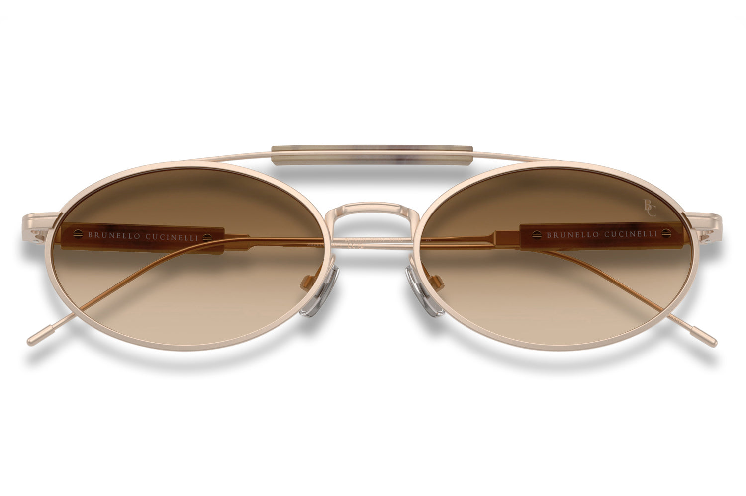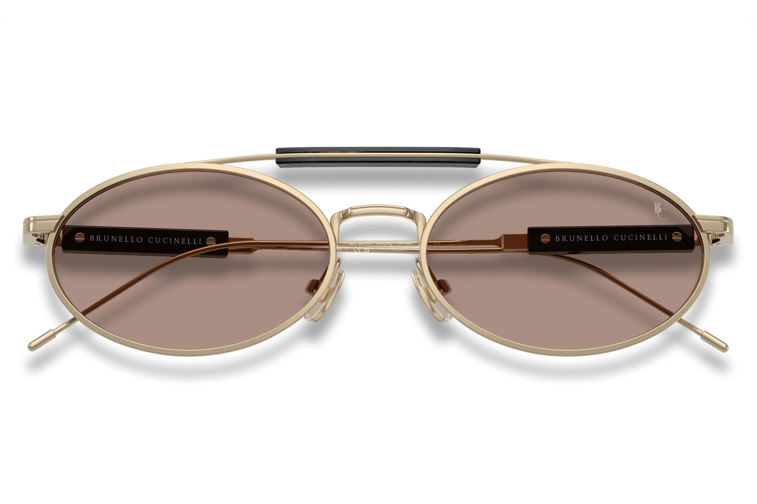 The Brunello Cucinelli - BC2013ST effortlessly showcases the sleek resilience of titanium through its elegant narrow oval silhouette. Handmade in Japan, this design features delicate acetate inserts or refined natural horn inlays on the temples and brow bar for elevated sophistication. Vibrant lenses enhance the distinctive profile, while subtle 'BC' engravings appear on the left lens and customized nose pads. Another logo graces the inside of the temple insert—where Japanese precision meets Italian artistry in sunglasses celebrating material contrasts and meticulous detailing. Includes Brunello Cucinelli box, hard case, soft case, cleaning cloth, and 1-year manufacturer warranty.
