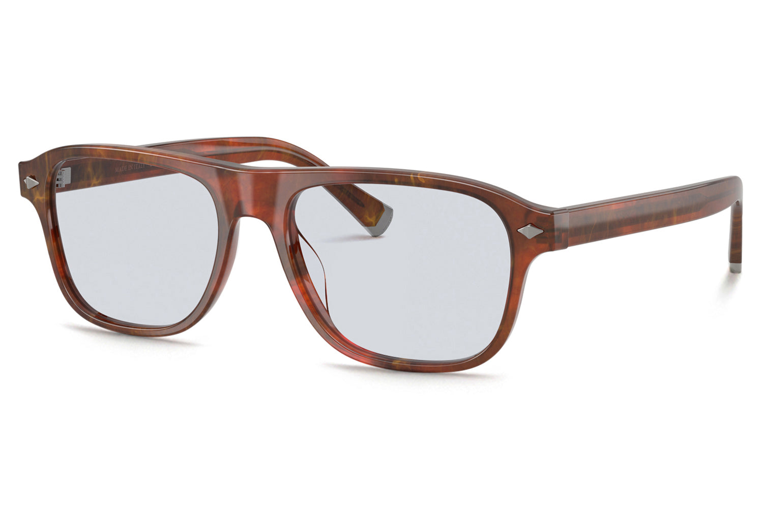 The Brunello Cucinelli - BC3014 embodies an uncompromising pursuit of beauty and quality through its vintage-meets-contemporary acetate pilot silhouette. Handmade in Italy, this optical frame features a distinctive flat brow line and filigree engraving on the customized temple core wire and tips, reinterpreting heraldic coat of arms design. Metal detailing adorns the front and temple tips, with the inner core wire visible on transparent colorways. A sophisticated fusion of Italian craftsmanship and timeless elegance—where heritage motifs meet modern refinement. Includes Brunello Cucinelli box, hard case, soft case, cleaning cloth, and 1-year manufacturer warranty.