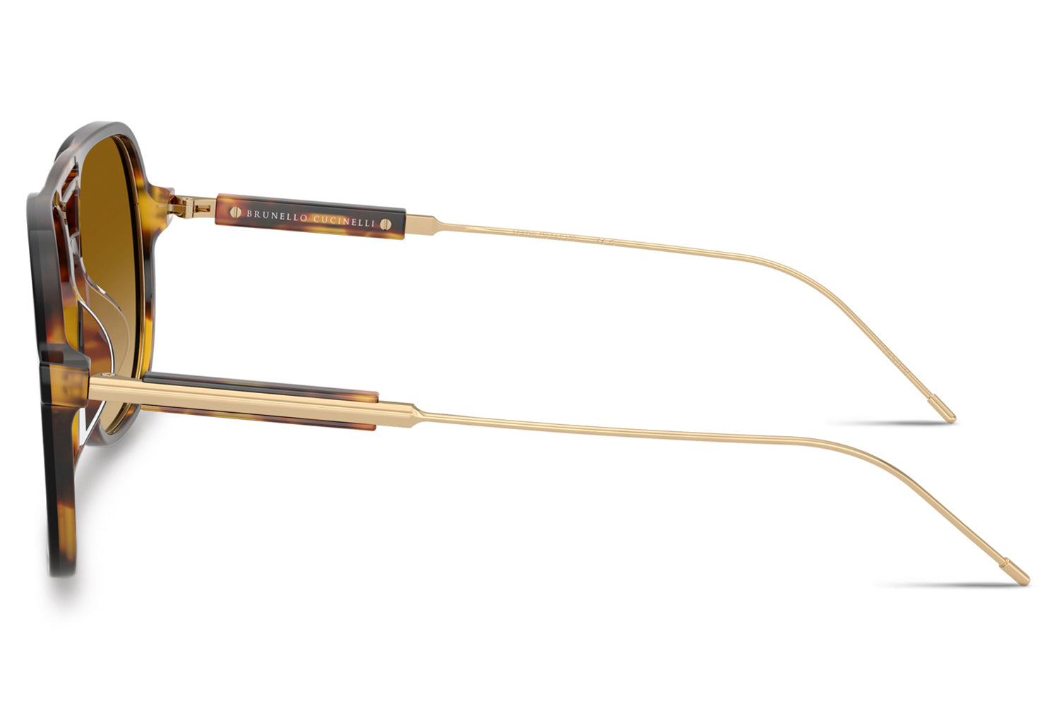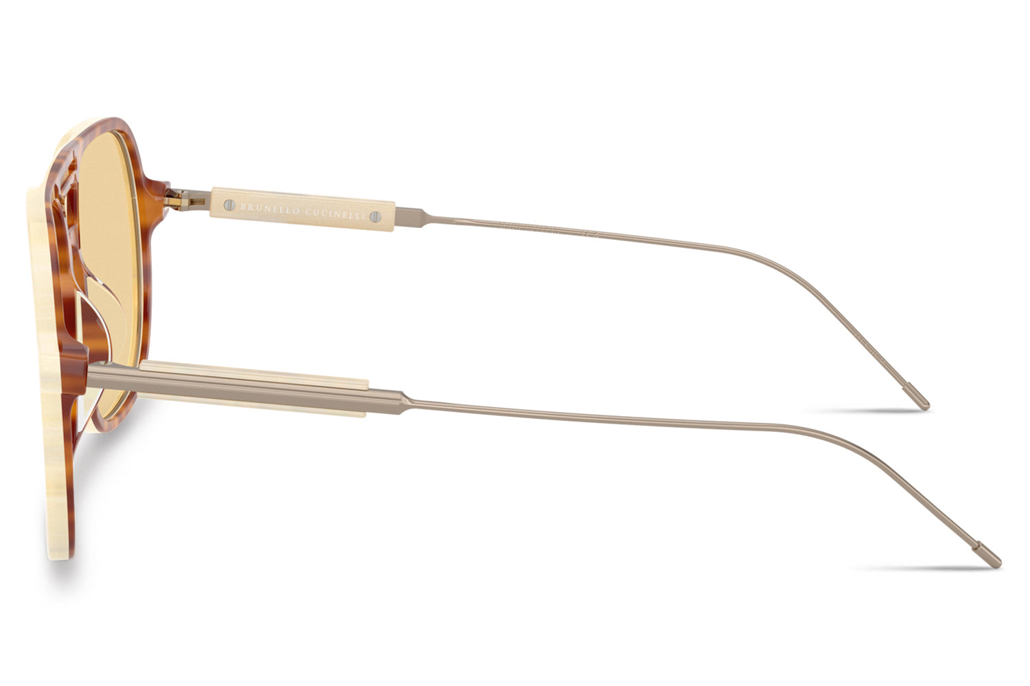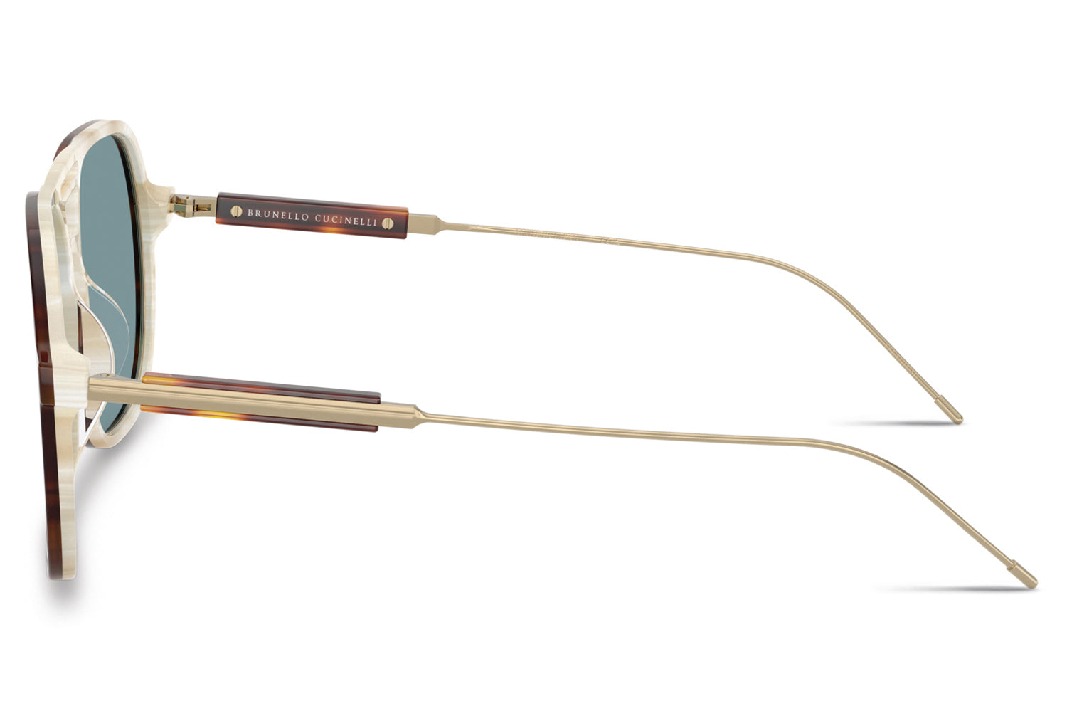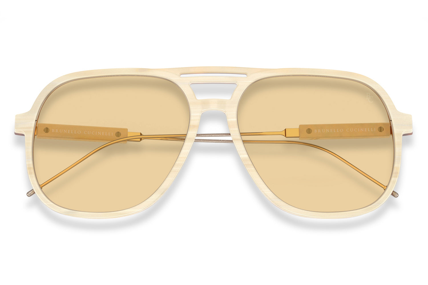 The Brunello Cucinelli - BC4022S showcases the harmony of Japanese craftsmanship through a sophisticated blend of acetate and titanium. A refined pilot silhouette features titanium inner rims, a sculptural triple bridge, and precise milling that reveals dual acetate layers on the front. Elegant hues, including an 18k gold-plated option, pair with subtle BC lens branding and crest-inspired customized hinges for a distinctly elevated Brunello Cucinelli design. Includes Brunello Cucinelli box, hard case, soft case, cleaning cloth, and 1-year manufacturer warranty.