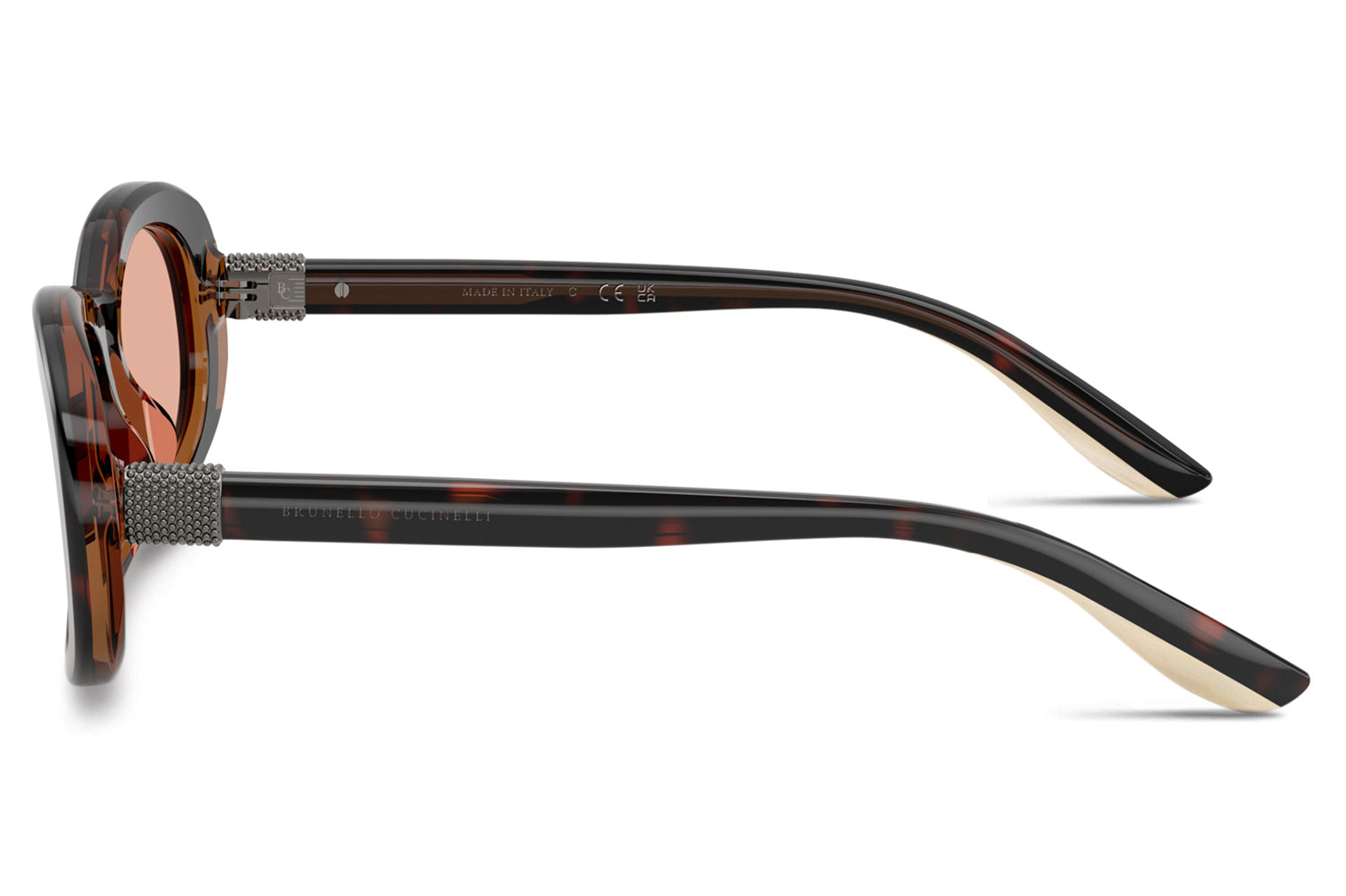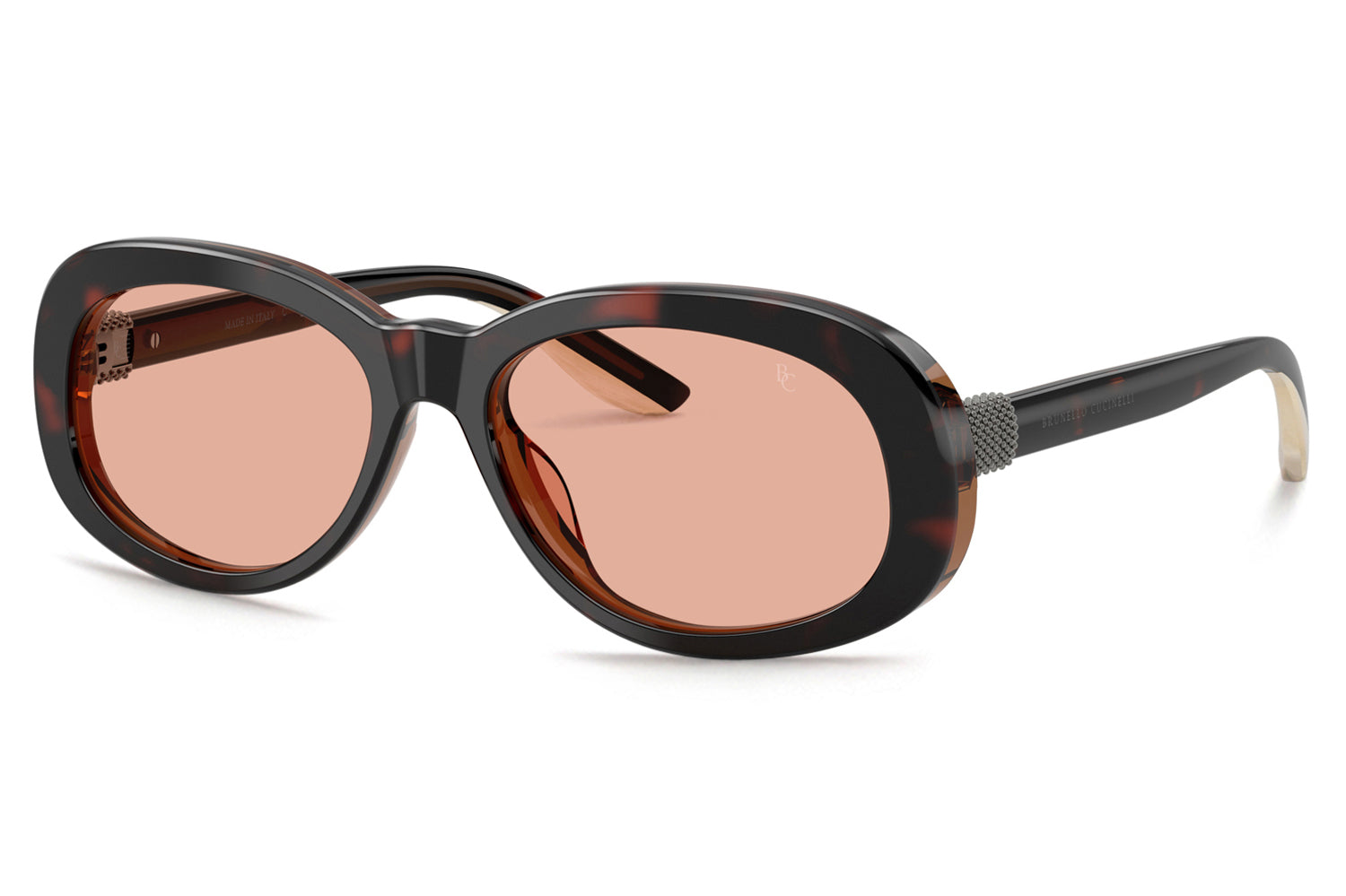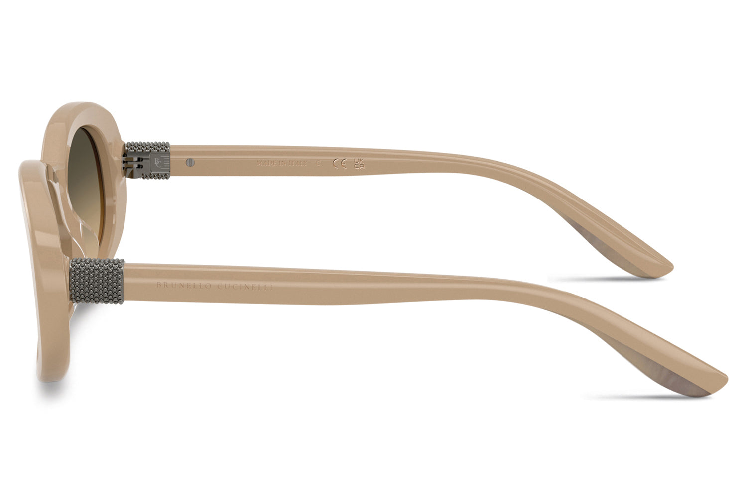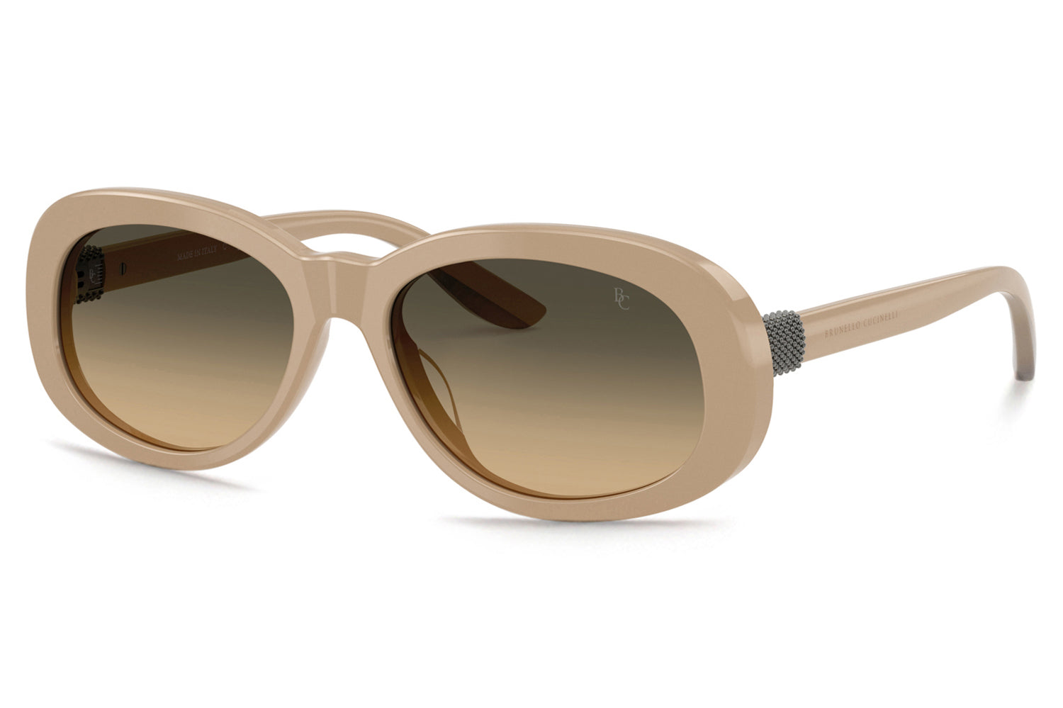 The Brunello Cucinelli - Claire (BC4021S) blends Italian craftsmanship with the refined femininity characteristic of the brand’s women’s designs. Sculpted from premium acetate, the silhouette features radiant monili temples, bonded bi-color temple tips, and discreet logos that underscore its sophistication. Barberini® glass lenses, including a polarized black option, complete the look. Thoughtful detailing and elevated color selections create a graceful, signature Brunello Cucinelli expression. Handmade in Italy. Includes Brunello Cucinelli box, hard case, soft case, cleaning cloth, and 1-year manufacturer warranty.