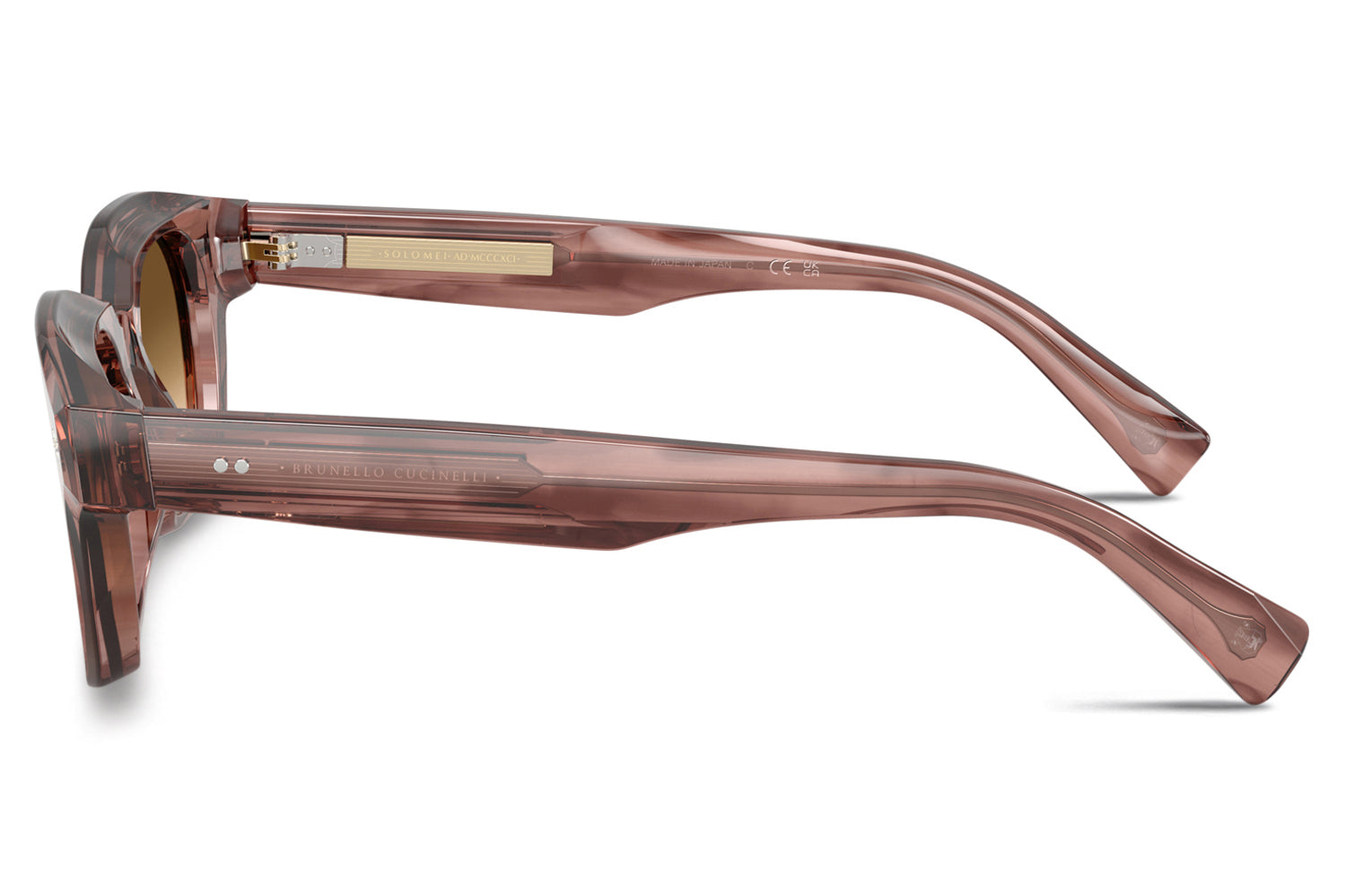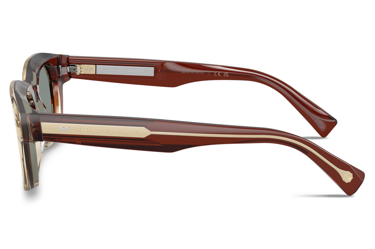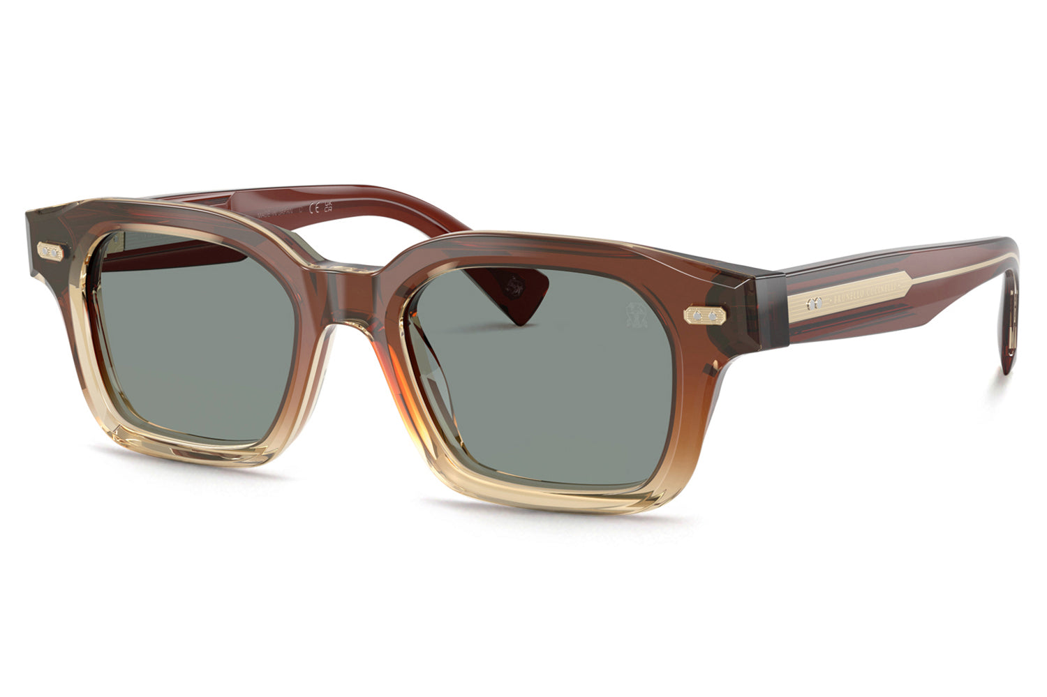 The Brunello Cucinelli - Jared (BC4018S) reflects the precision of Japanese craftsmanship through a meticulously milled acetate design paired with Barberini® Premium glass lenses. Rich colors, including the new striped vinaccia, highlight its refined aesthetic. Embedded temples reveal an intricately engraved core wire, complemented by custom hinges, temple pins, and crest-inspired front details. A sophisticated Japanese-made expression of Brunello Cucinelli’s commitment to quality and thoughtful design. Handmade in Japan. Includes Brunello Cucinelli box, hard case, soft case, cleaning cloth, and 1-year manufacturer warranty.