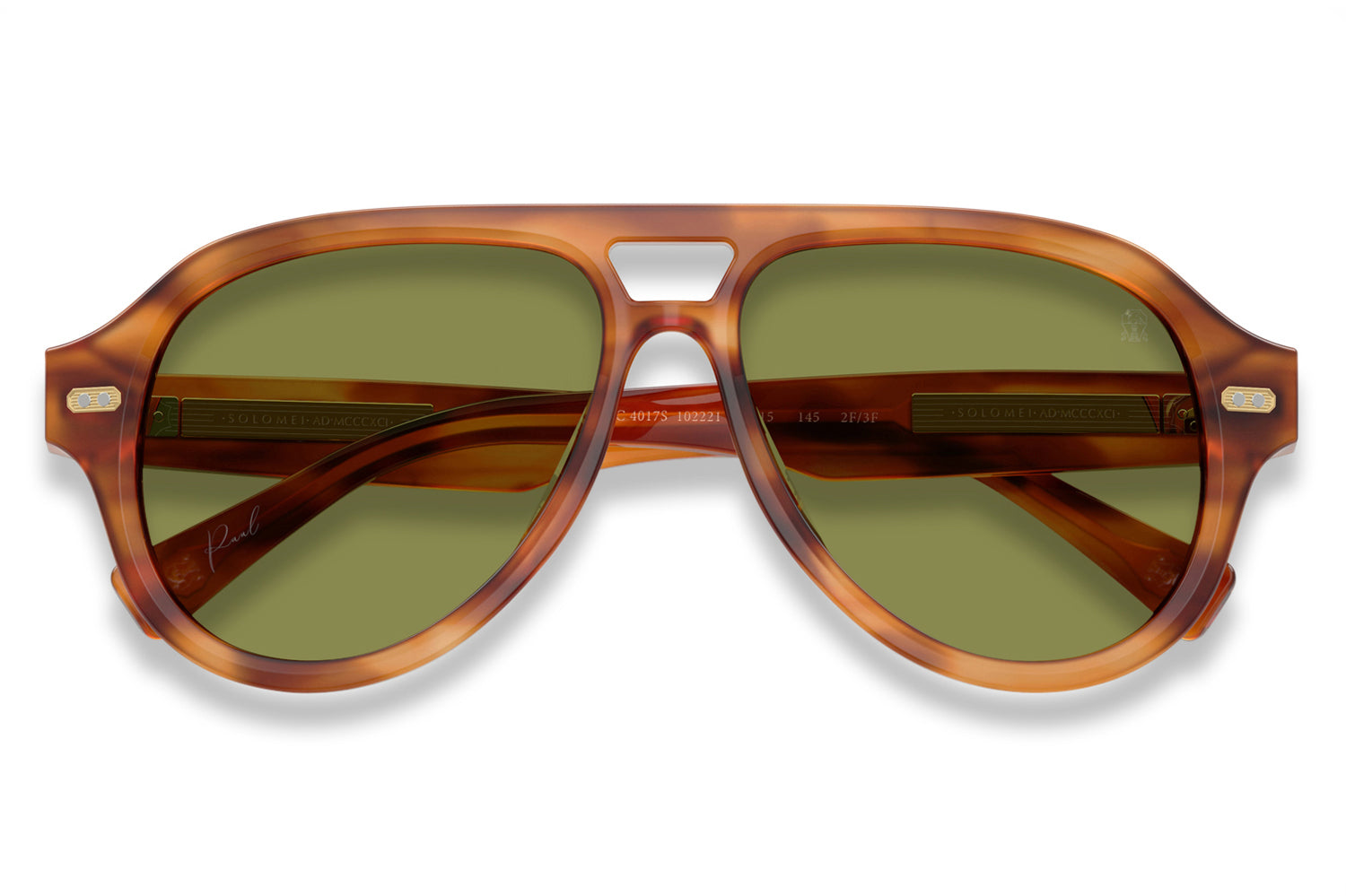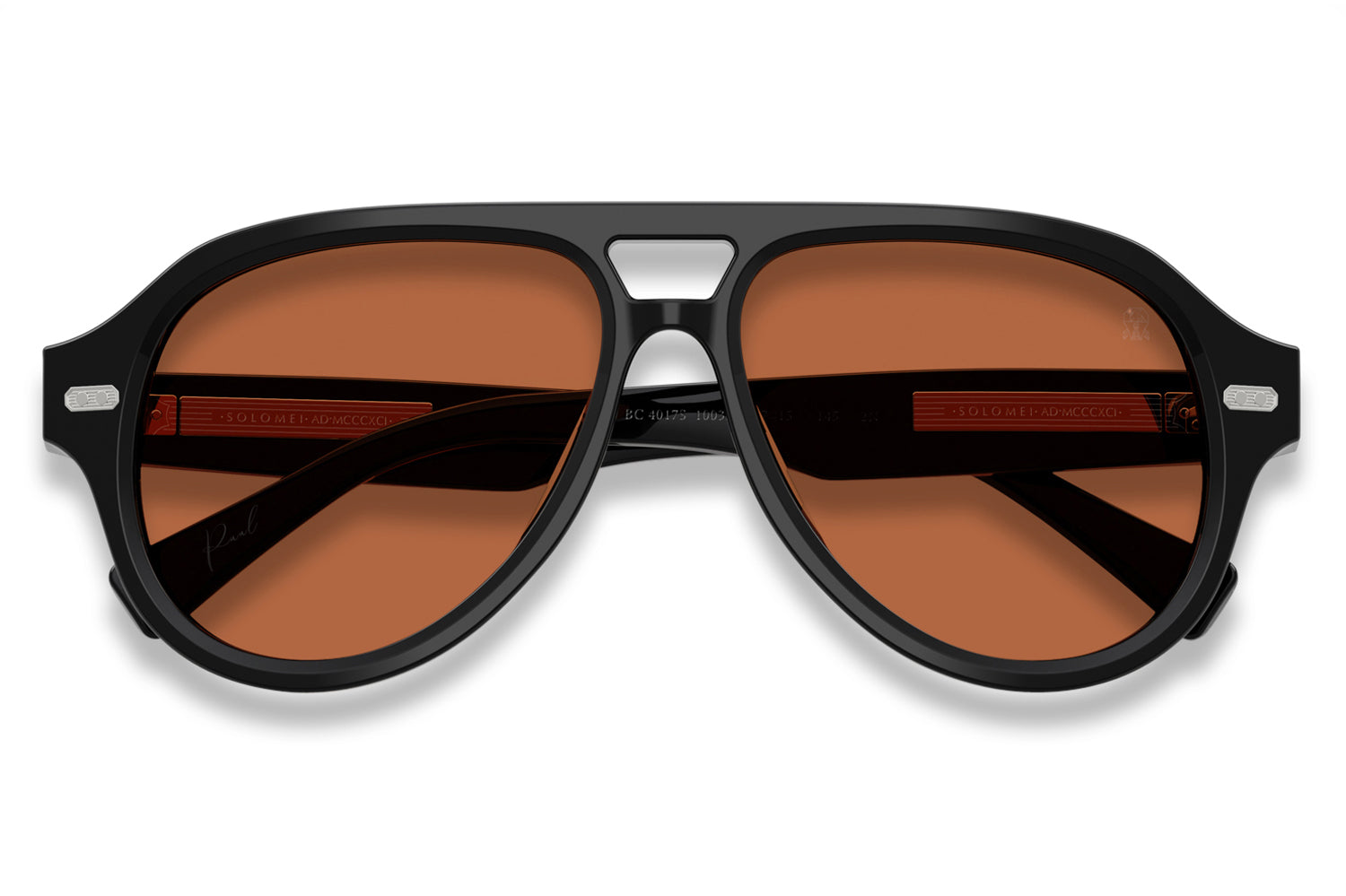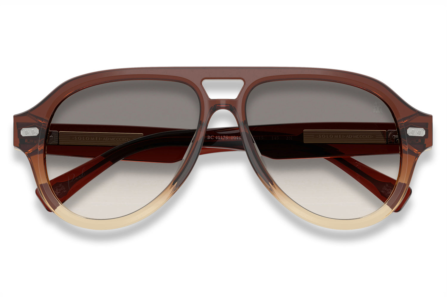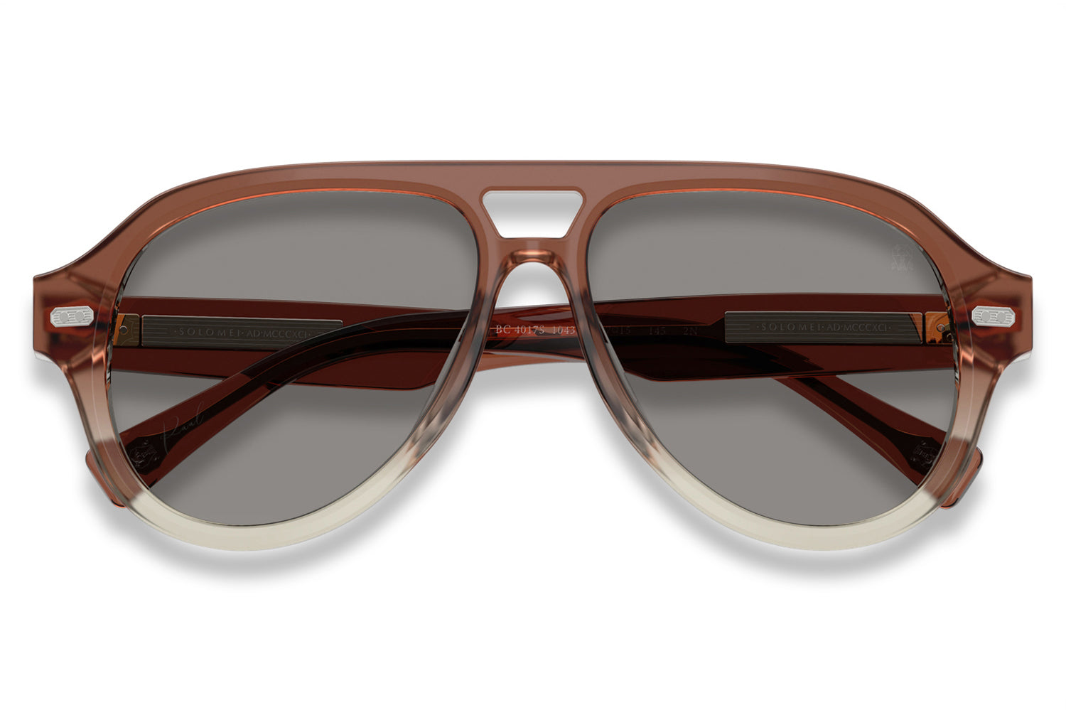 The Brunello Cucinelli - Paul (BC4017S) showcases Italian craftsmanship through a bold pilot silhouette shaped from richly milled acetate. Offered in refined dark tones, bi-color blends, and a standout honey havana with gold-plated accents, it pairs modern elegance with understated luxury. Transparent temples reveal a custom engraved core wire, while refined lens options including green Transitions™ complete this sophisticated expression of Brunello Cucinelli design. Handmade in Italy. Includes Brunello Cucinelli box, hard case, soft case, cleaning cloth, and 1-year manufacturer warranty.
