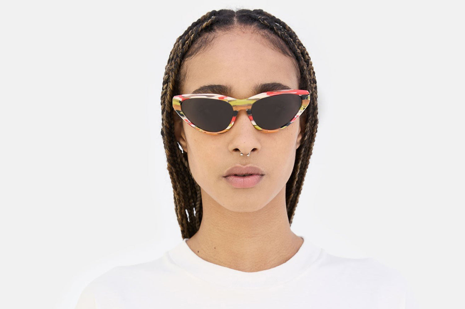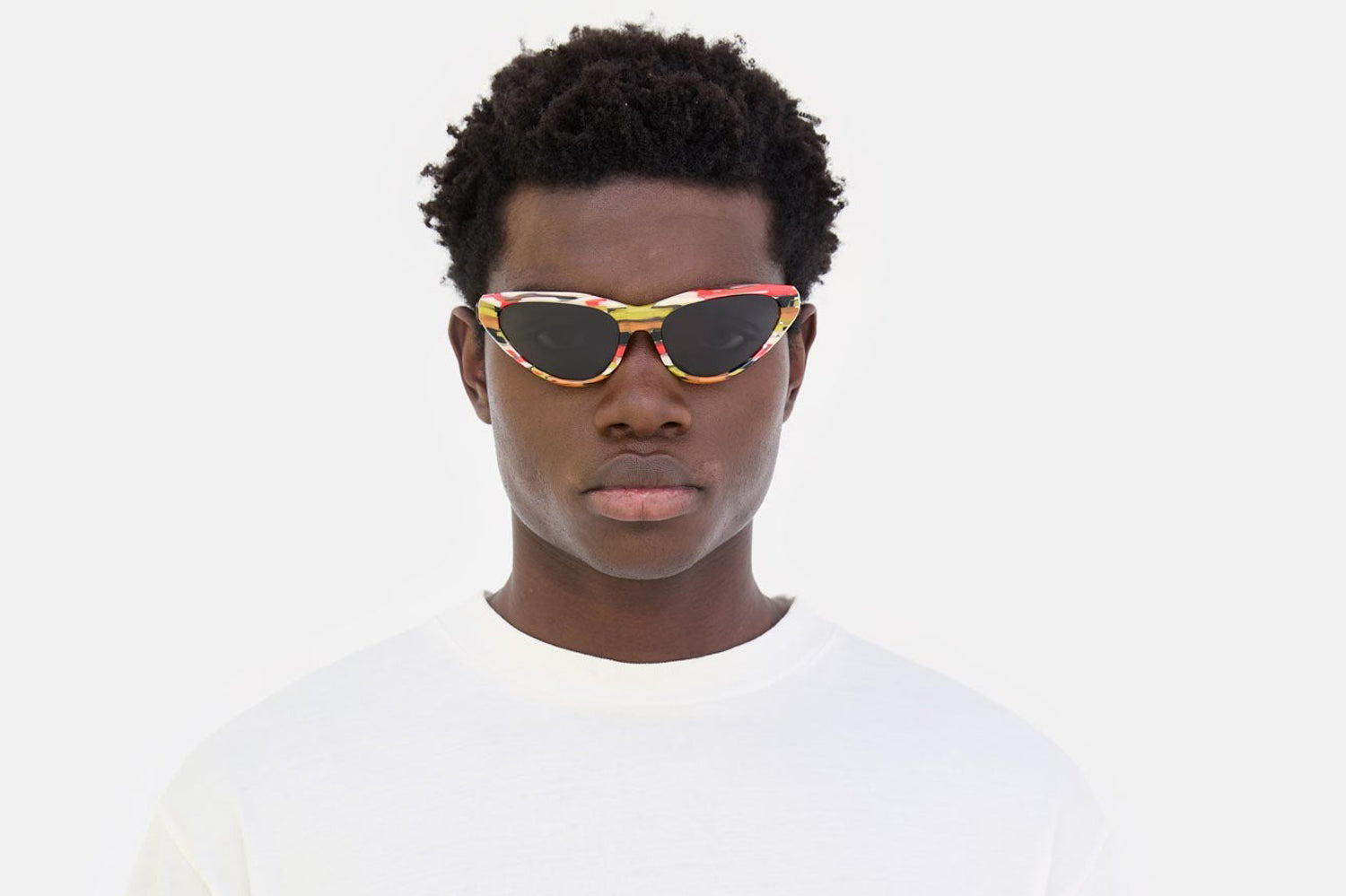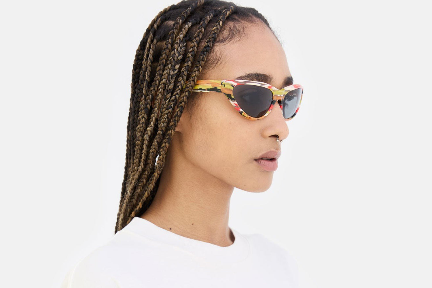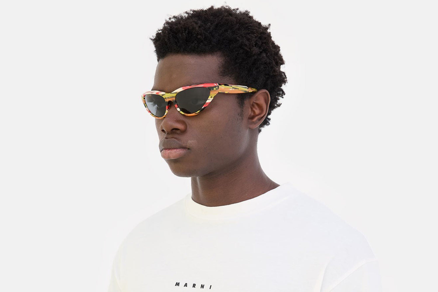 Designed exclusively for Marni, Mavericks reinterprets 1990s aesthetics with a fresh, forward-looking approach to style. A low-riding, horizontal frame, Mavericks features curved acetate construction for a wrap-around design. Carved rims elevate the model’s high-tech aesthetics, for an authentic futuristic piece of eyewear. Includes Marni box, case, and a cleaning cloth.