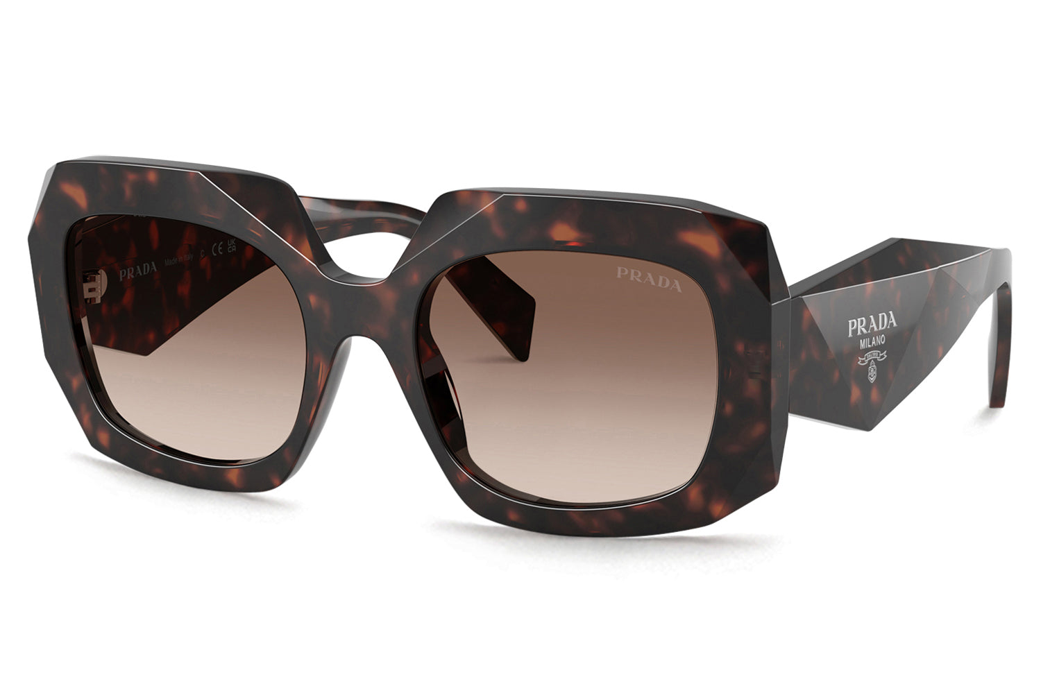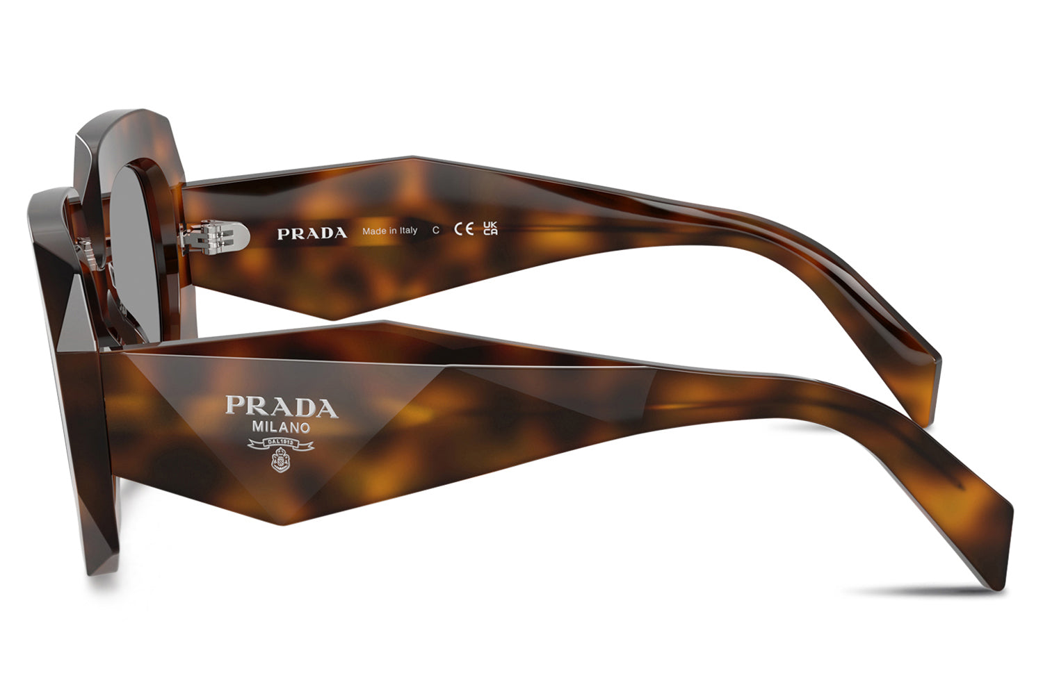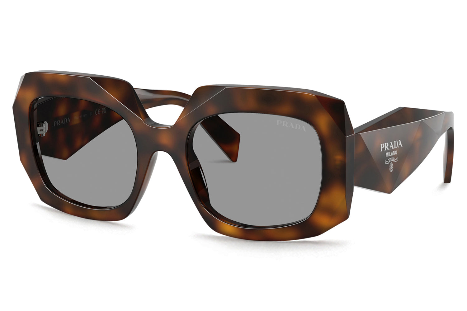 The Prada - PR B23S delivers a bold catwalk statement in a square silhouette with a distinctive narrow frame and high bridge fit. Born from Prada’s iconic runway heritage, this statement-making design is defined by sharp triangular facets across the acetate front and multifaceted temples sculpted with a striking triangular section. Premium acetate construction ensures structure, durability, and a strong visual impact. Finished with an under-varnished Prada Handbag logo, these designer sunglasses blend high-fashion edge with refined sophistication, perfect for trend-forward wearers with higher nose bridges seeking standout Prada style and unmistakable runway presence. Comes complete with a Prada box, protective case, cleaning cloth, and a 1-year manufacturer’s warranty.