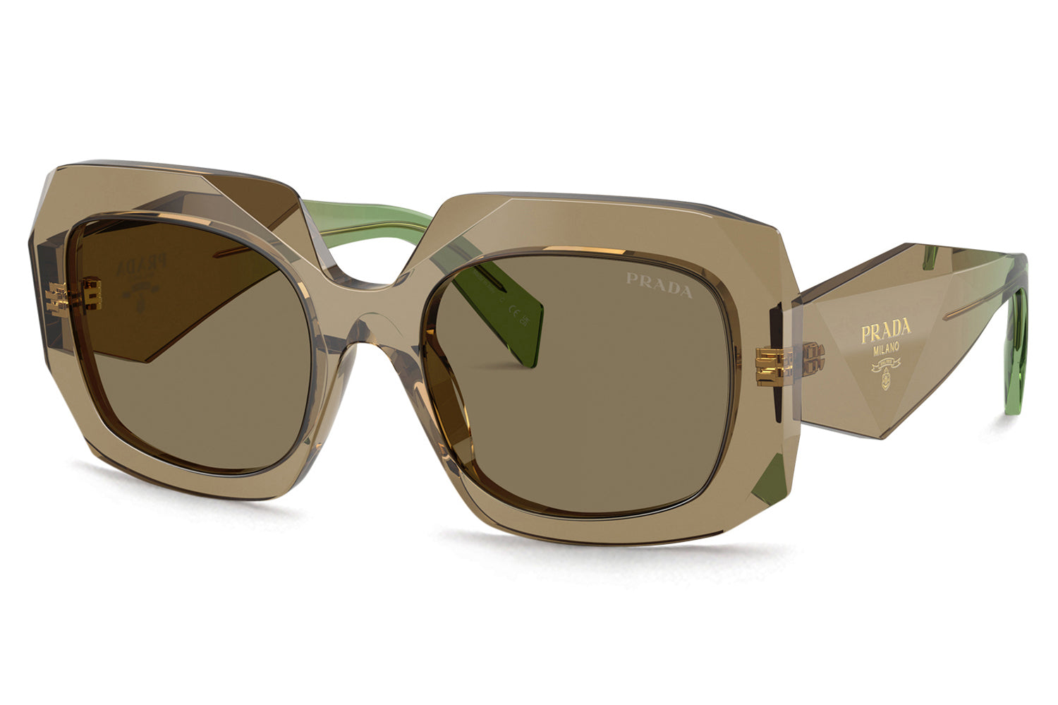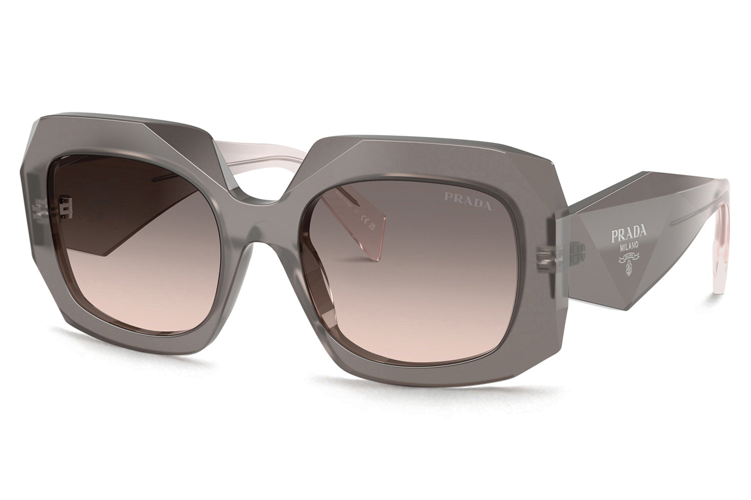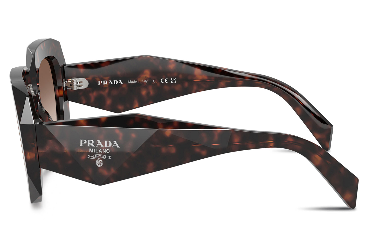 The Prada - PR B23S delivers a bold catwalk statement in a square silhouette with a distinctive narrow frame and high bridge fit. Born from Prada’s iconic runway heritage, this statement-making design is defined by sharp triangular facets across the acetate front and multifaceted temples sculpted with a striking triangular section. Premium acetate construction ensures structure, durability, and a strong visual impact. Finished with an under-varnished Prada Handbag logo, these designer sunglasses blend high-fashion edge with refined sophistication, perfect for trend-forward wearers with higher nose bridges seeking standout Prada style and unmistakable runway presence. Comes complete with a Prada box, protective case, cleaning cloth, and a 1-year manufacturer’s warranty.