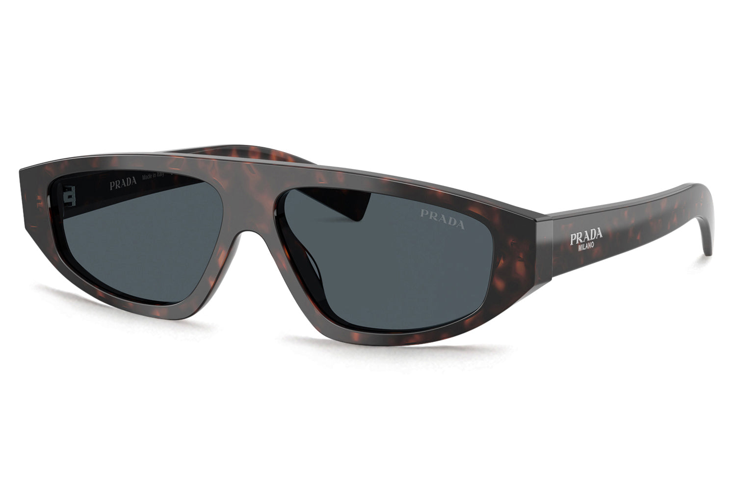 The Prada - PR C02S is a modern minimalism meets unmistakable Prada identity in these refined pillow-shaped sunglasses. Crafted from smooth acetate, the softly curved front is balanced by clean, linear temples finished with a hot-stamped Prada Milano logo, an elegant nod to the brand’s storied heritage. The streamlined construction delivers a contemporary yet timeless silhouette that’s easy to wear every day. Offered in a wide spectrum of options, from classic acetate tones to transparent frames paired with vibrant mirrored violet lenses, this design is ideal for style-conscious wearers seeking understated luxury with distinctive character. Comes complete with a Prada box, protective case, cleaning cloth, and a 1-year manufacturer’s warranty.