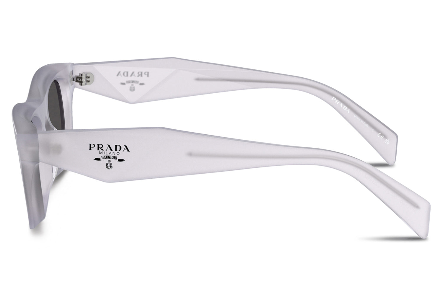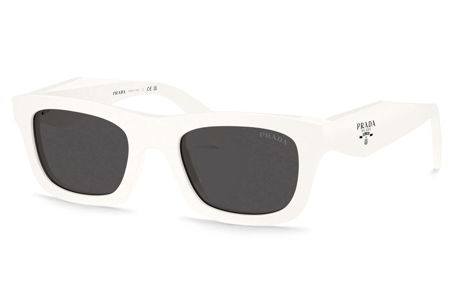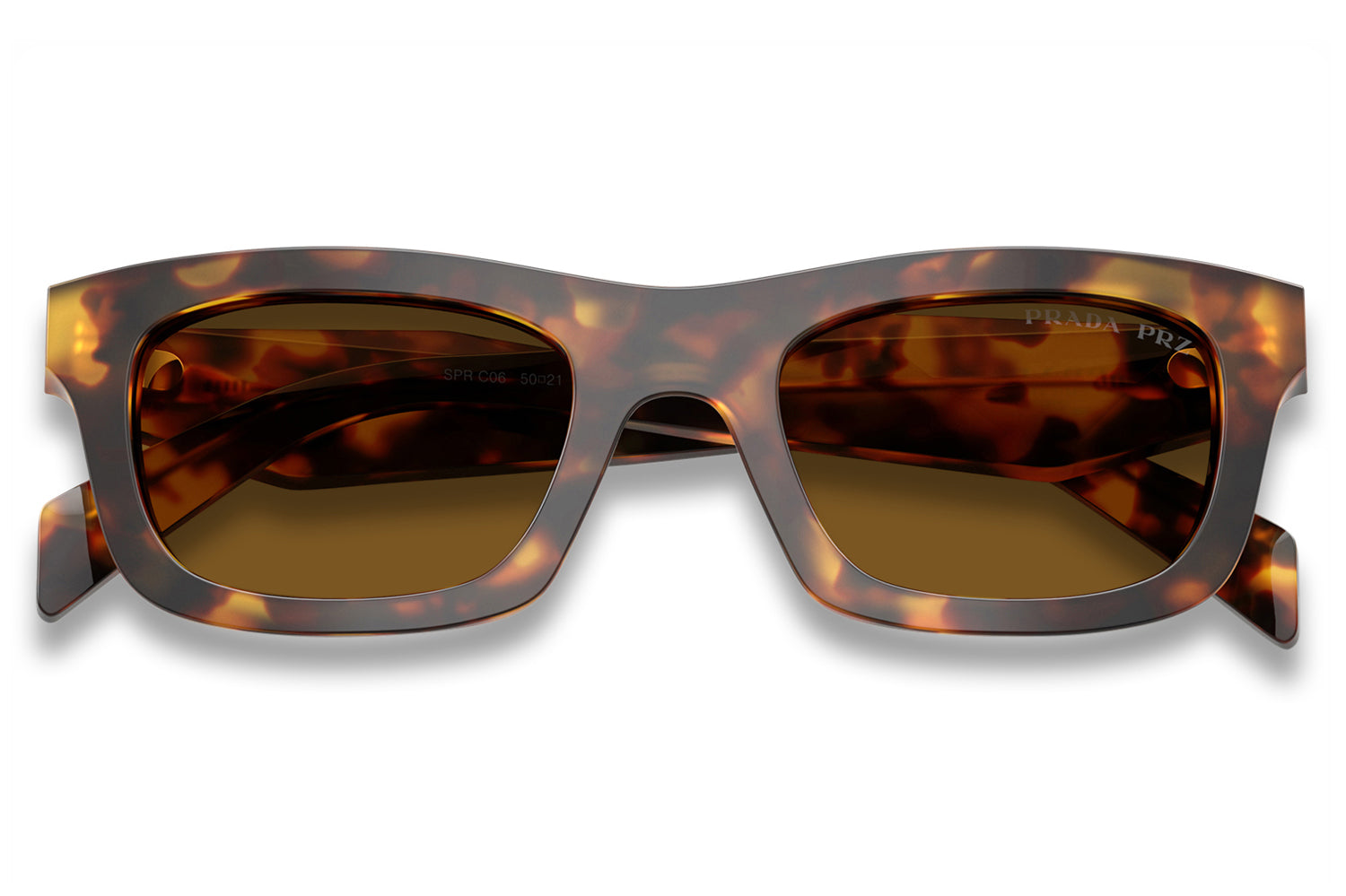 The Prada - PR C06S sunglasses are in a clean, refined rectangular silhouette with a modern, structured profile. Born from Prada’s legacy of sophisticated innovation, the design features a new temple construction with faceted inner surfaces and a flat outer exterior, creating a subtle contrast that enhances the frame’s architectural appeal. Crafted from premium acetate, the smooth outer temples are accented with a laser-etched, enamel-filled Prada logo for a signature finish. Available in classic gray and brown lenses, including a polarized brown option paired with honey tortoise. These designer sunglasses blend timeless elegance with contemporary detailing and superior comfort. Perfect for style-conscious individuals seeking a polished, everyday luxury look with standout craftsmanship. Comes complete with a Prada box, protective case, cleaning cloth, and a 1-year manufacturer’s warranty.