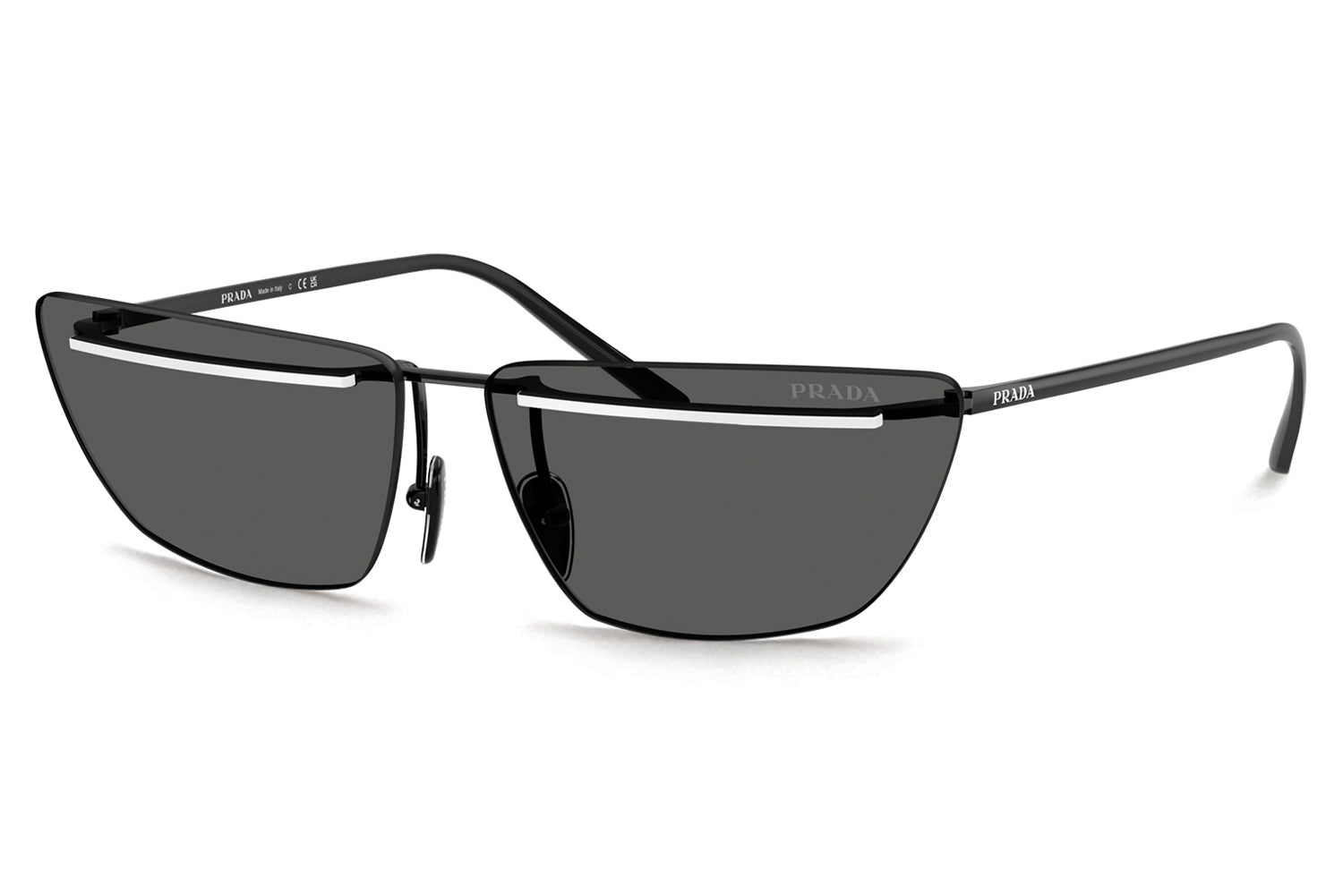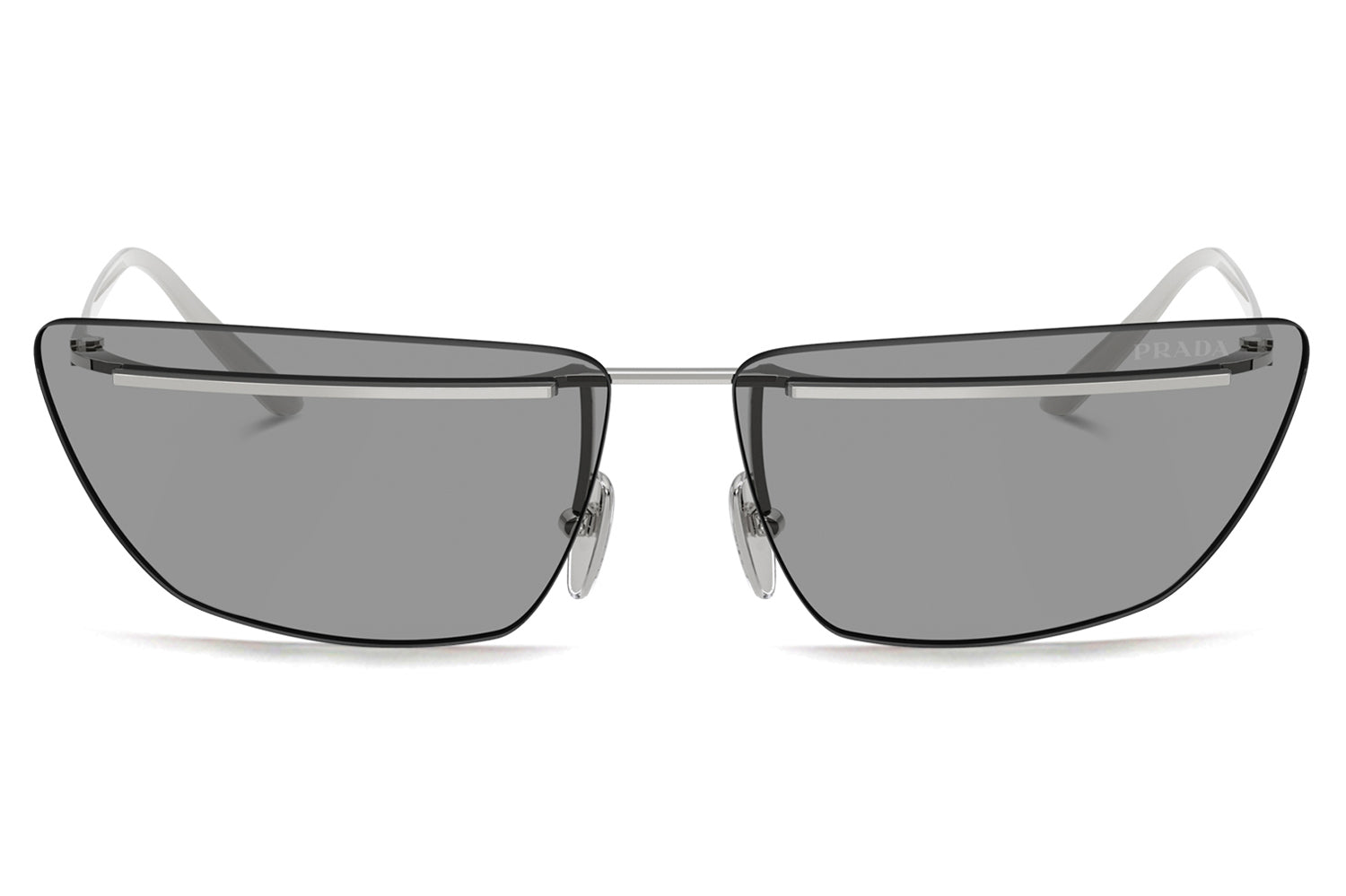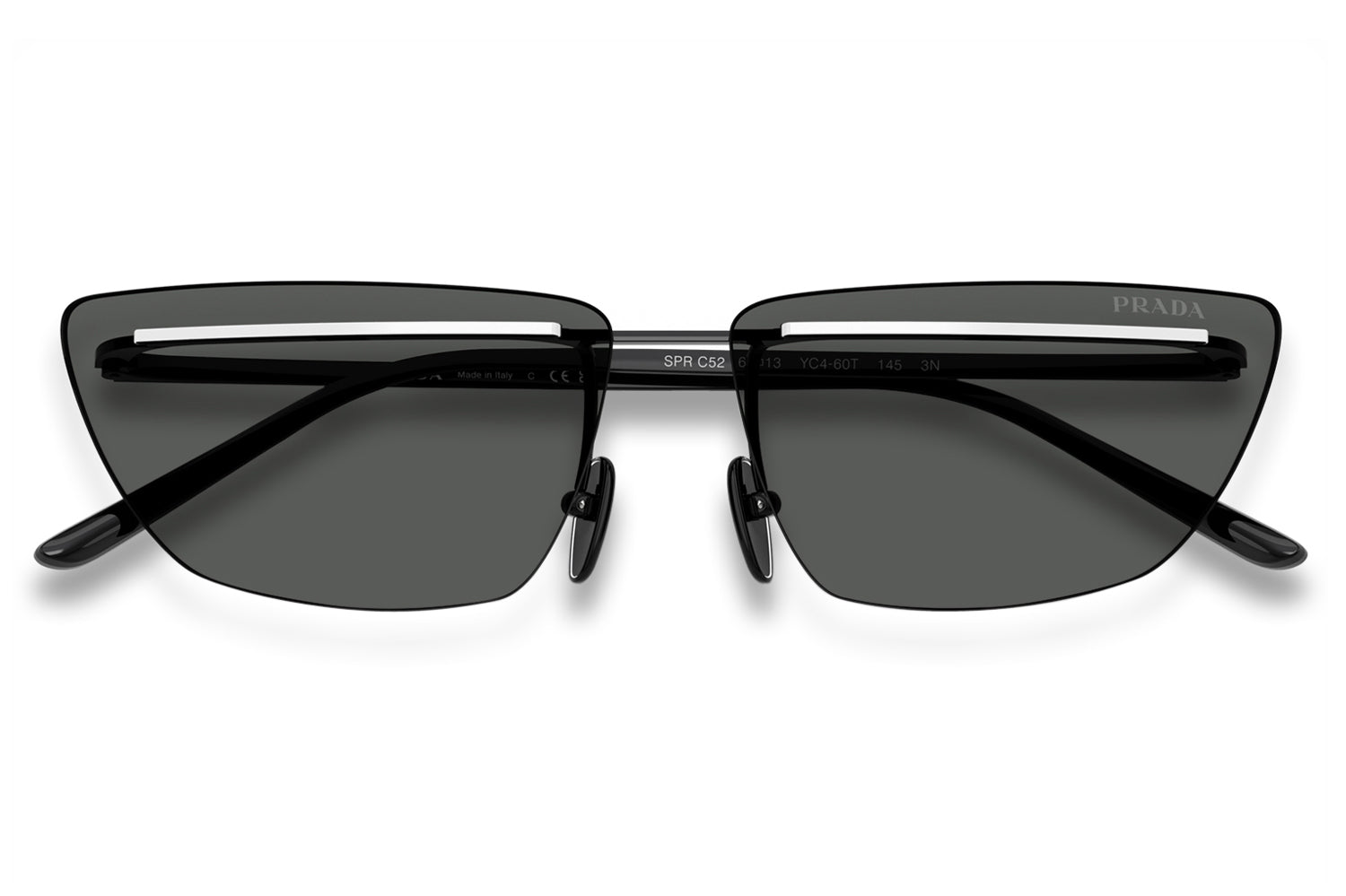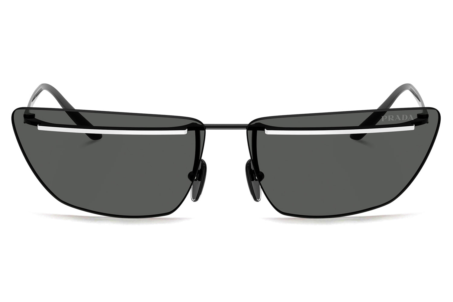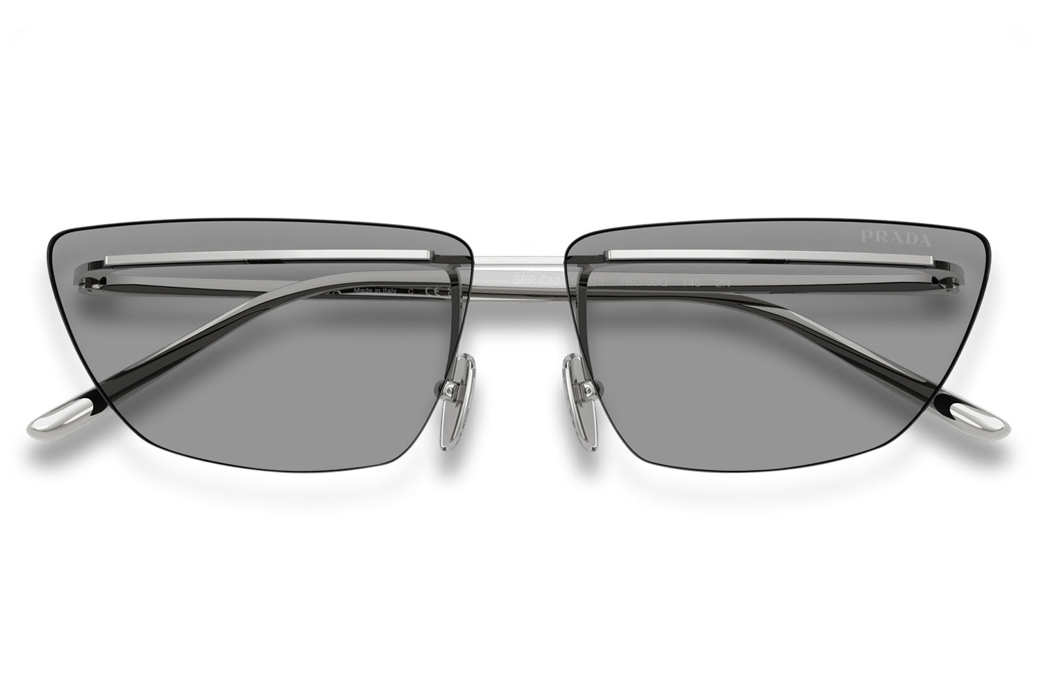 The Prada - PR C52S sunglasses make a bold statement with a futuristic, runway-inspired design first seen on the Spring/Summer 2025 men’s show. Defined by rimless lenses, a sleek, straight metal bar weaves seamlessly through the lenses and connects to refined temples and nose pads for a striking architectural effect. Crafted from lightweight metal, the frame delivers modern comfort with cutting-edge appeal. Available in silver, gold, pale gold, and a distinctive two-tone black-and-white front. These designer sunglasses blend avant-garde innovation with refined craftsmanship and lightweight wearability. Perfect for fashion-forward individuals seeking a daring, modern look with unmistakable Prada attitude. Comes complete with a Prada box, protective case, cleaning cloth, and a 1-year manufacturer’s warranty.