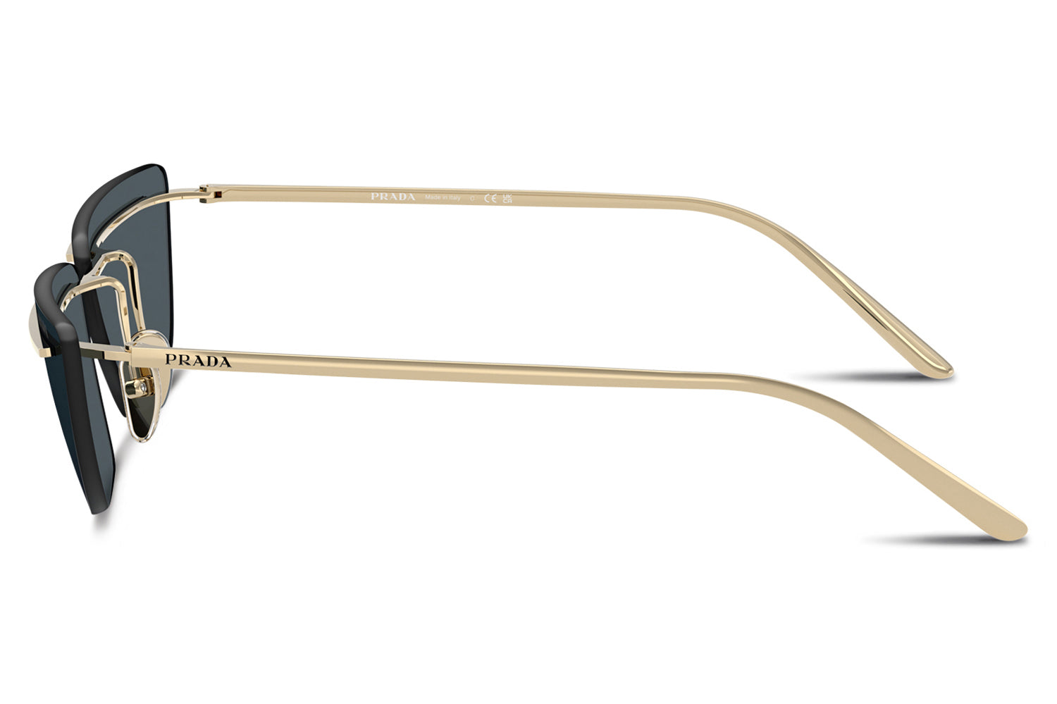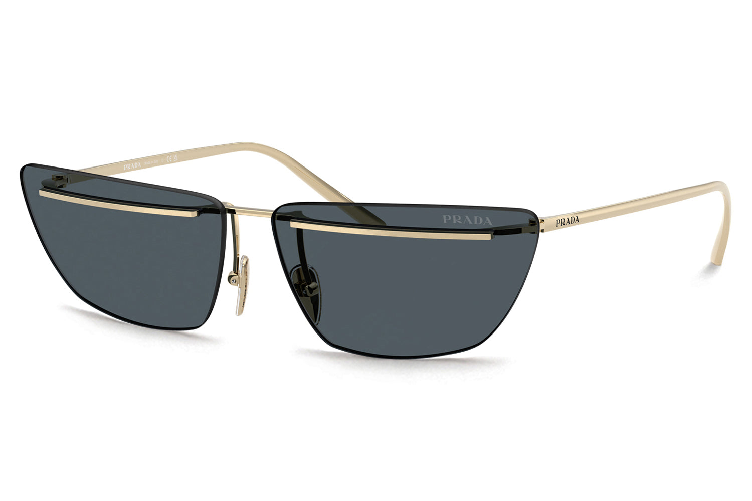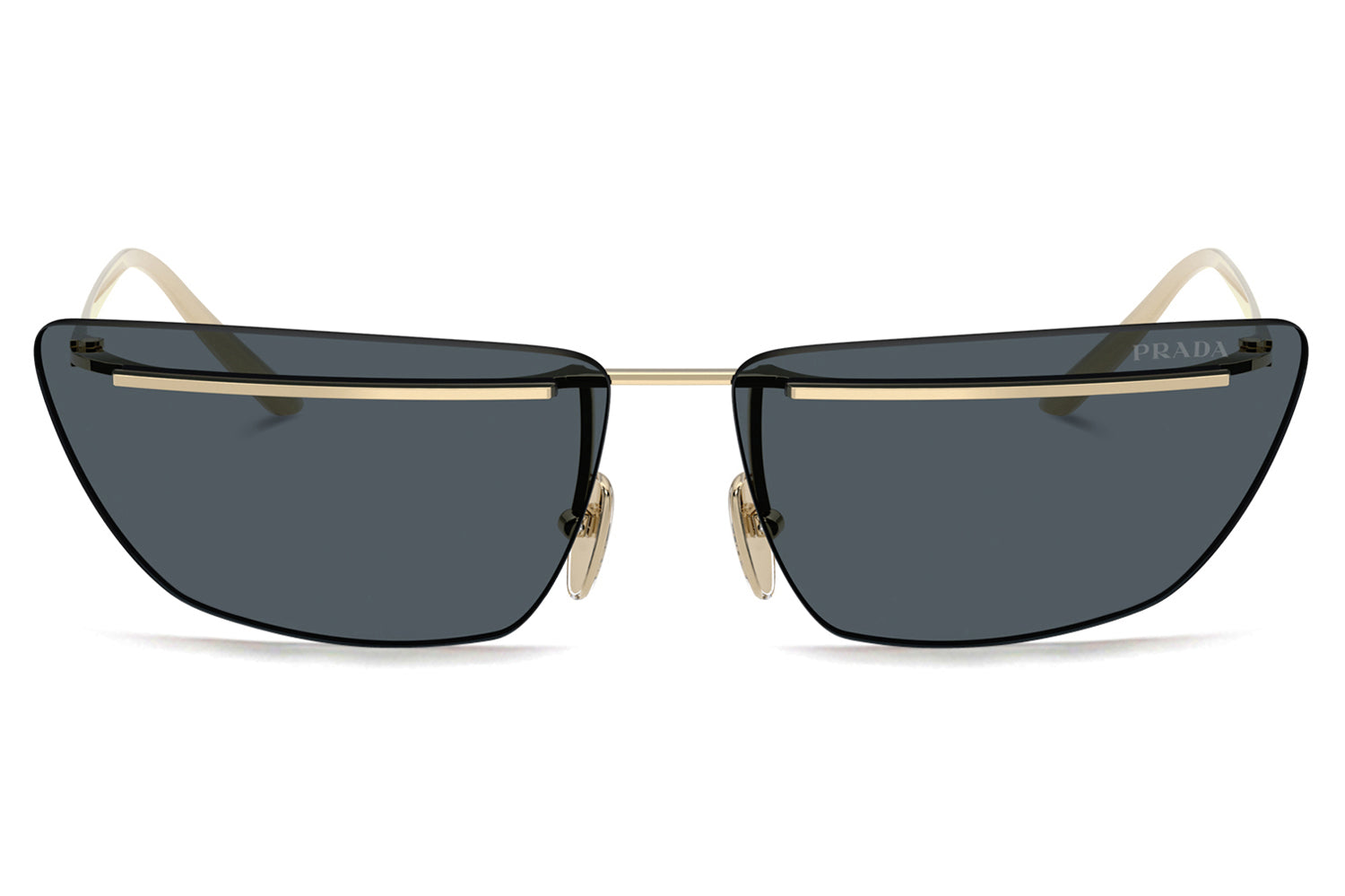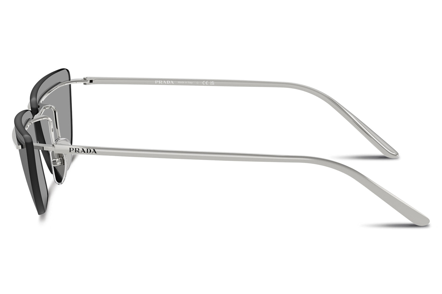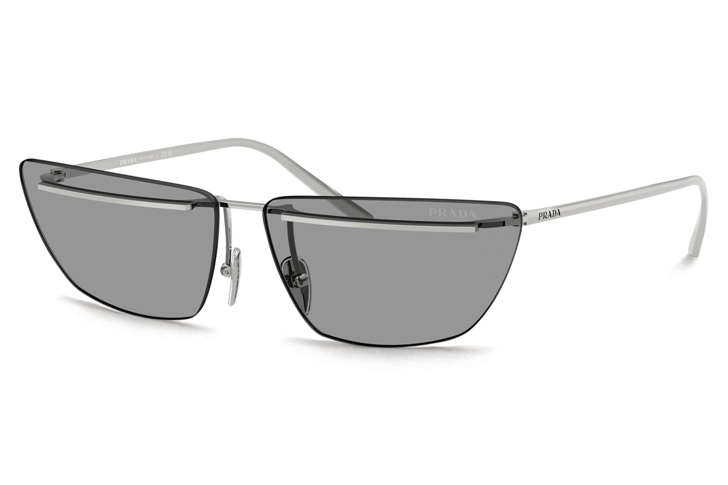 The Prada - PR C52S sunglasses make a bold statement with a futuristic, runway-inspired design first seen on the Spring/Summer 2025 men’s show. Defined by rimless lenses, a sleek, straight metal bar weaves seamlessly through the lenses and connects to refined temples and nose pads for a striking architectural effect. Crafted from lightweight metal, the frame delivers modern comfort with cutting-edge appeal. Available in silver, gold, pale gold, and a distinctive two-tone black-and-white front. These designer sunglasses blend avant-garde innovation with refined craftsmanship and lightweight wearability. Perfect for fashion-forward individuals seeking a daring, modern look with unmistakable Prada attitude. Comes complete with a Prada box, protective case, cleaning cloth, and a 1-year manufacturer’s warranty.
