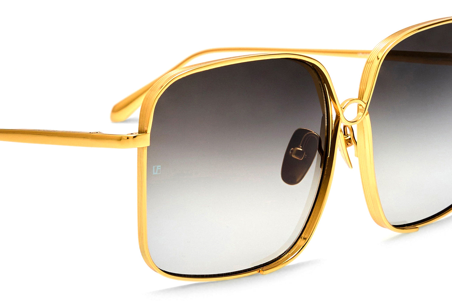 The Linda Farrow // Genevieve is a bold square oversized design, meticulously crafted from 22k gold-plated pure Japanese titanium. Featuring gradient lenses that provide full UV protection, the Genevieve balances striking style with everyday functionality. Sculpted adjustable nose pads and a lightweight construction ensure lasting comfort, while the frame embodies the modern glamour and refined craftsmanship synonymous with Linda Farrow. Includes Linda Farrow box, case, cleaning cloth, and 1-year manufacturer warranty.