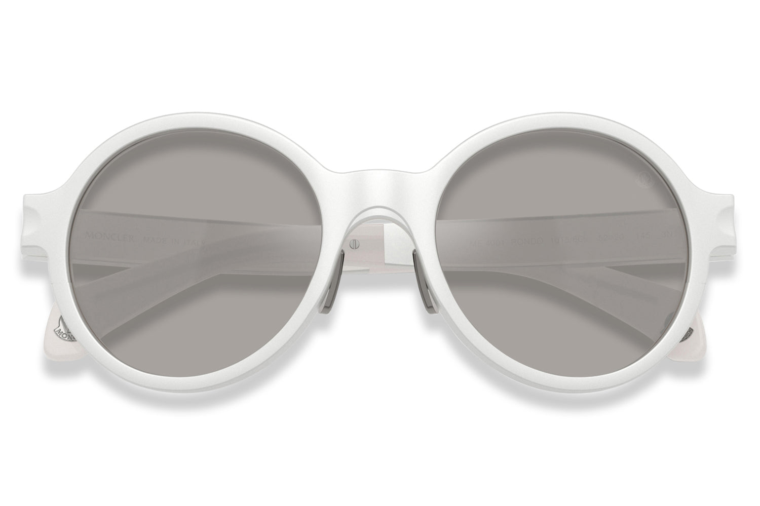 Echoing the spirit of the mountains, the Moncler Lunettes - Rondo sunglasses' rounded shape is inspired by alpine gear. The eyewear features a light aluminum frame with ergonomic acetate tips, ensuring a comfortable fit. Featuring a monochrome color palette in silver, the shades are completed by bold mirrored lenses. The style can be adapted for prescription lenses. Handmade in Italy. Includes Moncler pouch, cleaning cloth and 1-year manufacturer warranty.