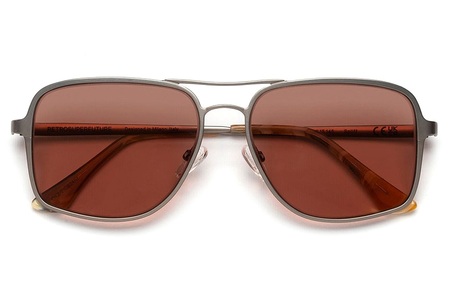 The Retro Super Future // Spliff features a sculpted high-grade metal frame milled from compressed multi-sheet construction, fitted with base 2 mineral tempered glass lenses for sharp clarity and durability. Designed with adjustable acetate temple tips and nose pads for a tailored fit. Premium eyewear, thoughtfully designed in Milano, Italy. Includes RSF box, case, and cleaning cloth.