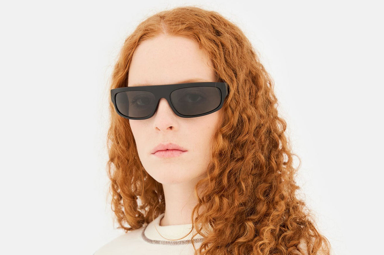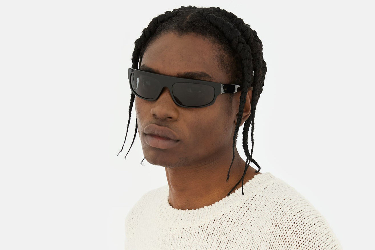 The Retro Super Future // Zam sunglasses are crafted from custom-made high-grade Italian acetate and feature a bold wraparound design that blends sport and streetwear aesthetics. Fitted with premium Carl Zeiss base 8 lenses, these handmade Italian frames offer superior optical clarity and a sleek, sculpted fit. Retro Super Future, founded in Italy, is celebrated for its innovative silhouettes and collaborations with leading artists and designers. Includes RSF box, case, and cleaning cloth.