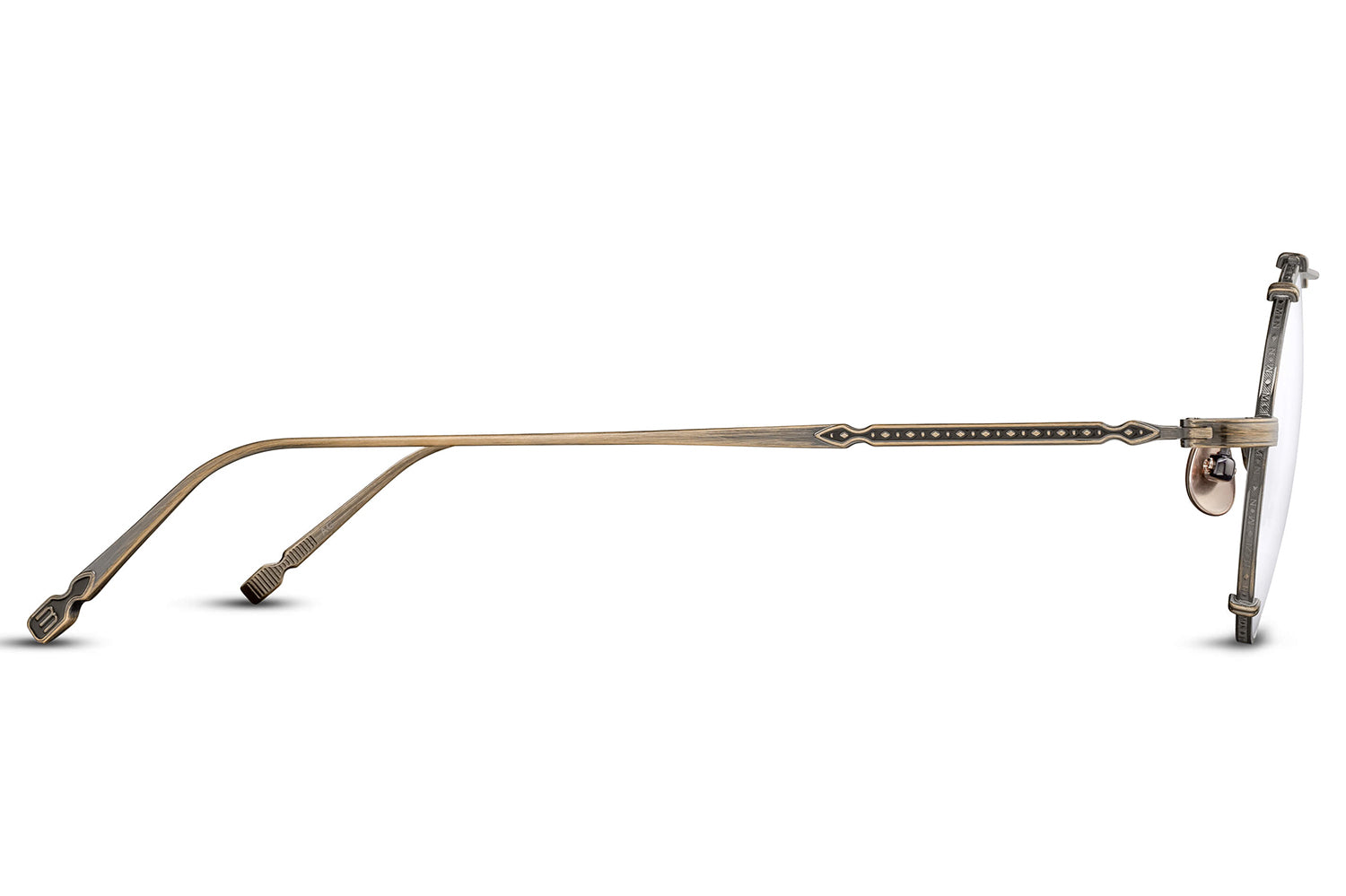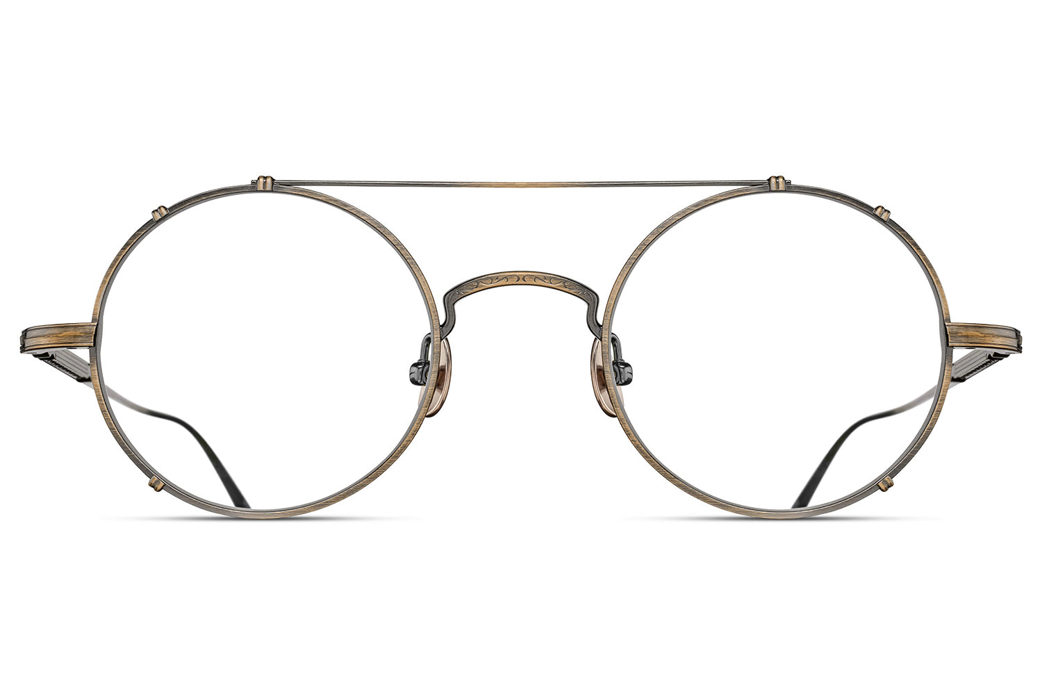The Matsuda Eyewear // M3143 combines a classic shape with a contemporary aesthetic. Crafted entirely of titanium, it features subtle details on the rim paired with a top bar and hand-lacquered gothic inspired temples. Handmade in Japan. Includes Matsuda box, case, and cleaning cloth.