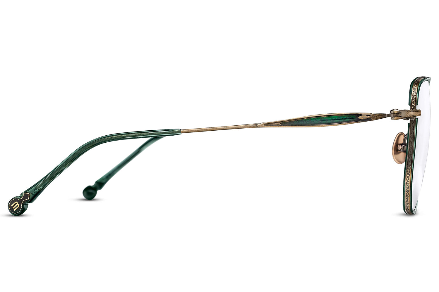 The Matsuda Eyewear // M3158 presents an oversized soft square silhouette, crafted from a blend of titanium and premium metal alloy. The sleek temples are adorned with intricate “stained glass” lacquering and finished with precious metal plating, showcasing Matsuda’s dedication to artisanal craftsmanship. Handmade in Japan, the M3158 combines bold proportions with refined detail for a statement of modern elegance. Includes Matsuda box, case, and cleaning cloth.