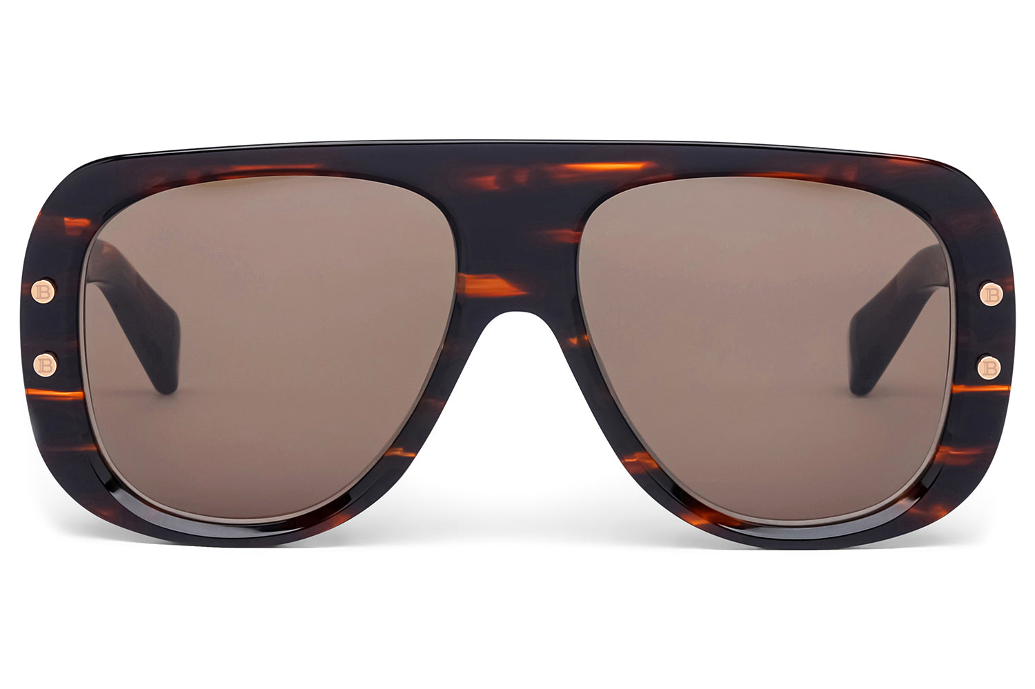 The Balmain – Pulse is a rebellious symphony of heritage and audacity. This season’s hero frame builds on Balmain Eyewear’s legacy of bold acetate silhouettes, reimagined through an in-trend oversized aviator that dominates with architectural precision. Its shielding, exaggerated proportions exude VIP allure, while the empowering silhouette channels the electrifying pulse of a backstage crescendo, each curve resonating with the House’s timeless bond with the world of music and its love affair with rock ' n ' pop’s greatest icons. The 8mm-thick acetate front connects to the temples through Balmain’s signature floating hinge, featuring a high-precision five-barrel tube system, a striking visual break that masterfully blends daring style with technical innovation. Expert savoir-faire is elevated by unshakable confidence, with iconic round B monogram rivets nodding to the Maison’s legacy of golden metalwork, inspired by military uniforms and the regal grandeur of French courts. Standouts include a version with custom champagne-mirror lenses and a limited-edition crystal-black Havana variation, its rich, spotted marble-effect pattern evoking the wild animal motifs central to the House’s vision of fearless sophistication. Handmade in Japan. Includes Balmain box, hard case, soft case, cleaning cloth, and 1-year manufacturer warranty.